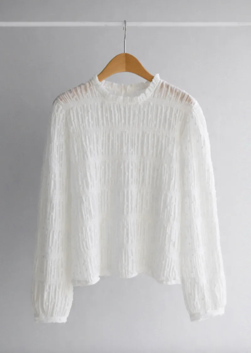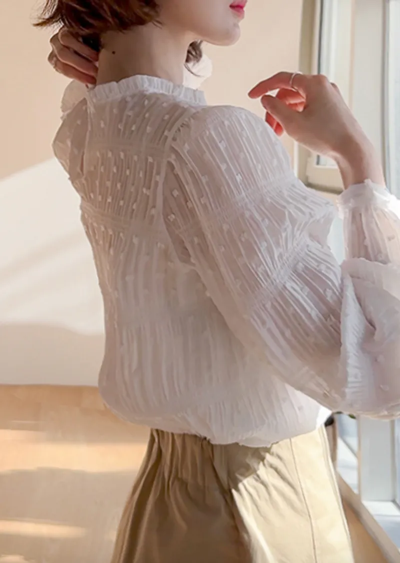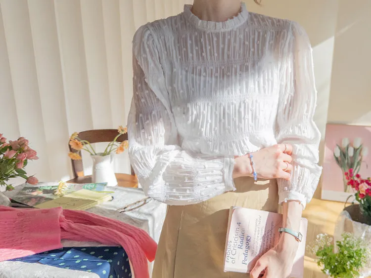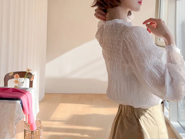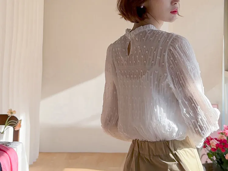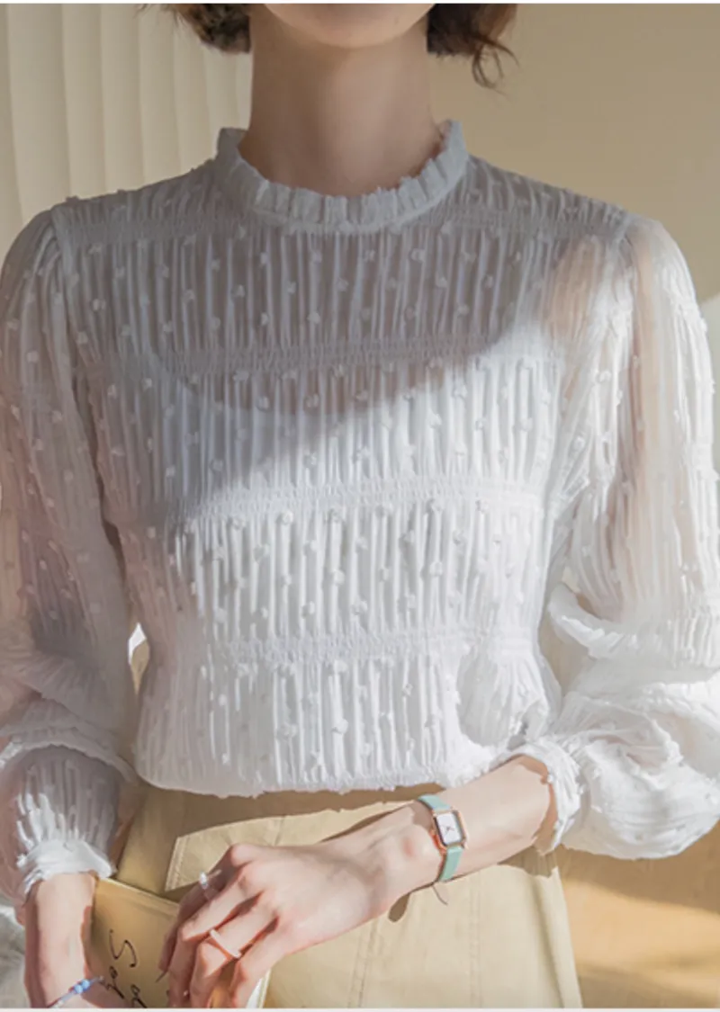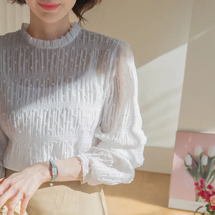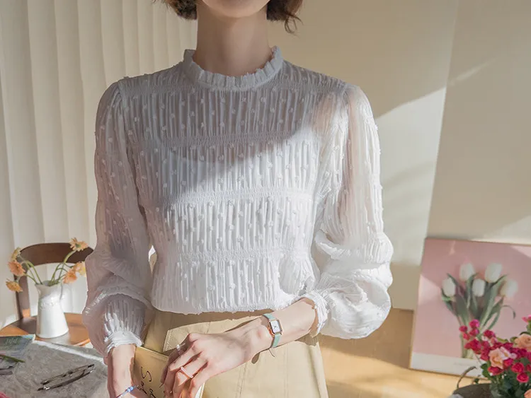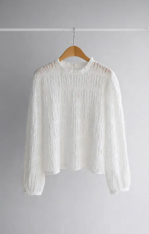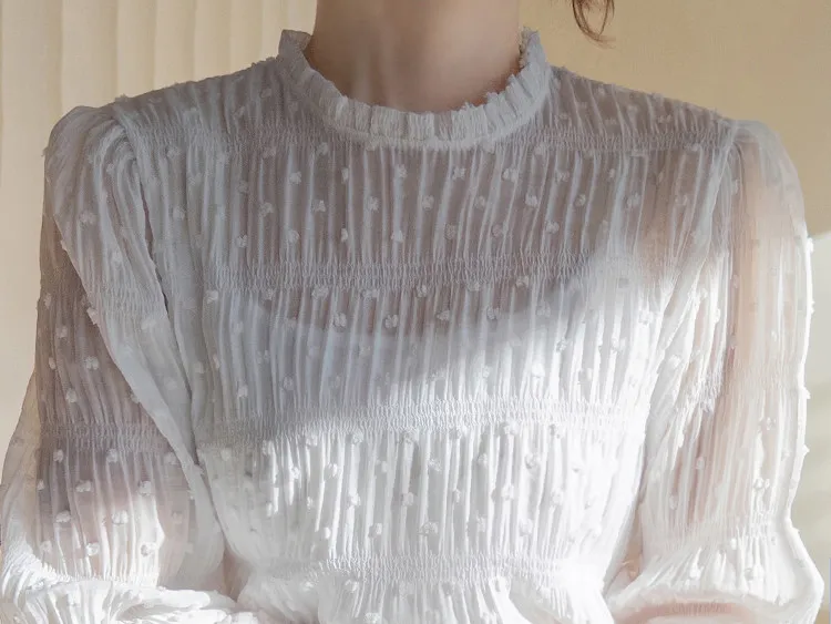 【蓬鬆感十足的雪花上衣♥】【泡泡袖設計很漂亮~】【布料柔軟細膩,看起來很精緻! 】【陽光下更美! 】