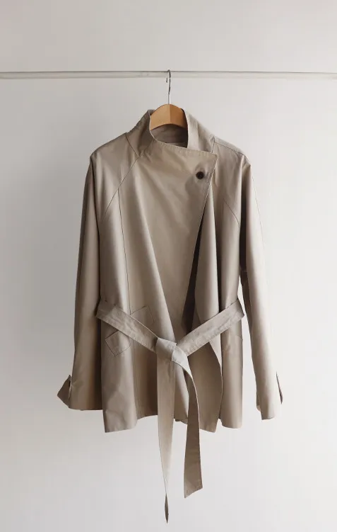 【裹身式風衣】【修身剪裁,附腰綁帶】【版型寬鬆