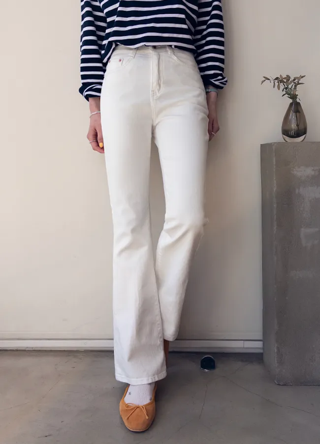 日常穿搭修長線條白色半靴型褲