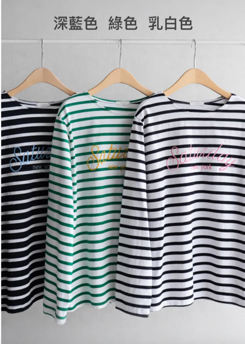 【條紋上衣,帶有醒目字母設計】【簡潔基本款】【舒適圓領設計】【單穿也十分出彩】