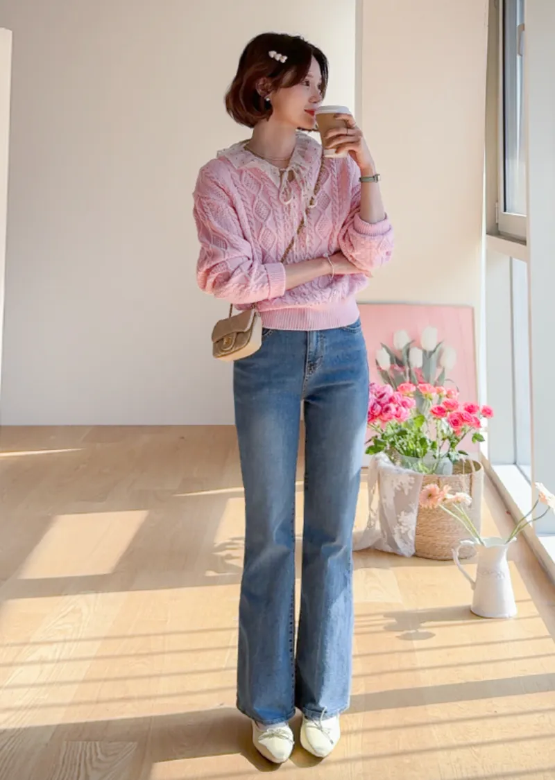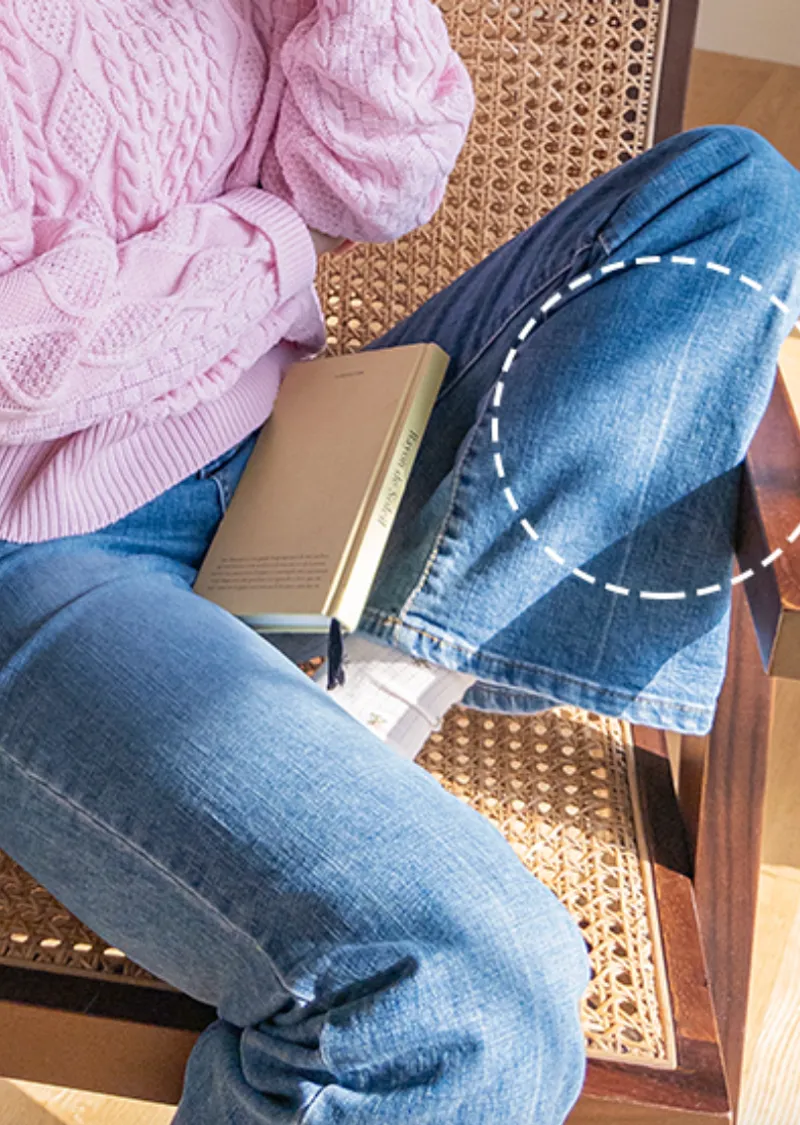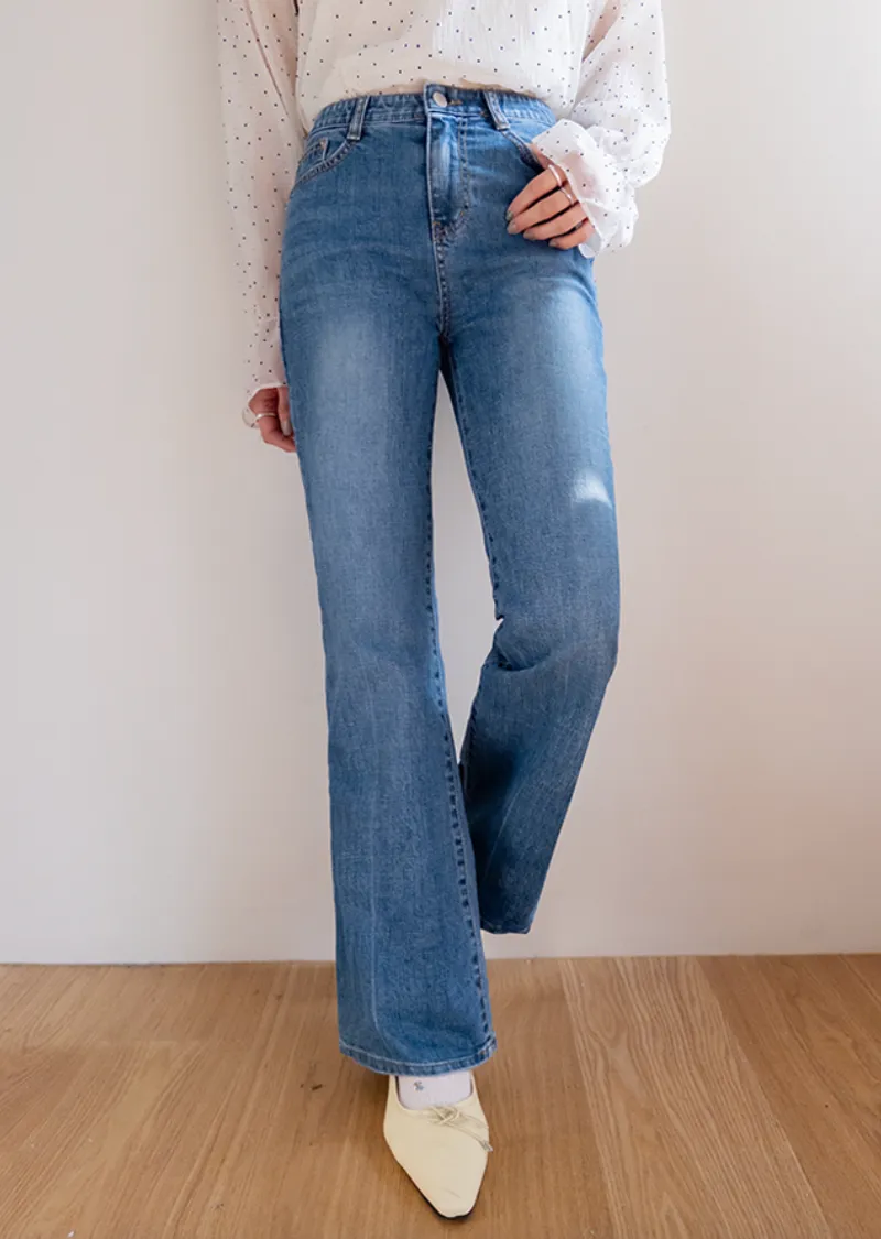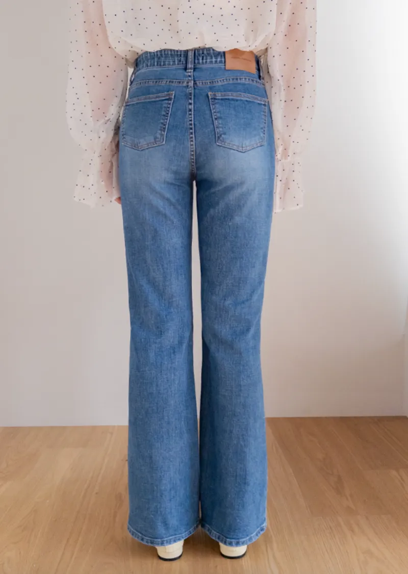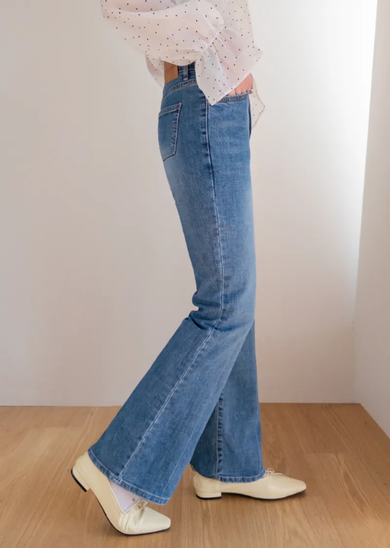【半靴型褲型,拉長腿部線條】【修身大腿剪裁】【略微外擴的版型】【適合日常穿著的牛仔褲】