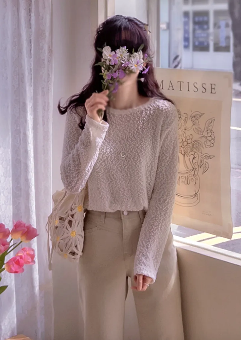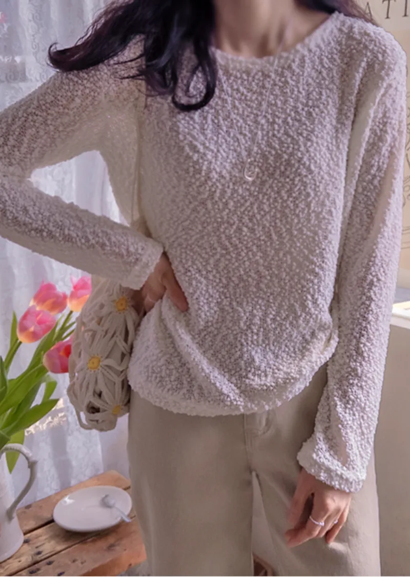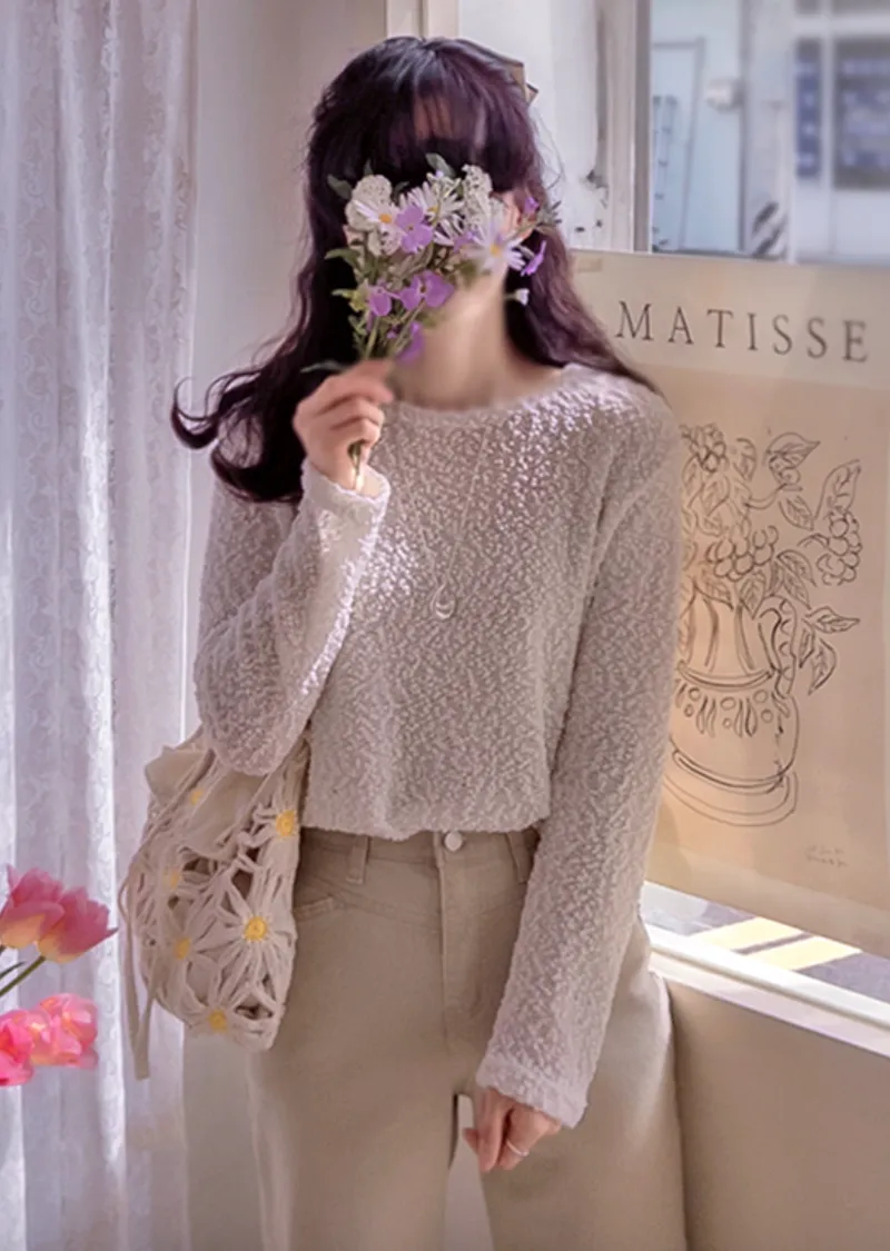 【春季新品】【一款觸感細膩、立體感十足的圈圈絨面料上衣】【柔軟彈力面料,穿著舒適】【簡約獨特設計,適合日常穿著】【推薦作為即將到來的季節裡舒適百搭的單品】