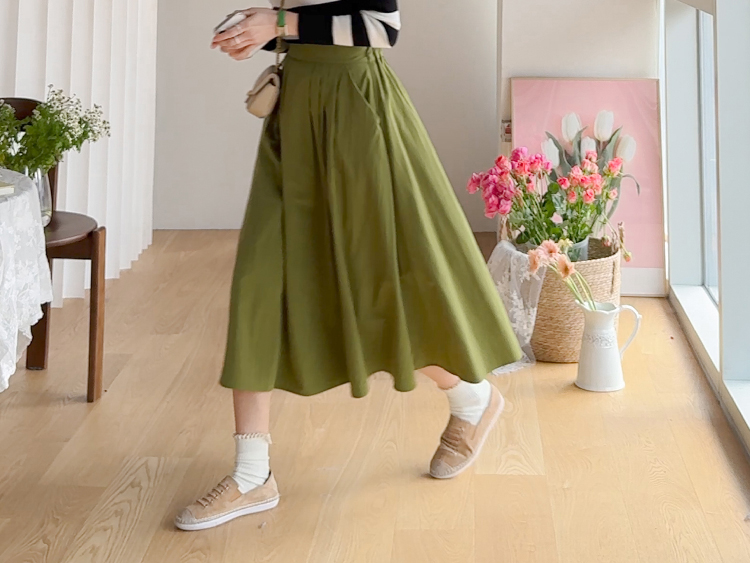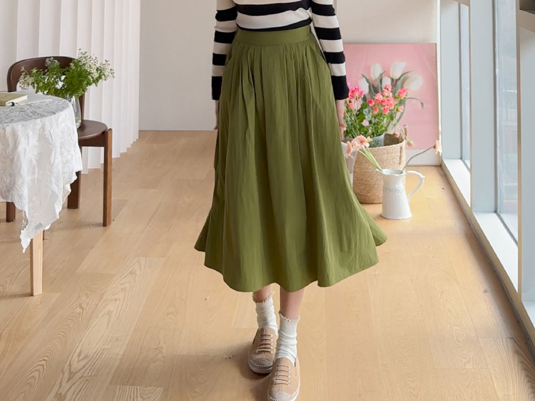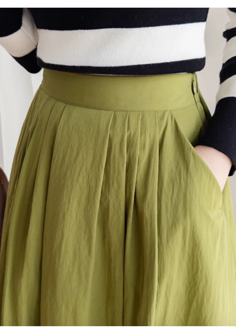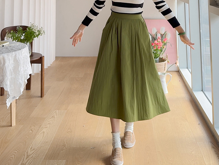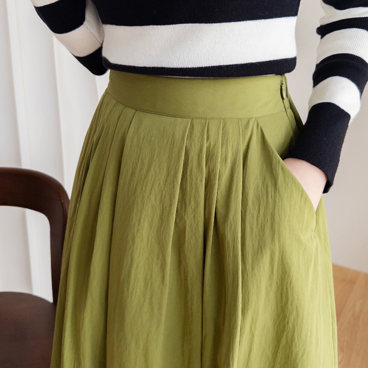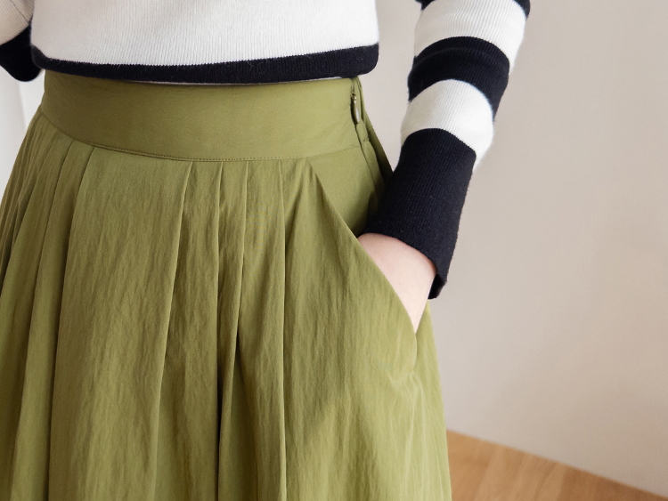 【前摺線設計,打造自然蓬鬆感】【後部束帶設計,穿著舒適】【A字廓形,展現女性柔美幹練】【口袋設計,兼顧實用性】