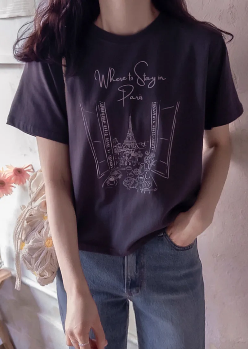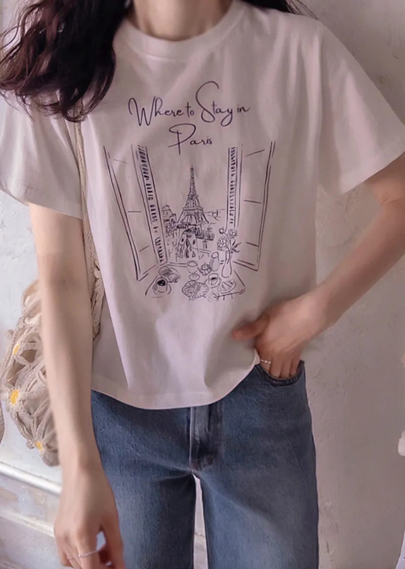 【春季新品】【絲滑柔軟布料】【以艾菲爾鐵塔為主題的上衣】【色彩亮麗,為您的穿搭增添活力】【易於搭配】【推薦這款實用又時尚的T卹,適合整個季節穿著,從春季開始即可穿著】