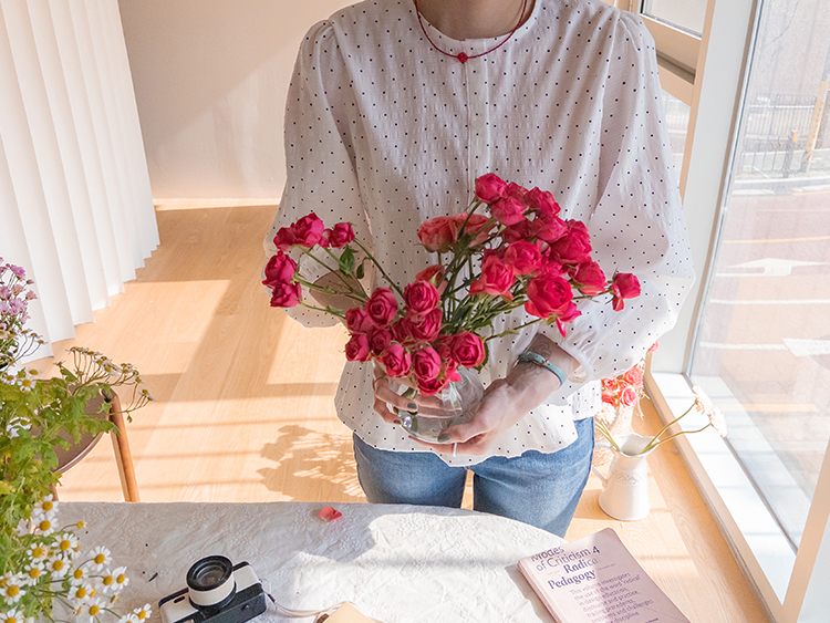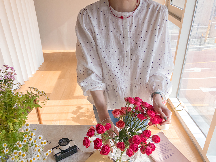 優雅輪廓百搭可疊穿A字版型傘擺下擺圓點點排扣上衣