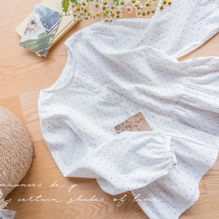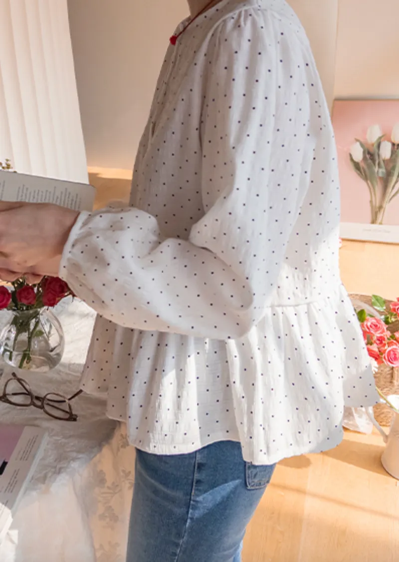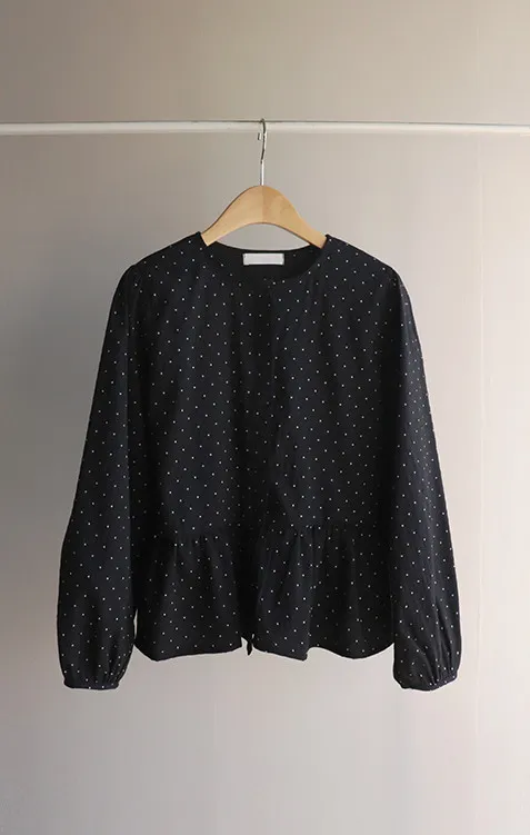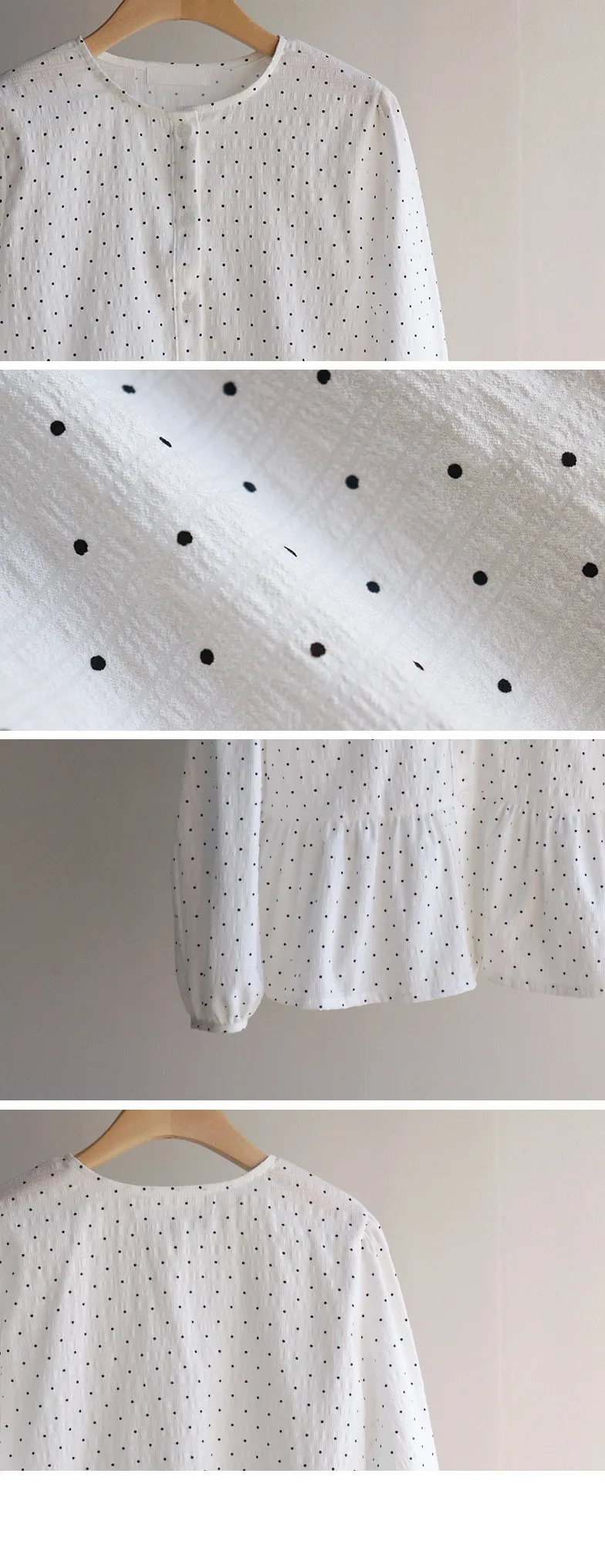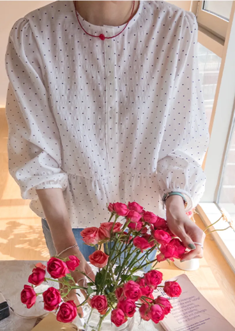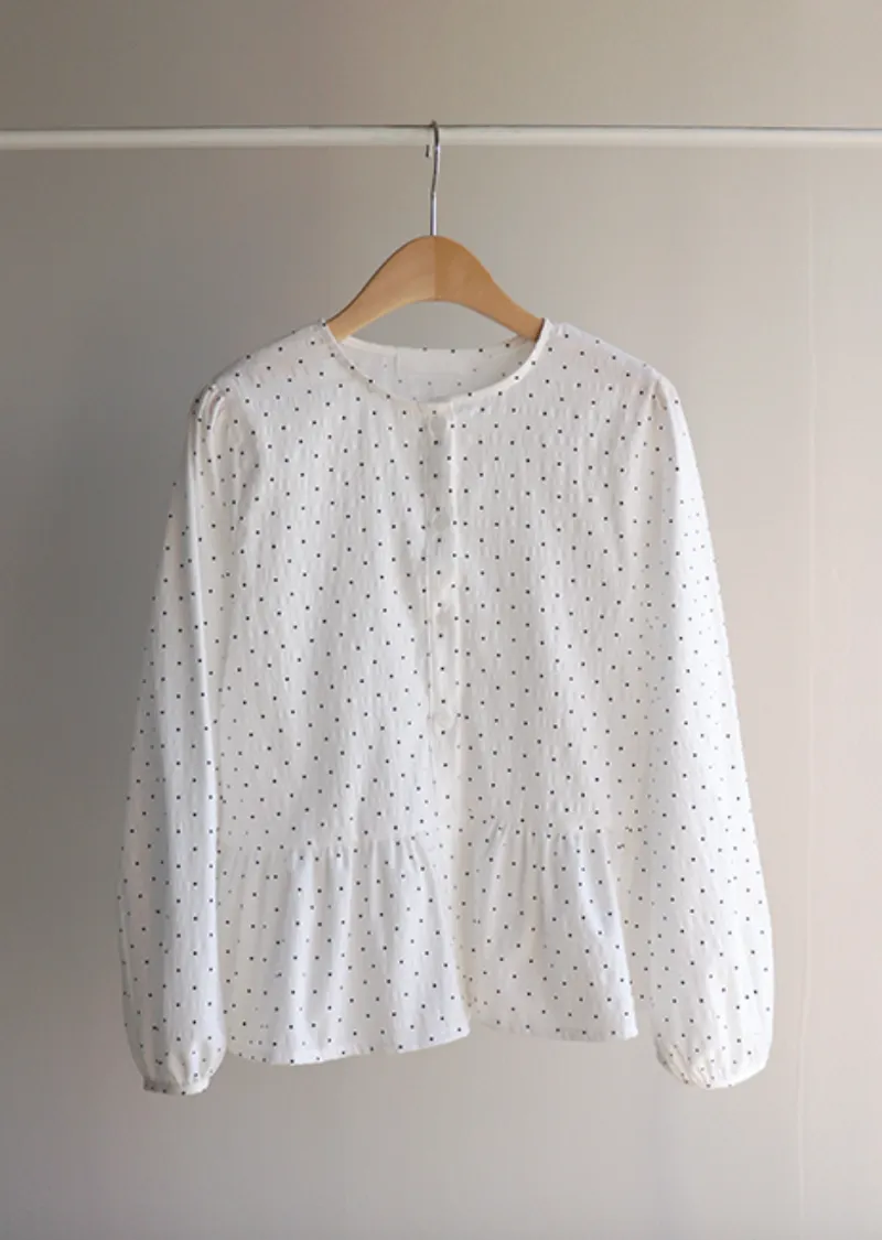 【一款飾有迷人情調圓點點圖案的上衣】【泡泡袖設計,勾勒出優雅的輪廓】【A字版型和傘擺下擺自然修飾身材】【可單穿或疊穿的百搭單品】
