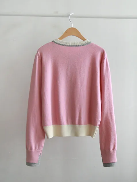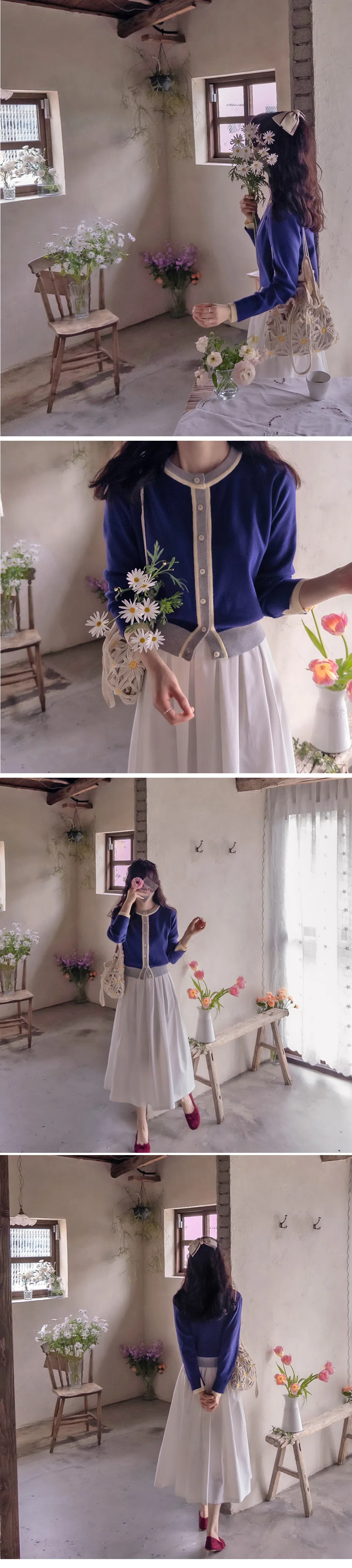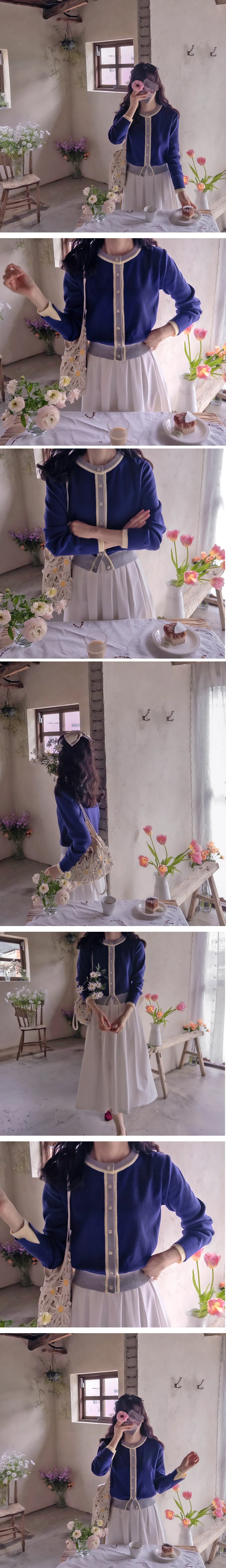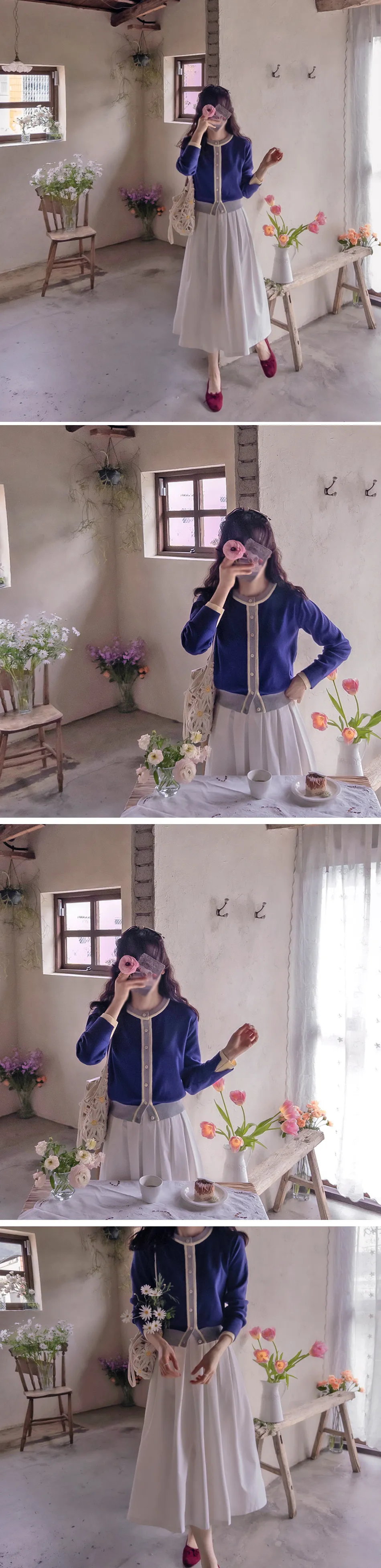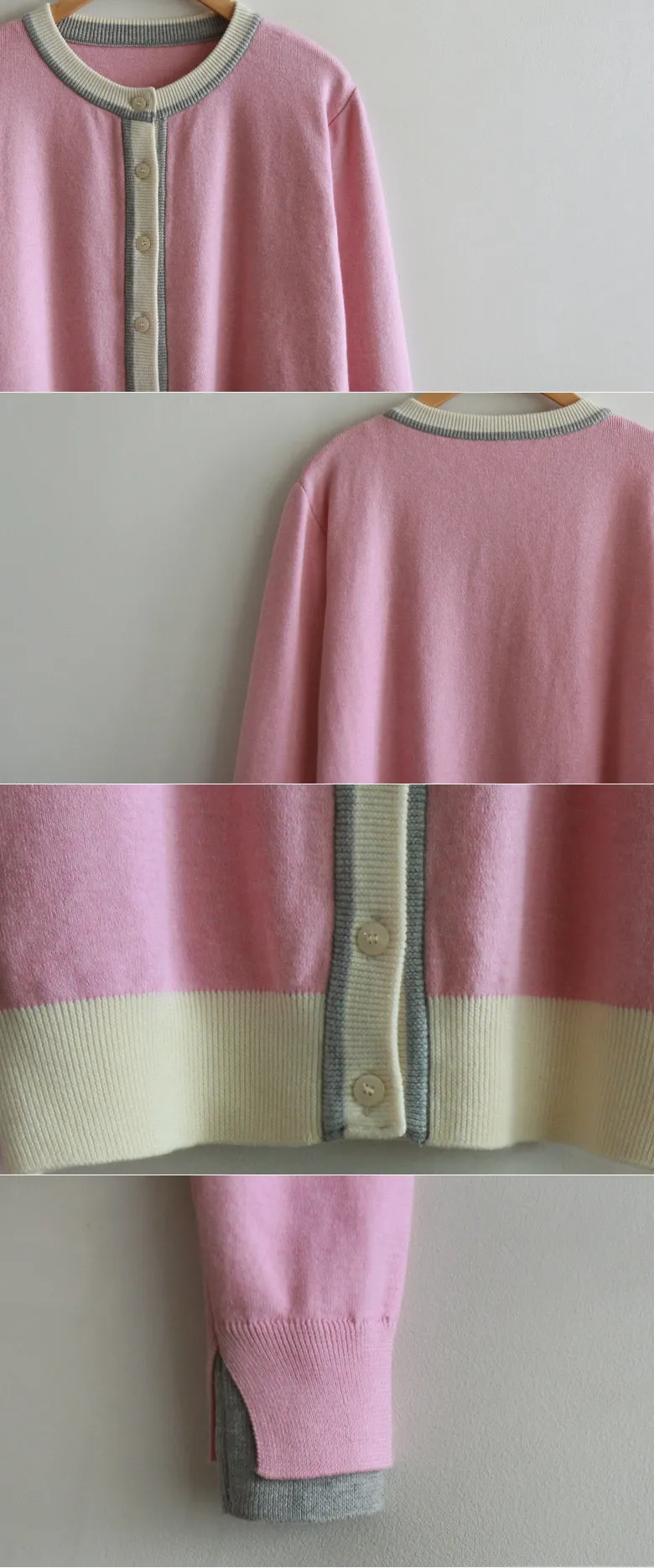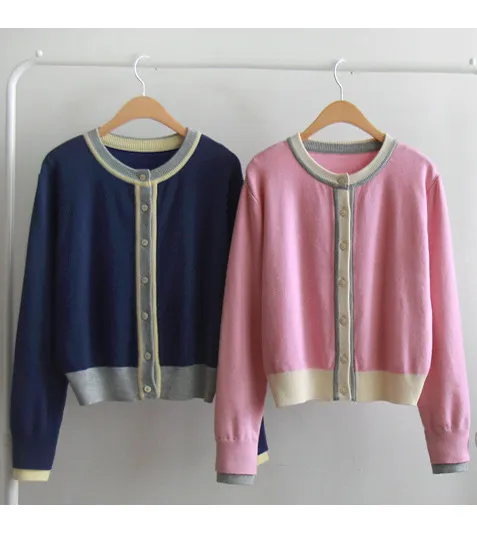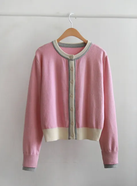 【春季新品】【領口和紐帶處採用配色針織設計】【柔軟舒適的氨綸面料】【明亮精緻的配色方案,非常適合即將到來的季節】【層疊袖子的配色方案也很漂亮】【精緻的春季針織開衫】