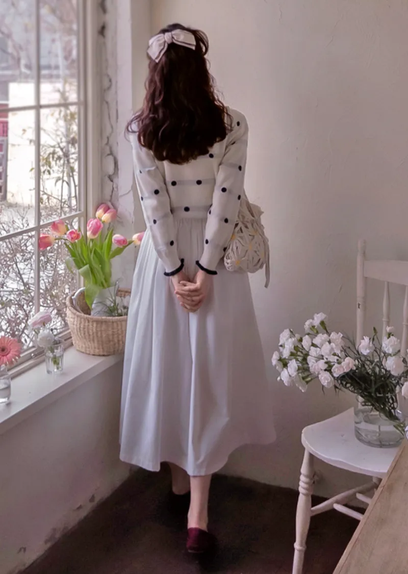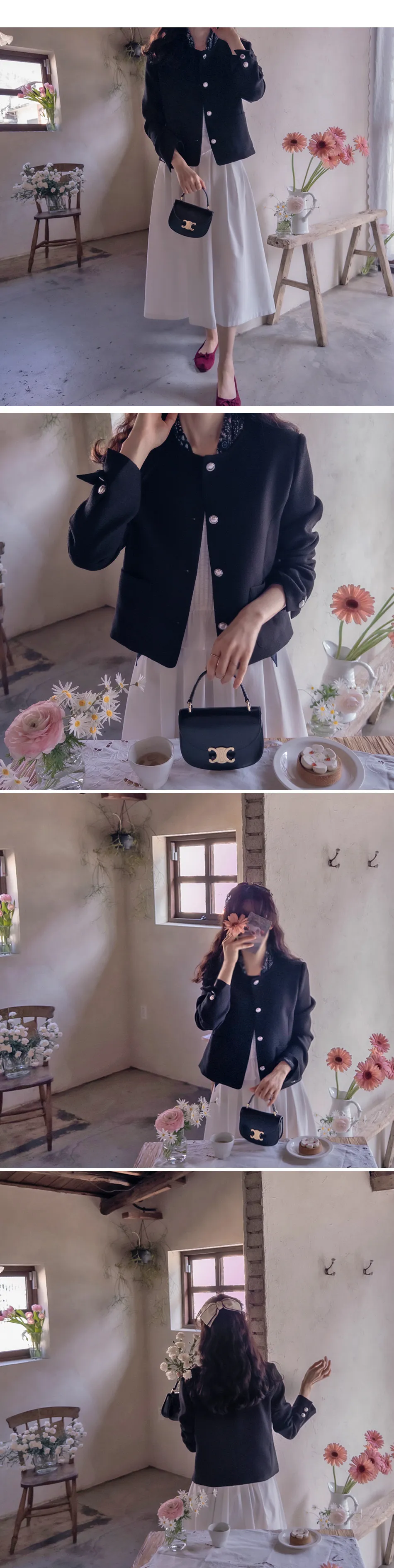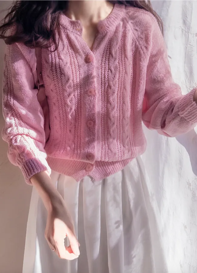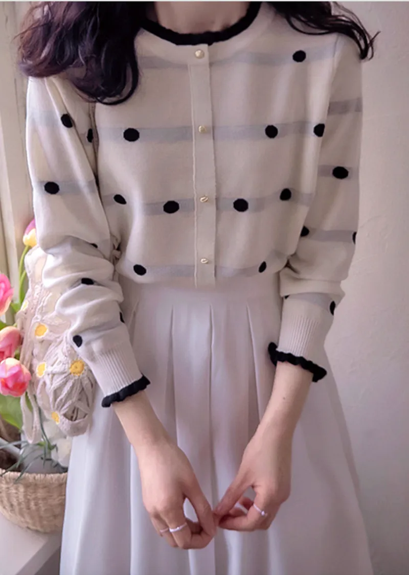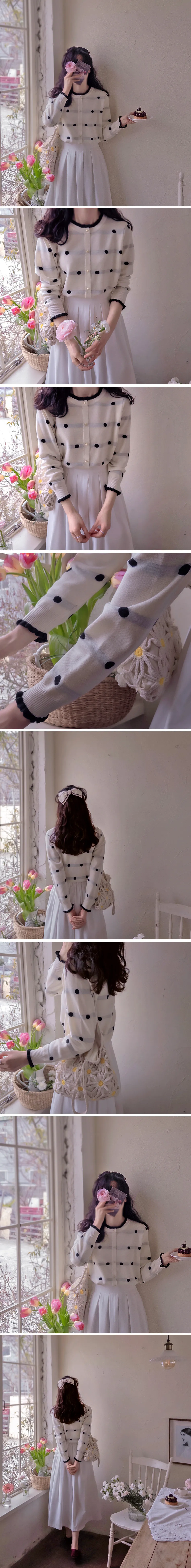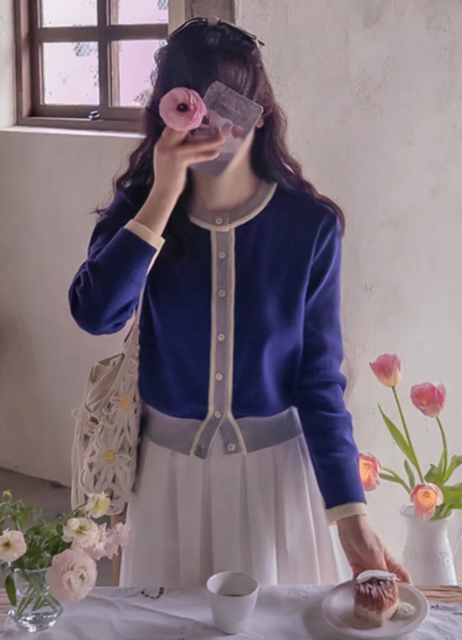 獨特領口鈕扣帶配色設計袖口層疊針織開衫