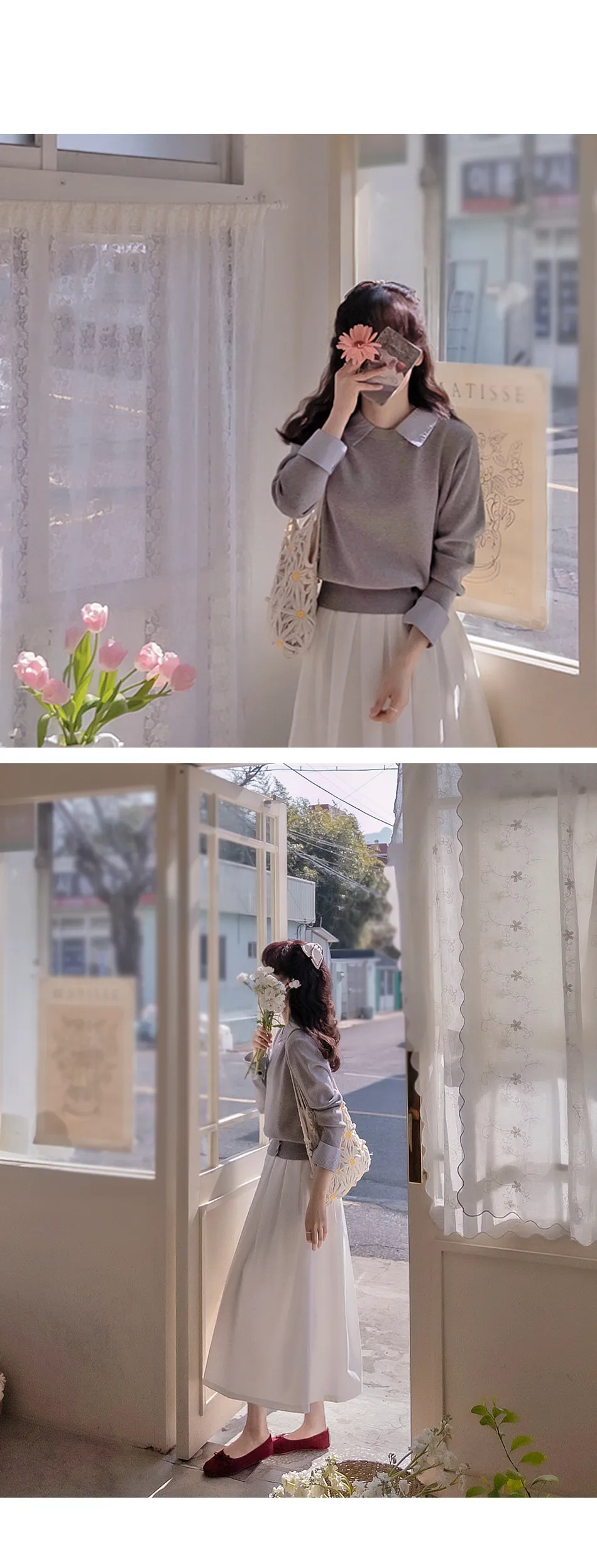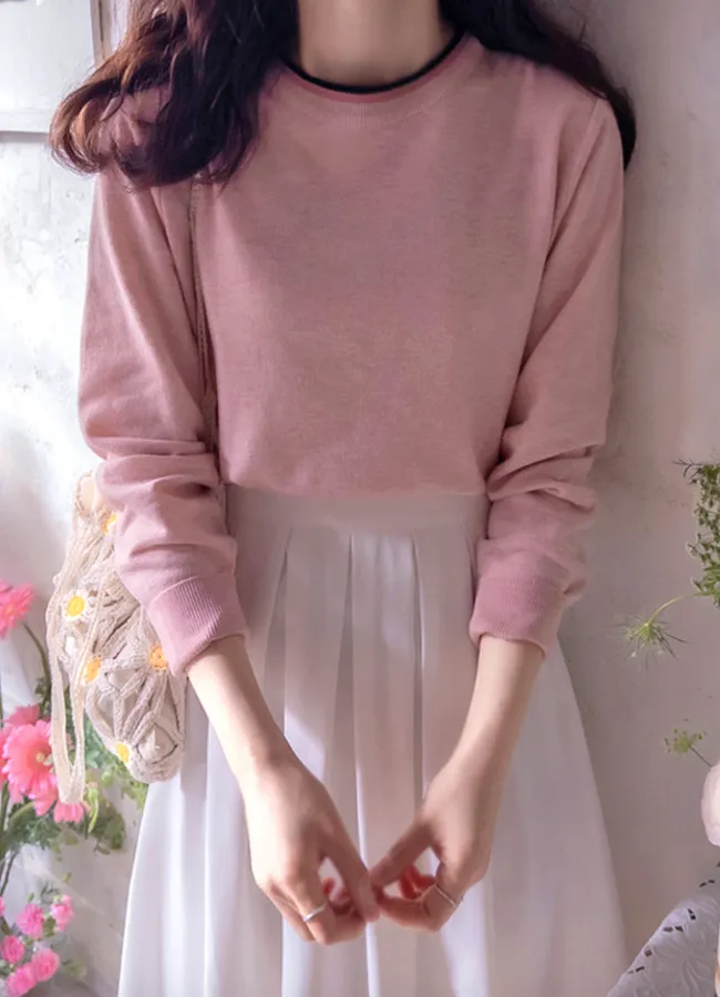獨特領口配色疊層設計柔軟舒適針織上衣
