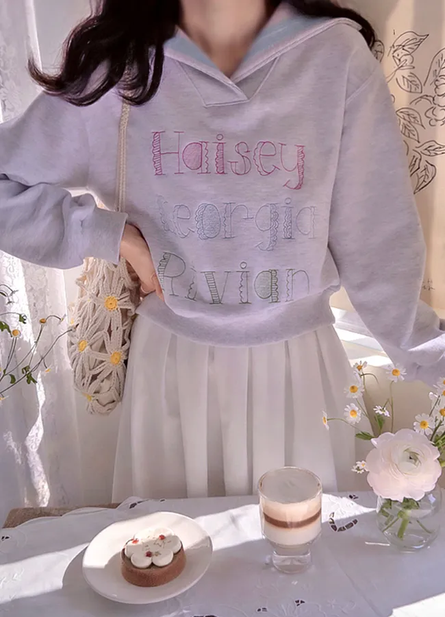 精緻色彩字母刺繡配色水手領穿搭上衣