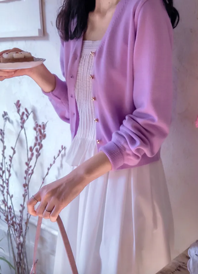 精緻春日色彩無袖針織上衣和開衫的套裝