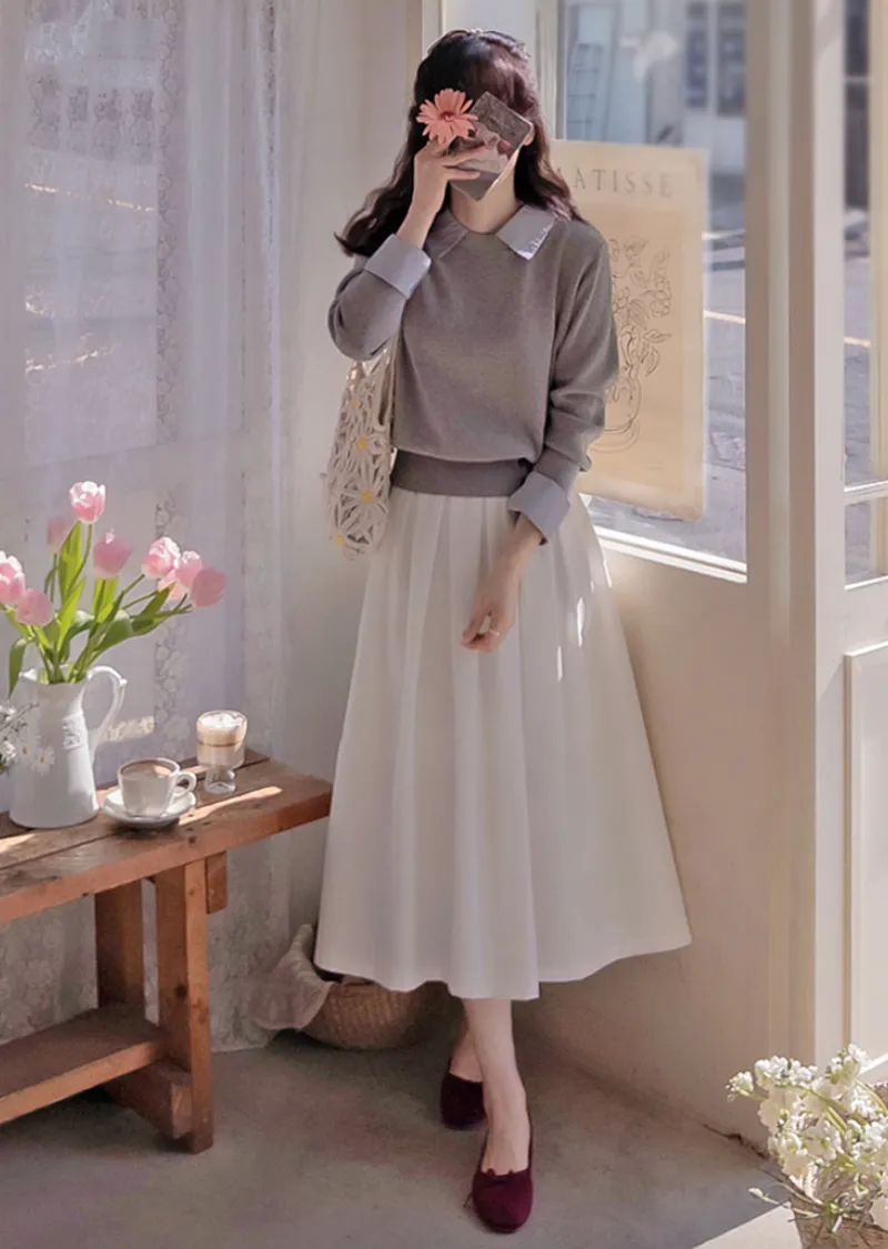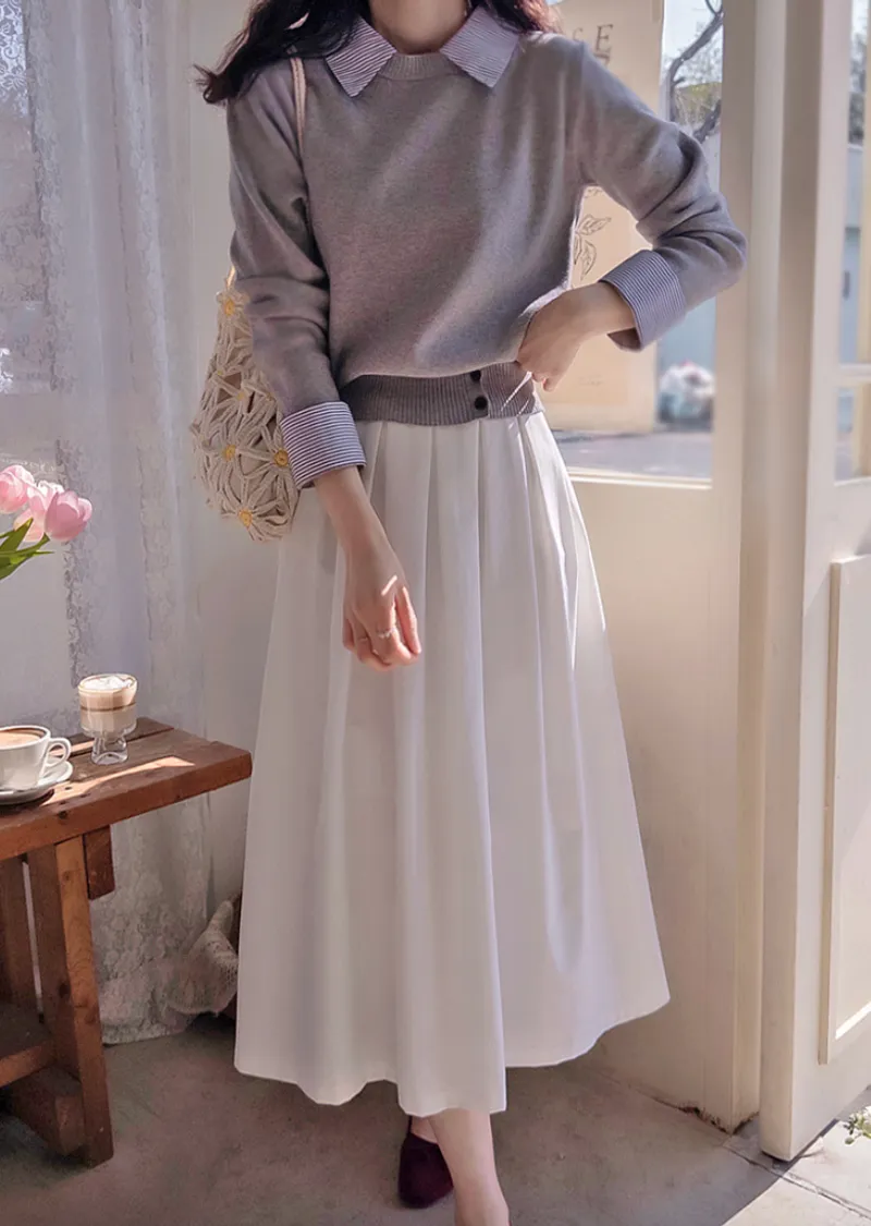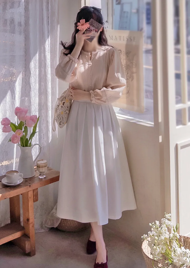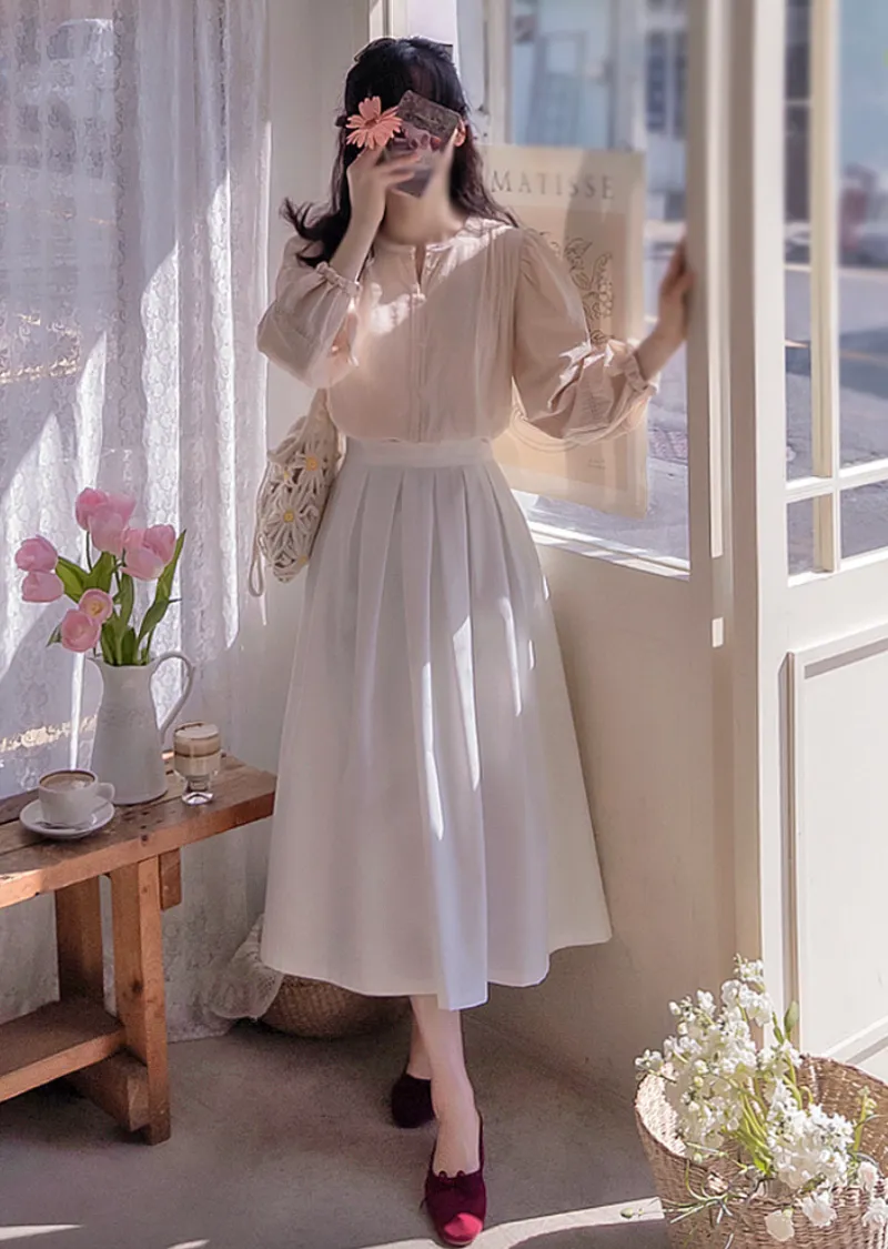 優雅氣質迷人褶襉線條中長裙