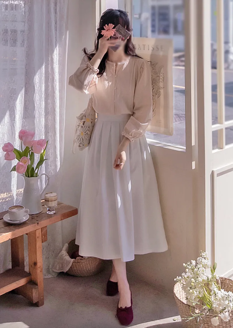 【聚酯纖維襯裡】【側邊拉鍊】【抗皺布料】【彈性舒適的後腰鬆緊帶】【適合即將到來的季節的修身剪裁裙擺】【褶襉2打造迷人時尚線條】【優雅易搭的當季色彩】