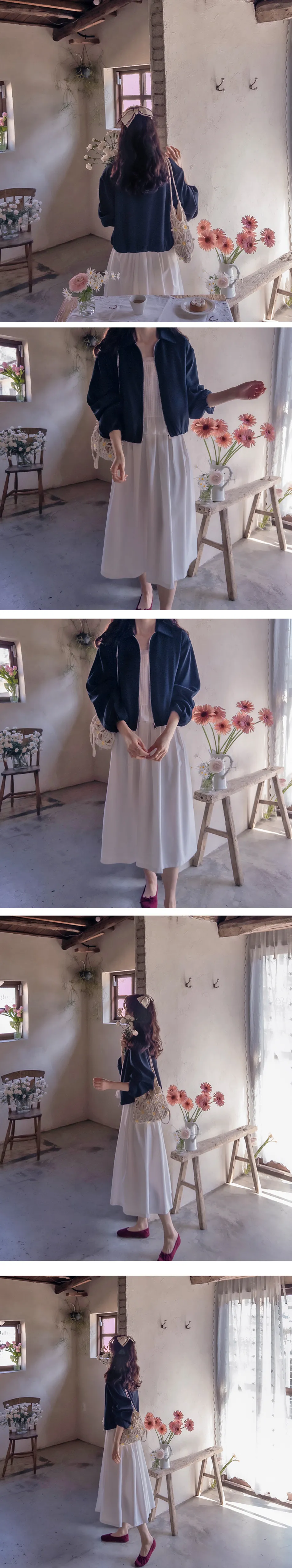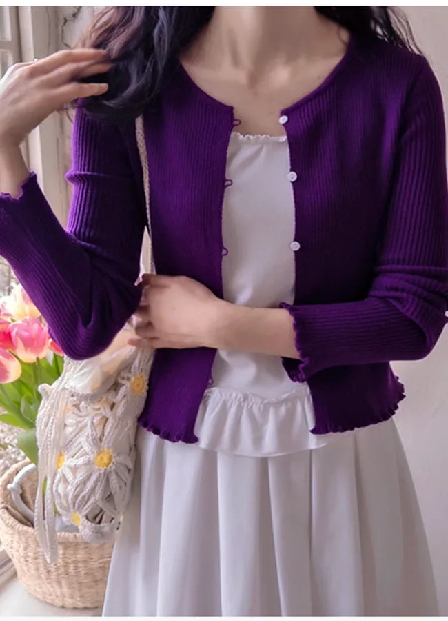 點綴袖末及下擺細微褶皺舒適彈性羅紋修身開衫
