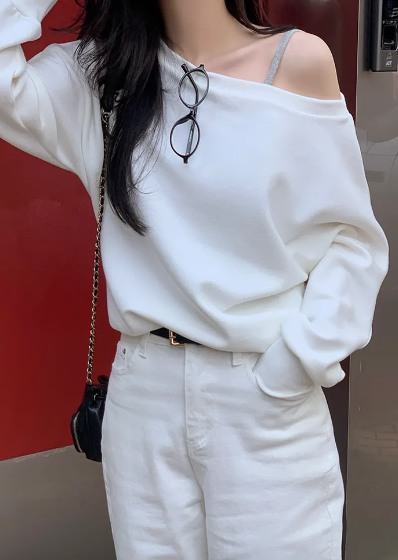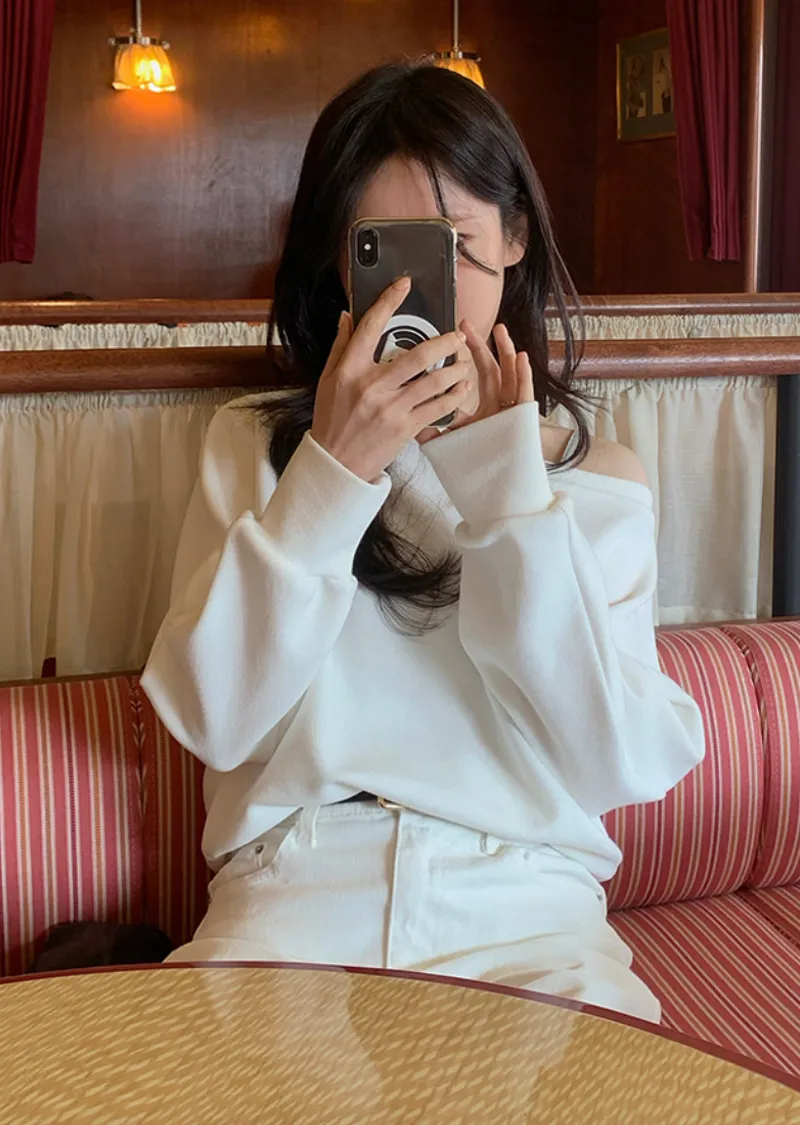 材質:67% 聚酯纖維,30% 棉,3% 氨綸。一款露肩上衣