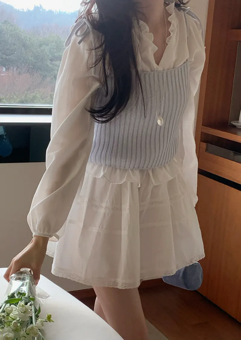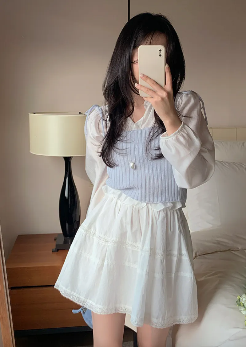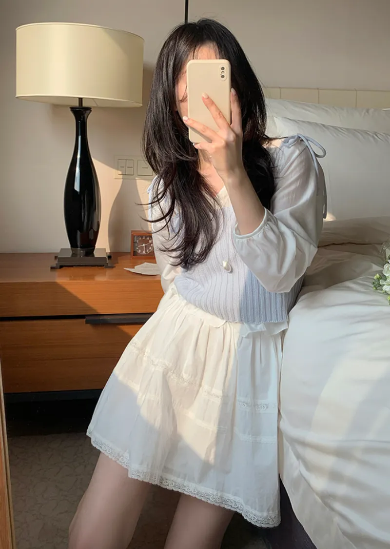 甜美氛圍蕾絲襯邊層次A字裙擺短裙