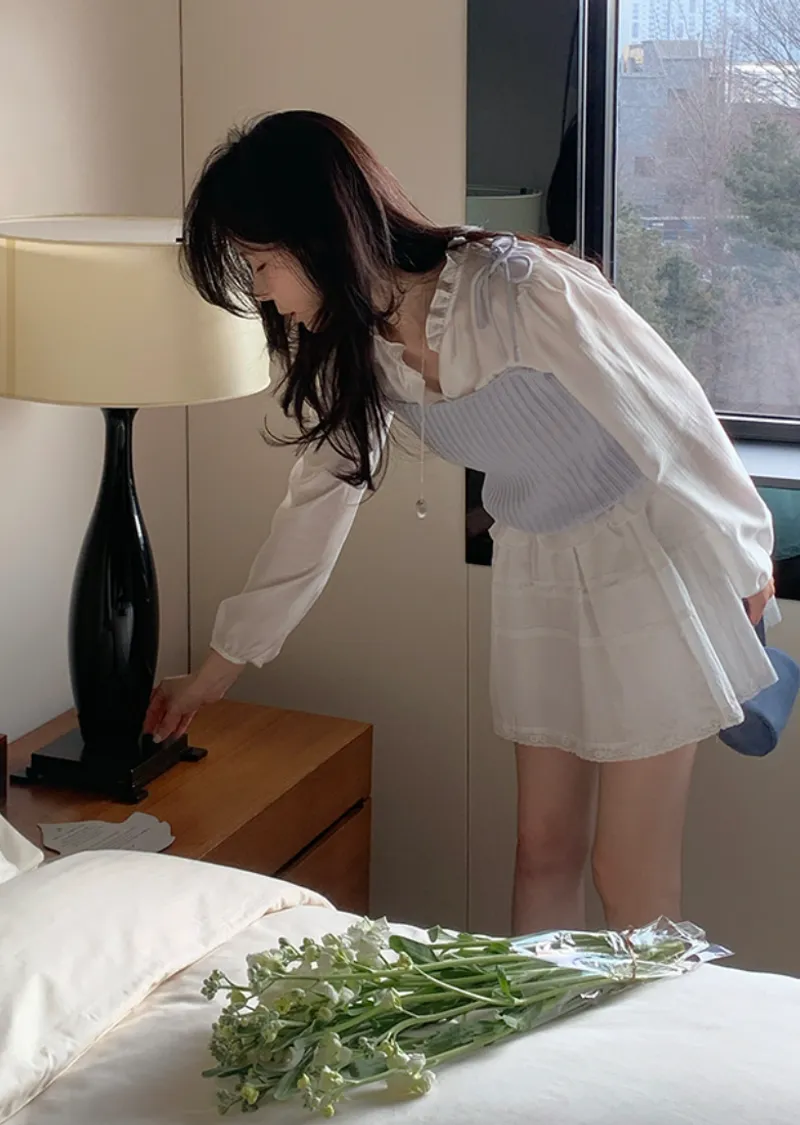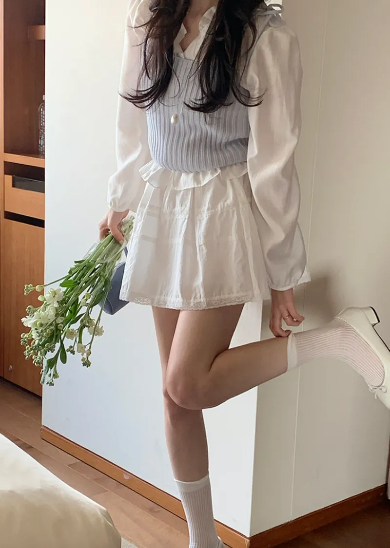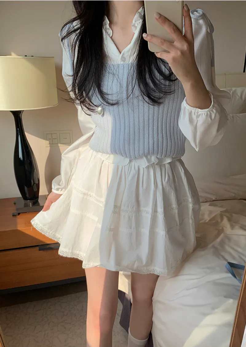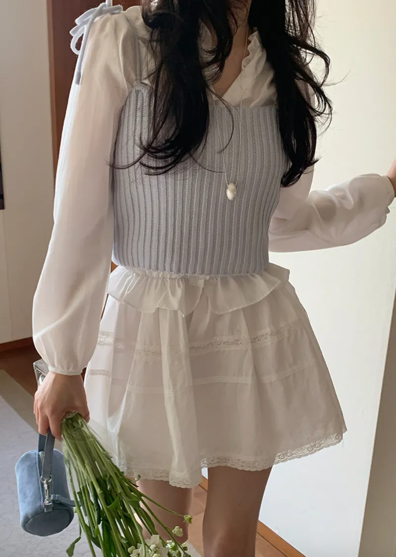 甜美氛圍蕾絲襯邊層次A字裙擺短裙