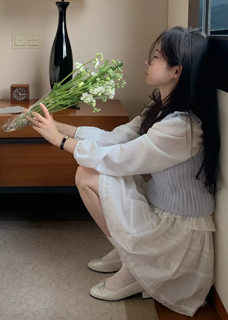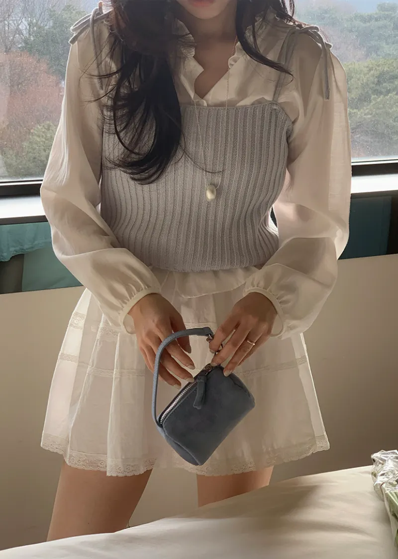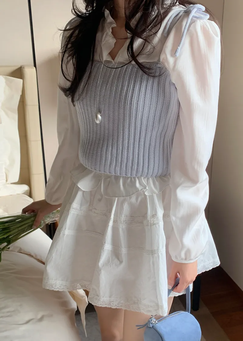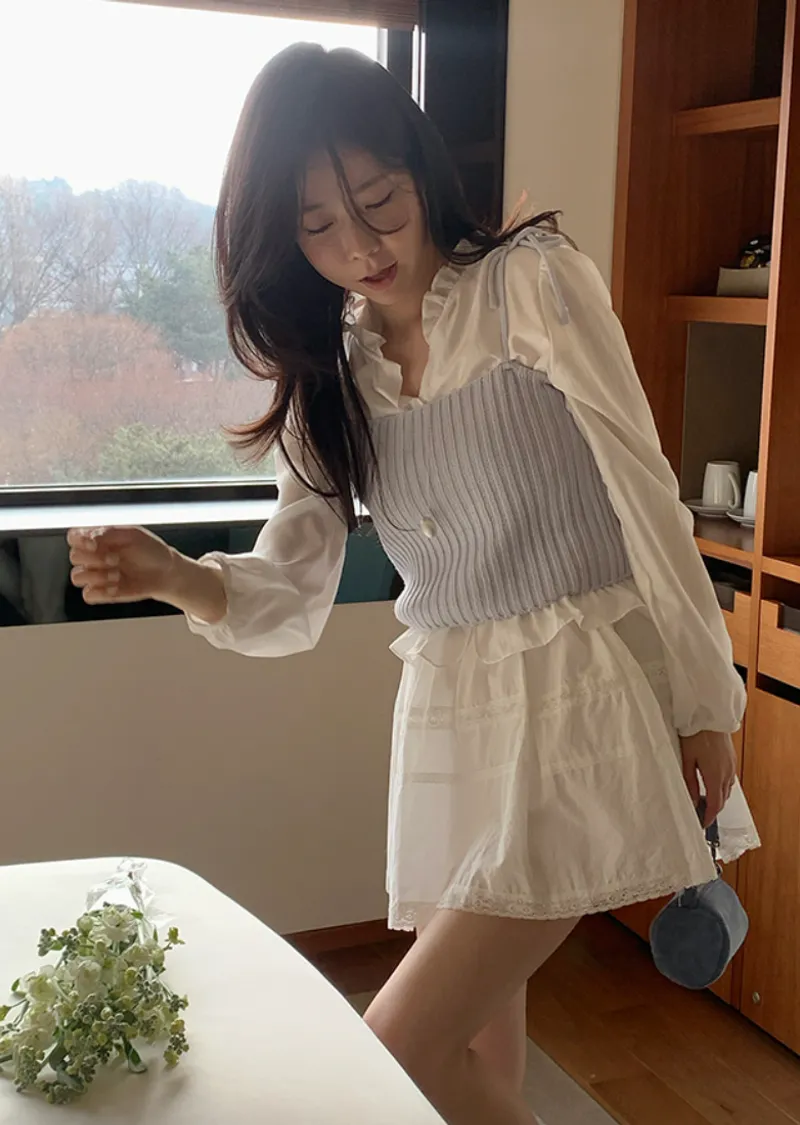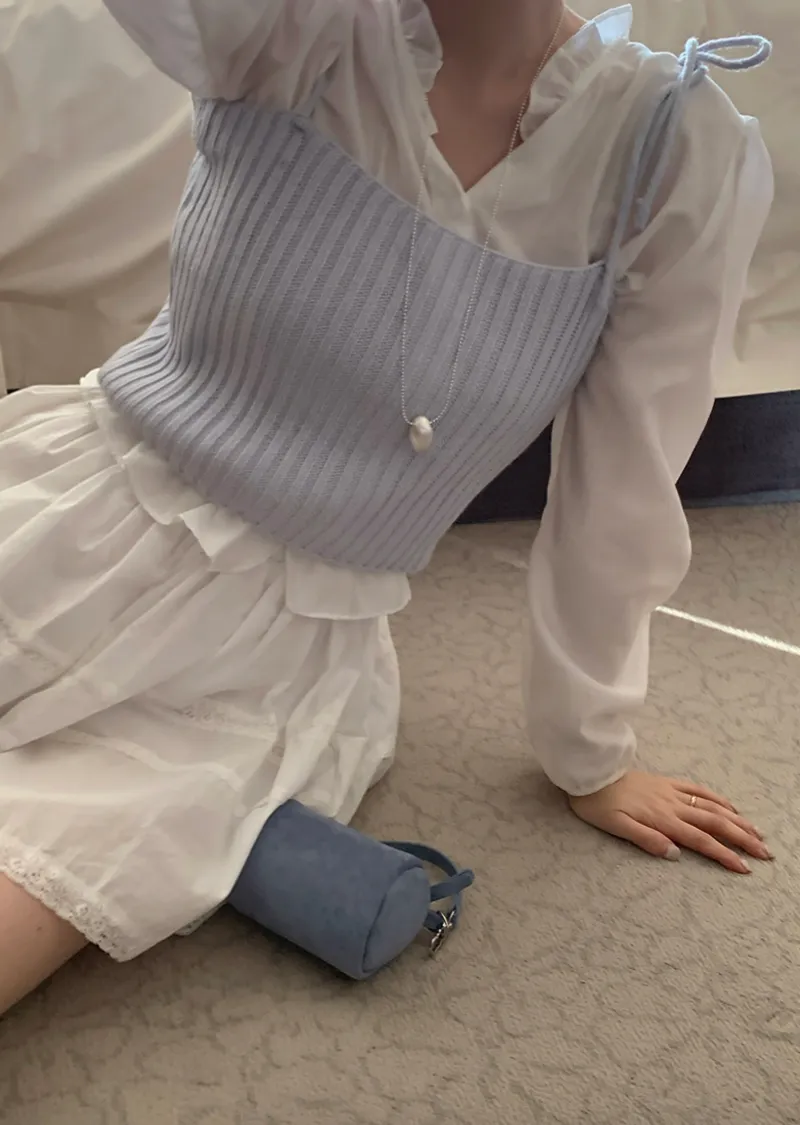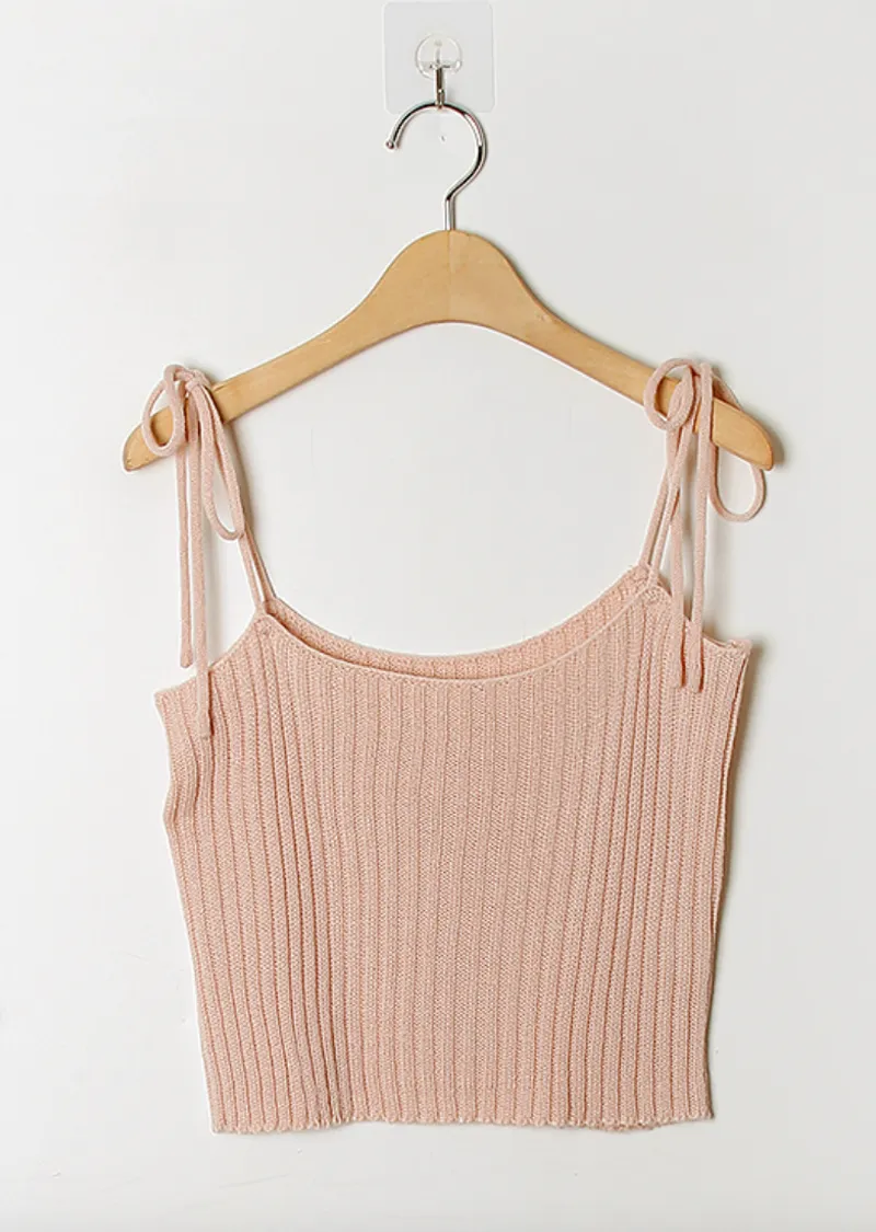 甜美造型肩綁帶羅紋針織穿搭背心