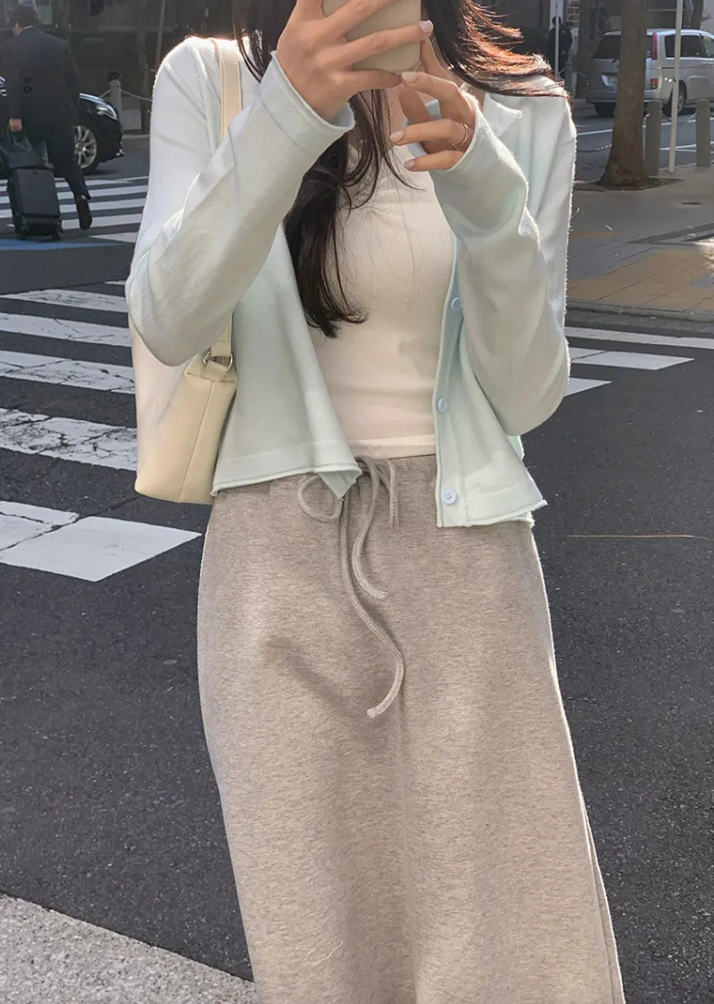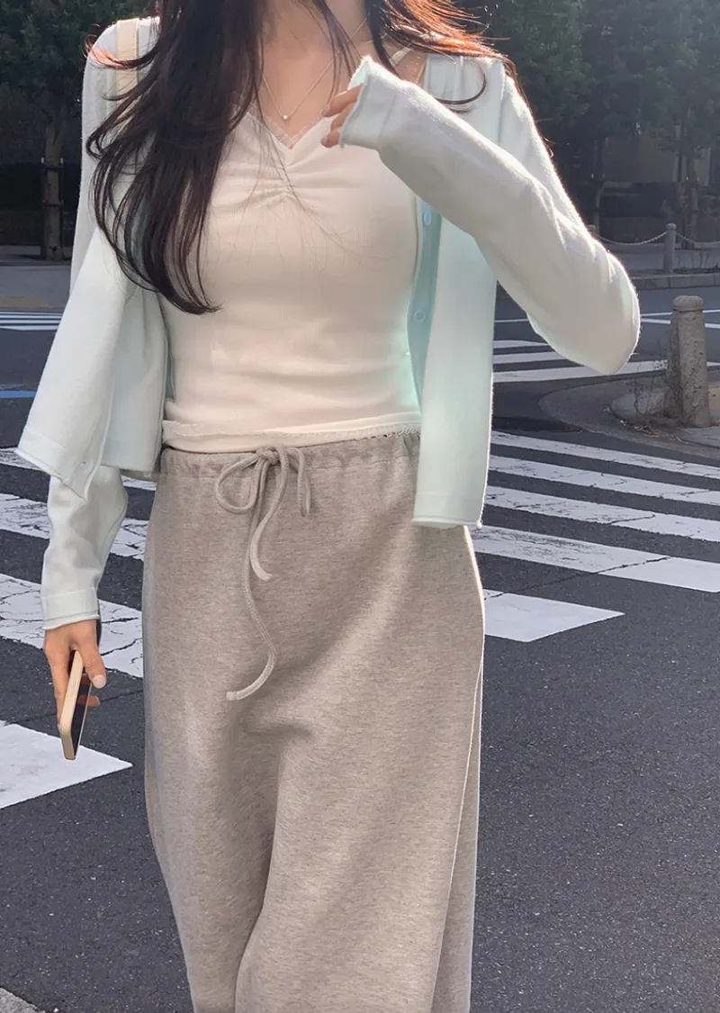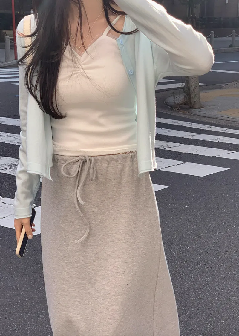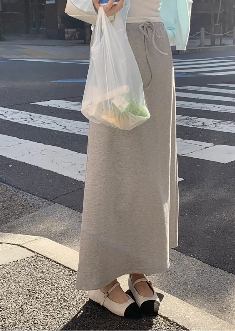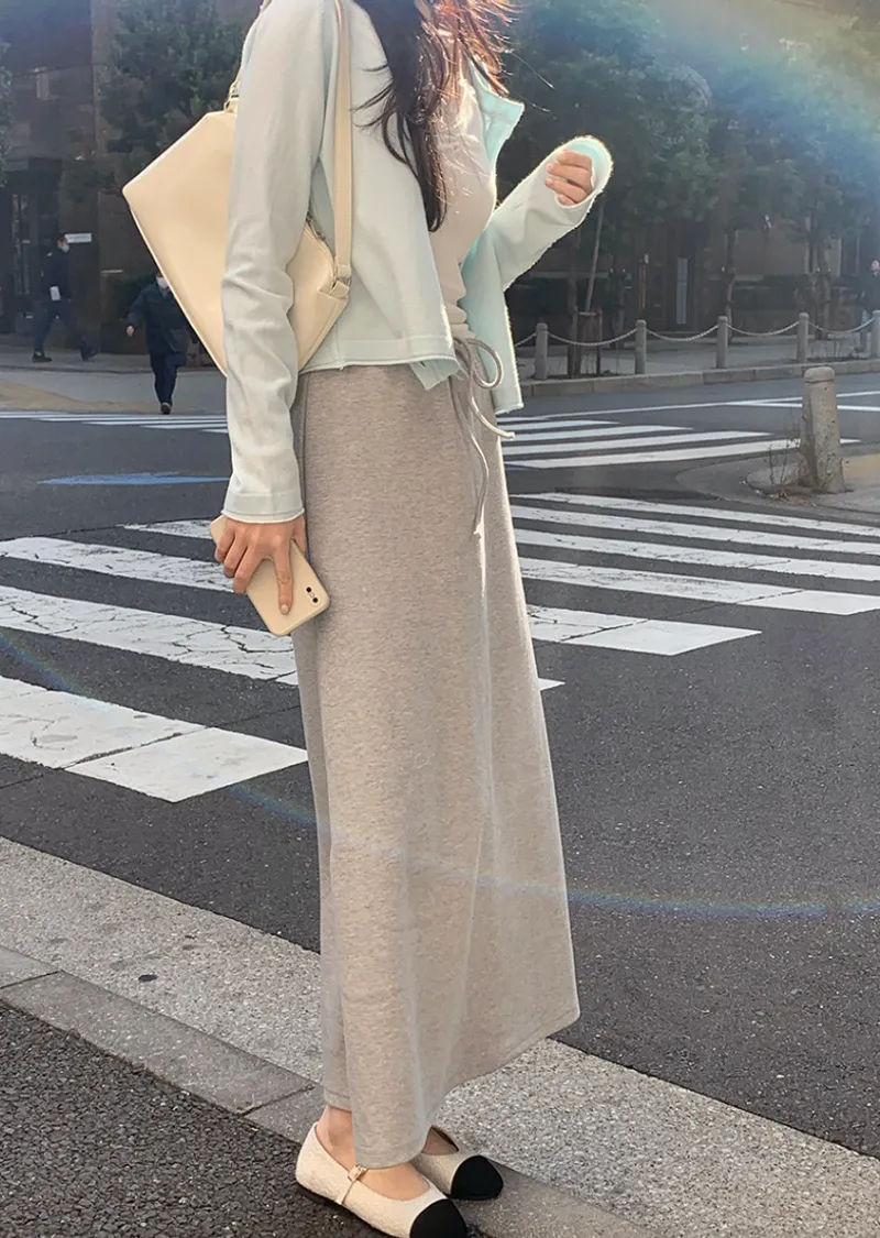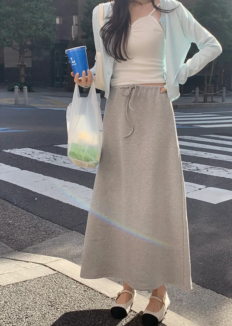 日常穿著柔美A字版型綁帶收腰舒適中長裙
