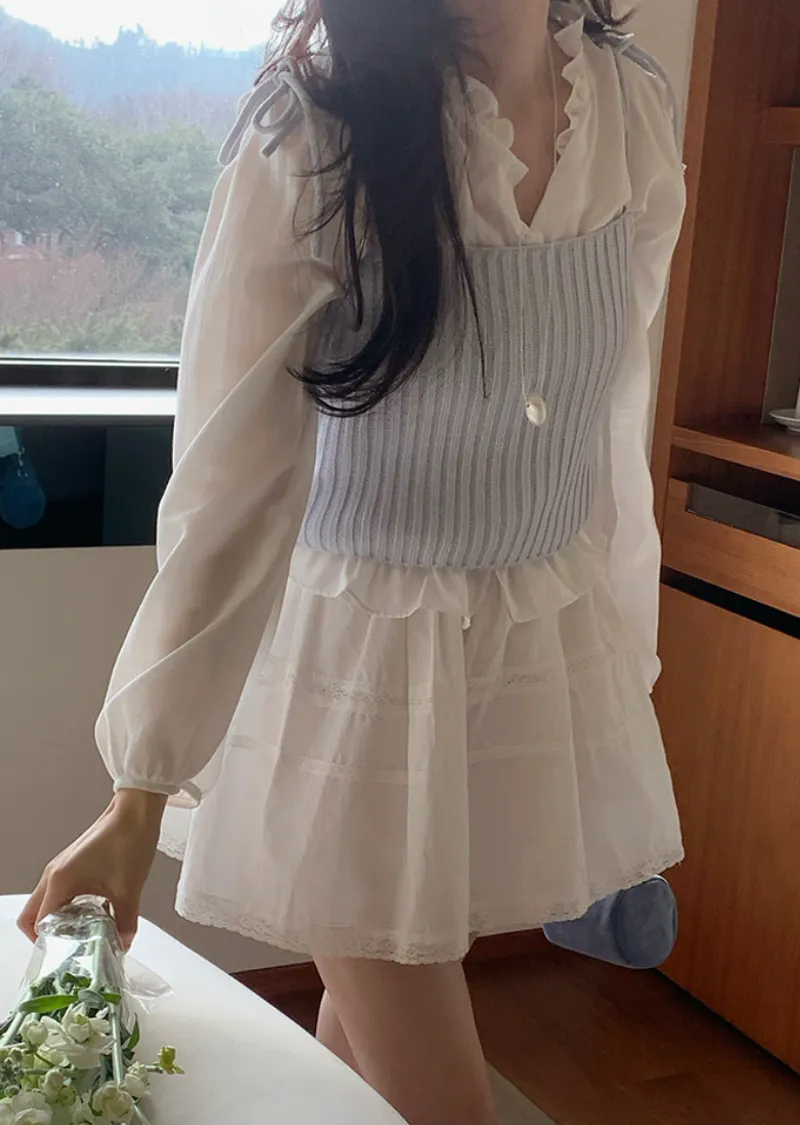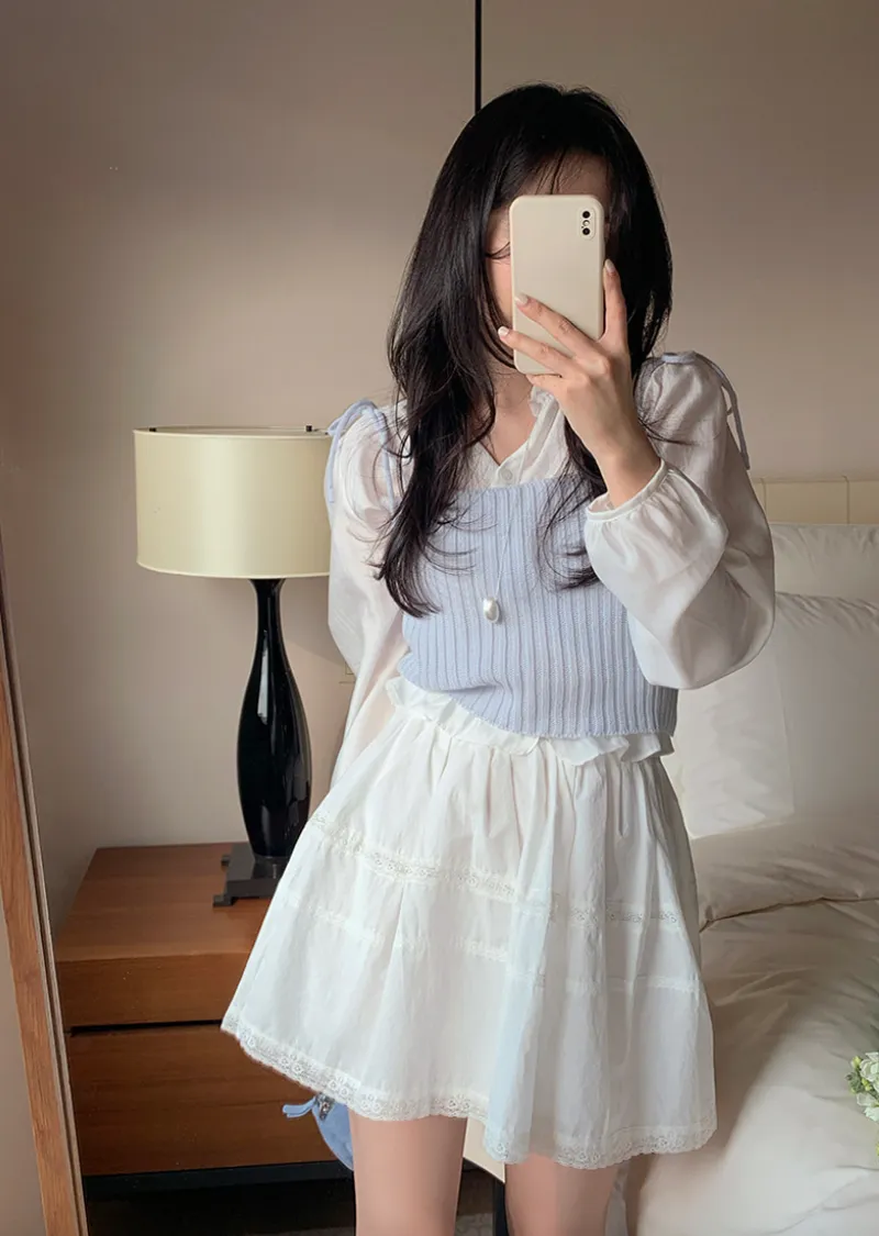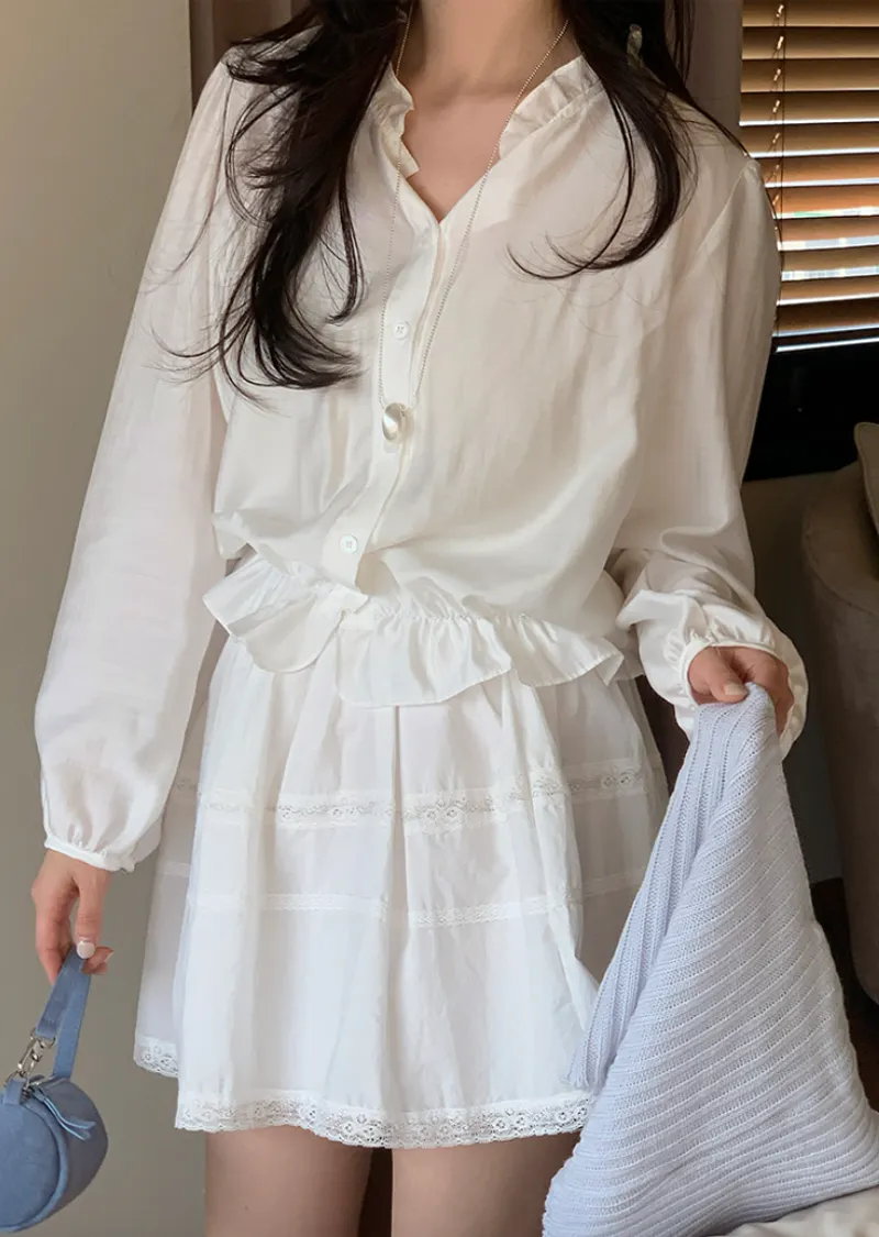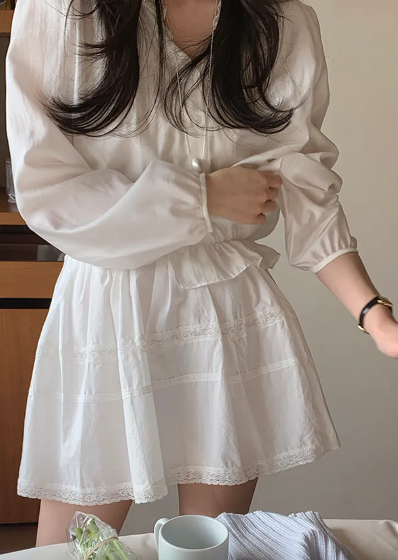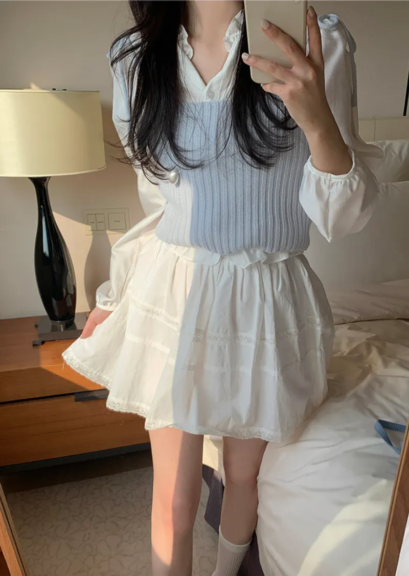 甜美氛圍蕾絲襯邊層次A字裙擺短裙