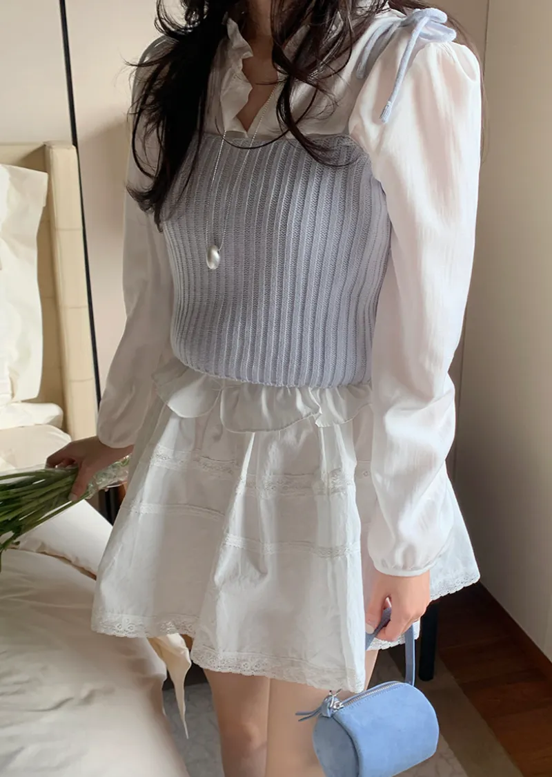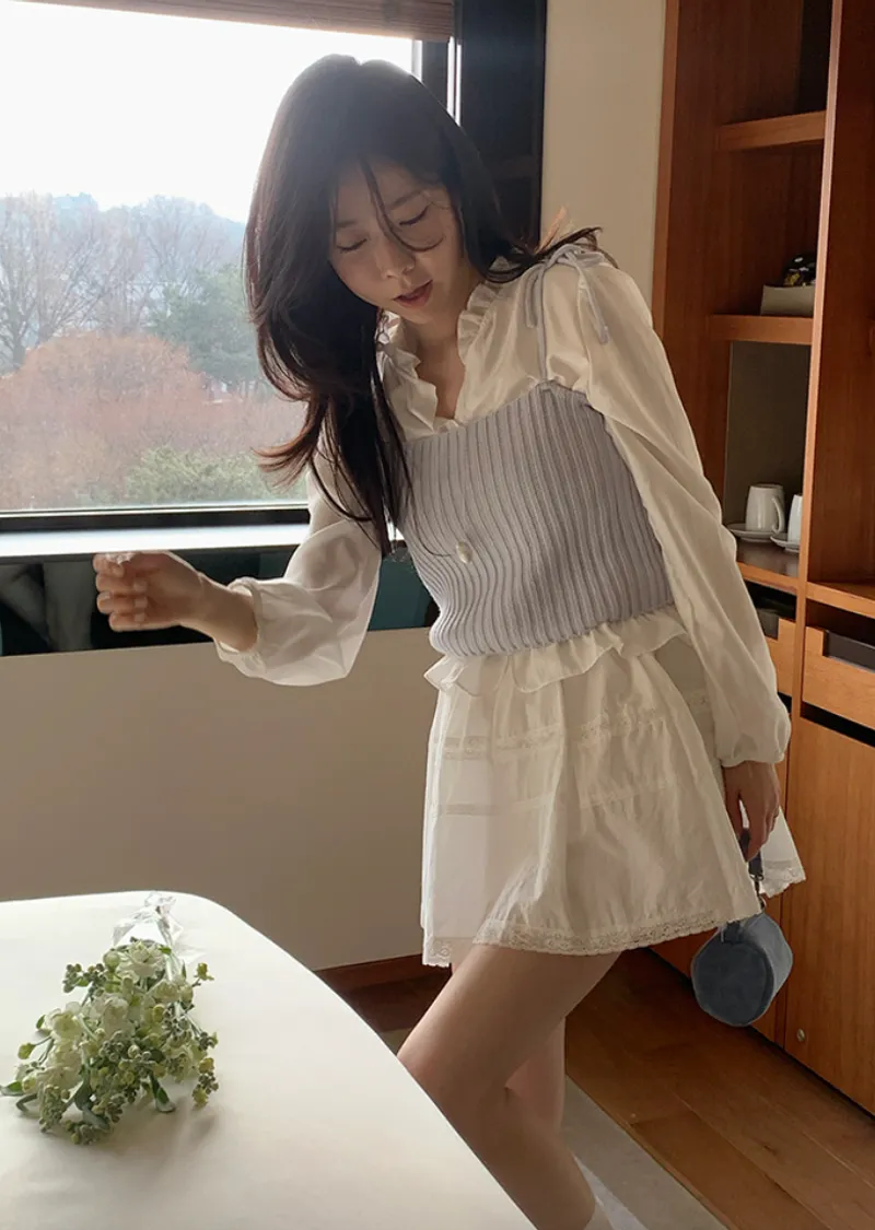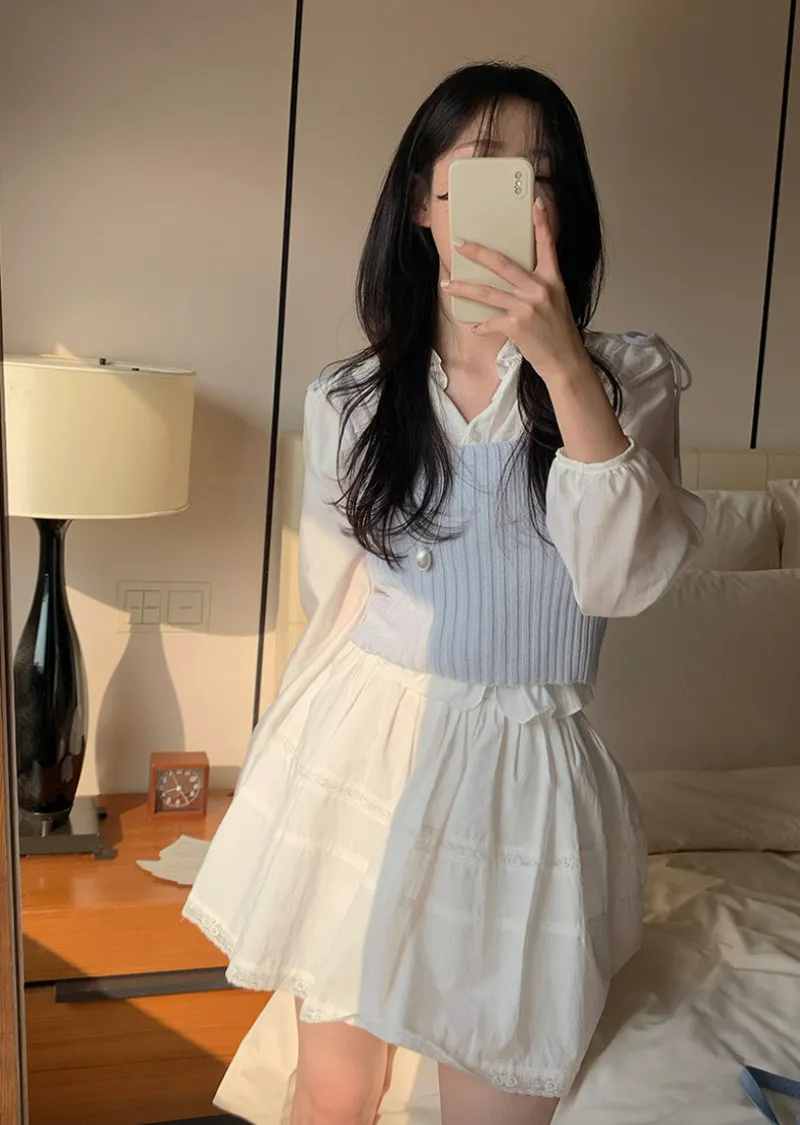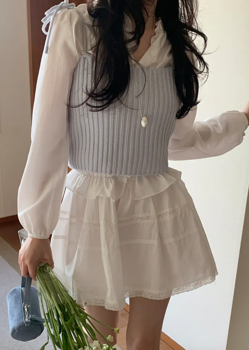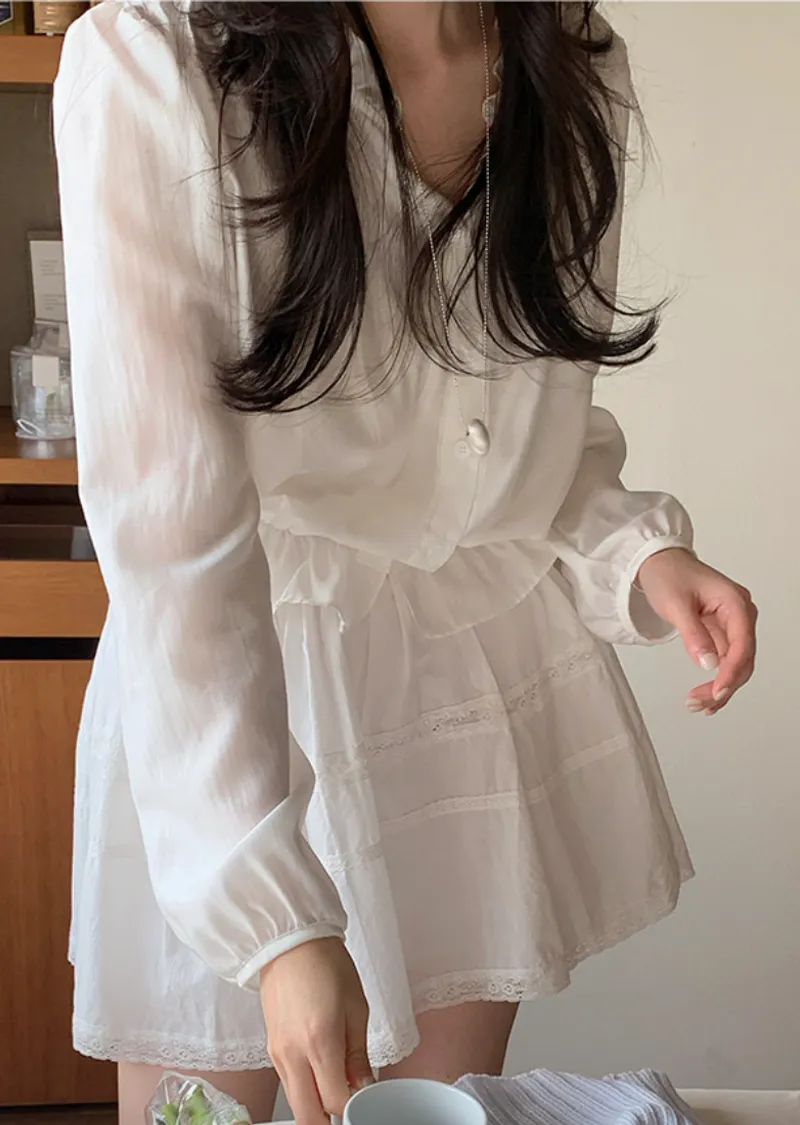 甜美氛圍蕾絲襯邊層次A字裙擺短裙