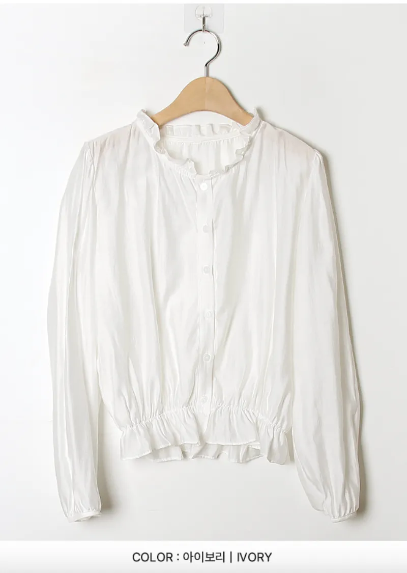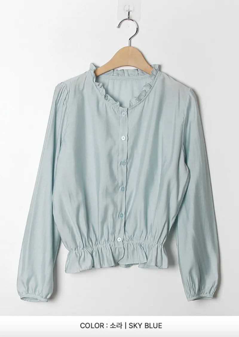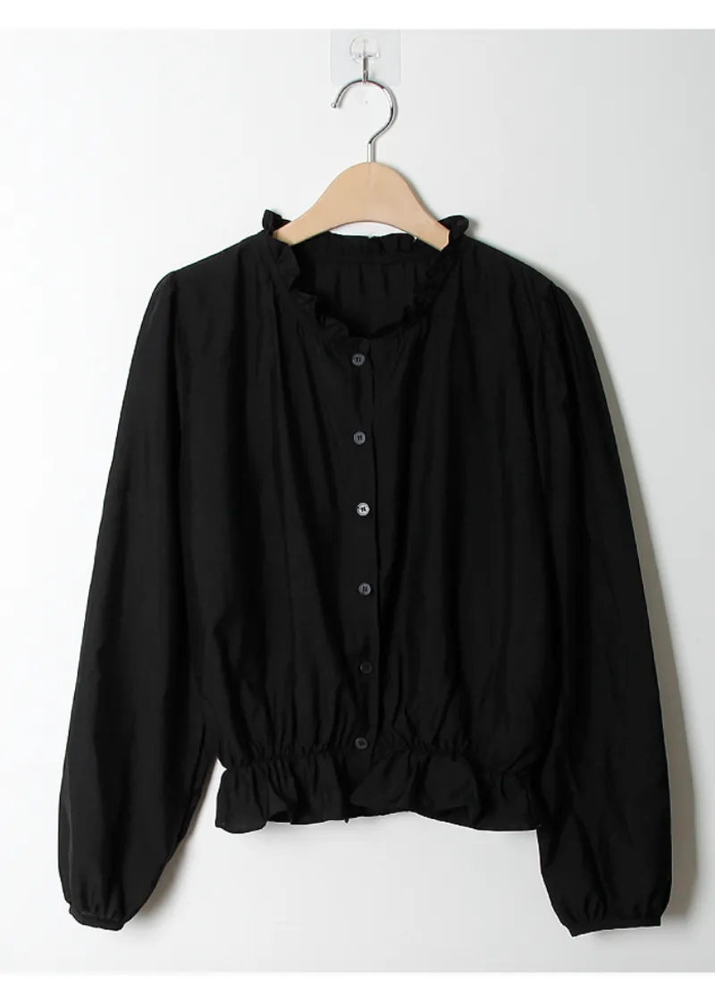 柔美氣息荷葉邊領口收腰下擺散開排扣上衣