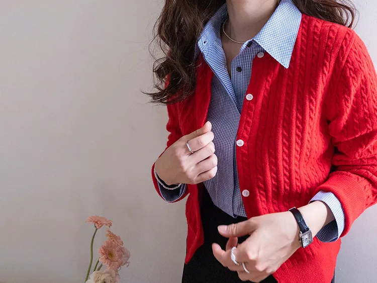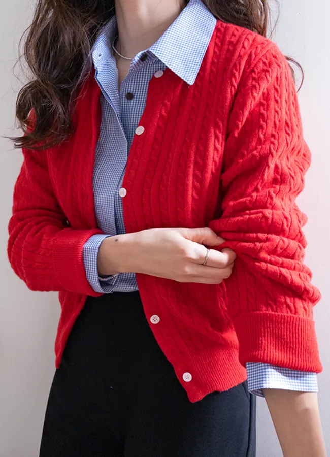 經典扭紋編織圓領基本款百搭開衫