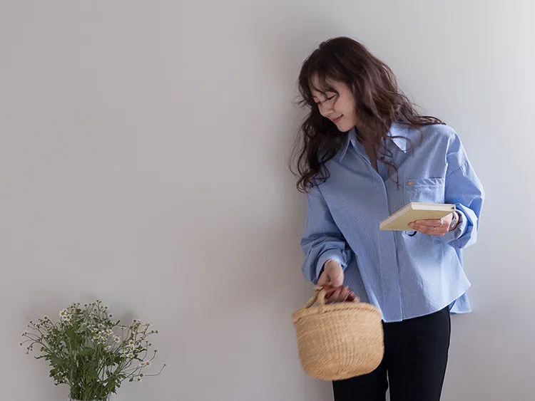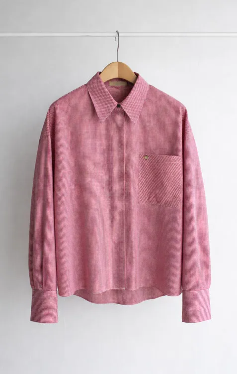 【低調格紋圖案非常適合日常穿著】 【隱藏紐扣設計,簡潔俐落】 【側胸口袋,增添休閒氣息】 【寬袖口,即使捲起袖子也時尚有型】