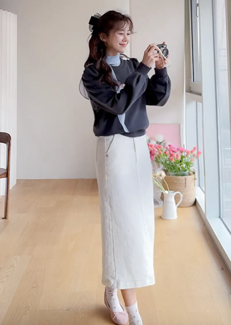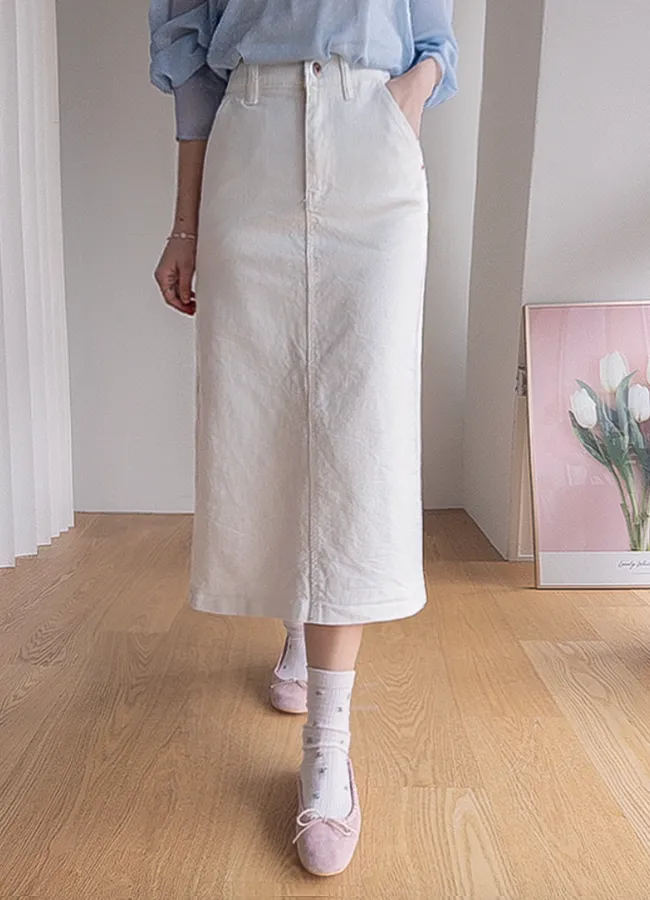 日常穿搭簡潔H剪裁後開衩棉質中長裙