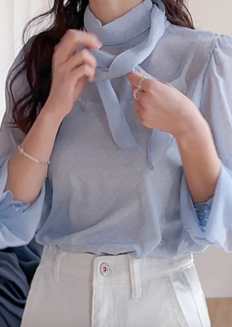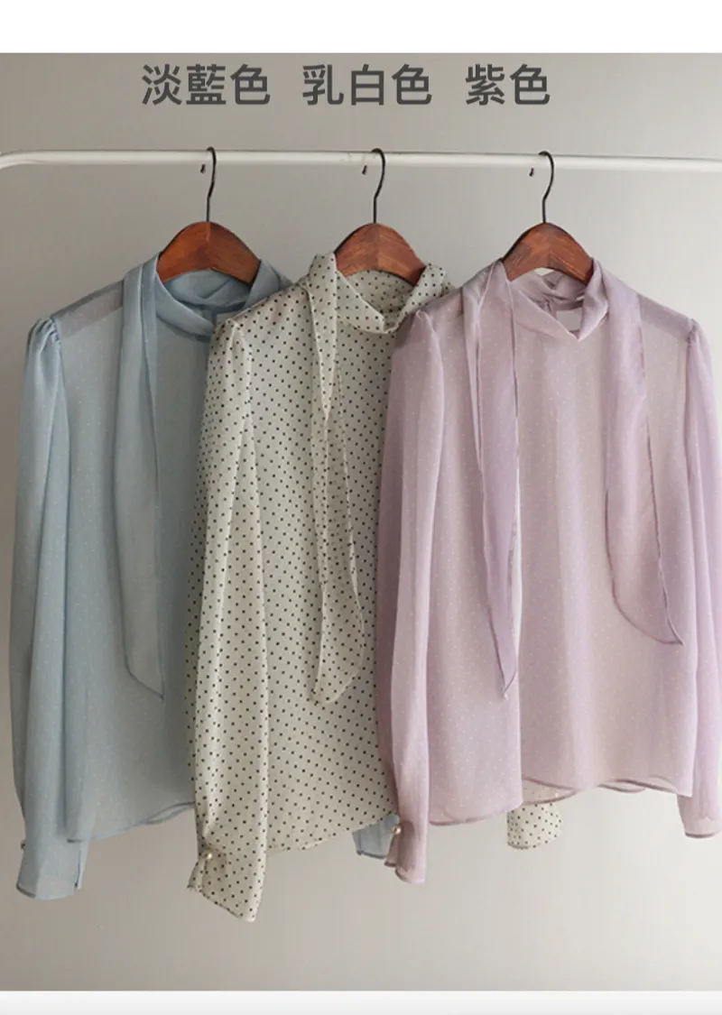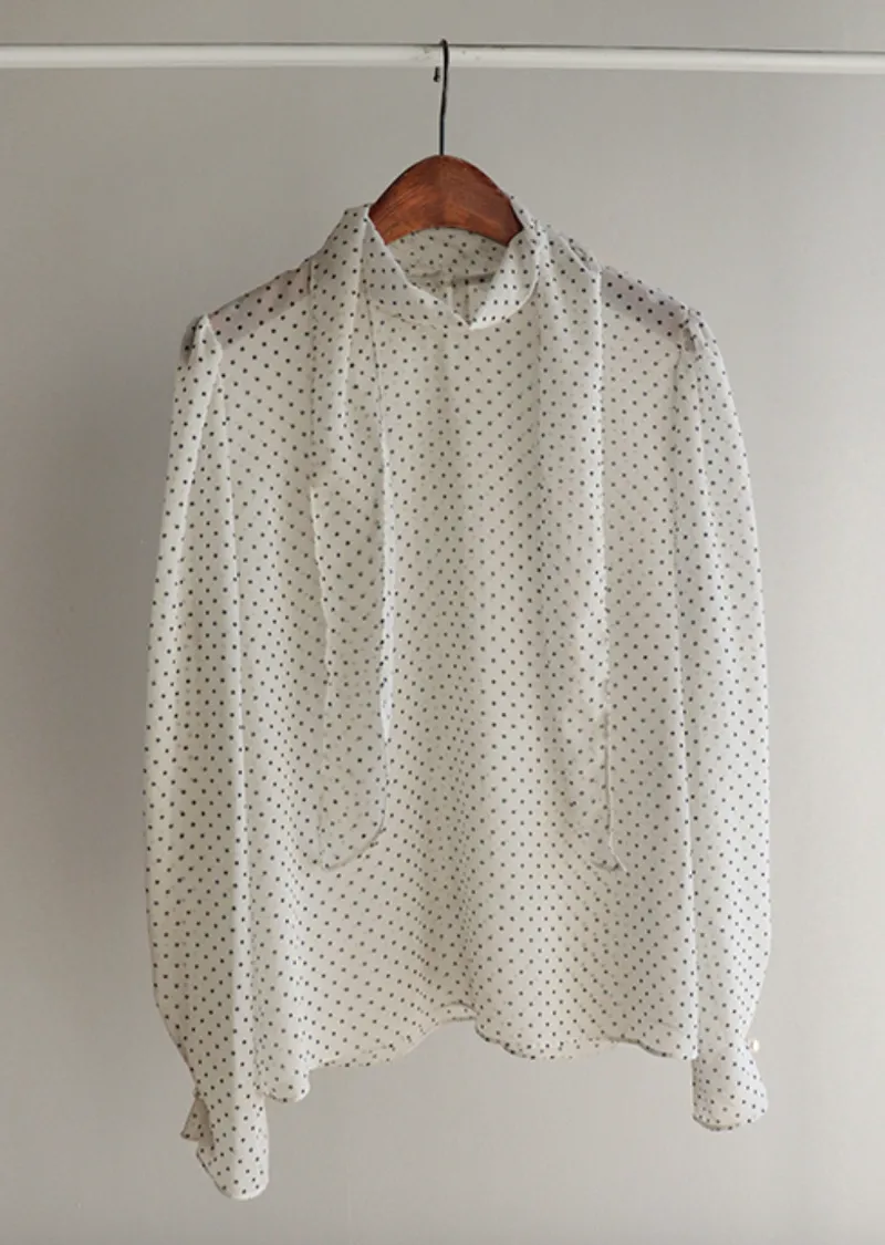 【精緻圓點圖案,營造柔美氛圍】【領巾設計,增添一絲靈動】【袖口飾以緞帶,更添甜美氣息】【單穿或疊穿皆宜】