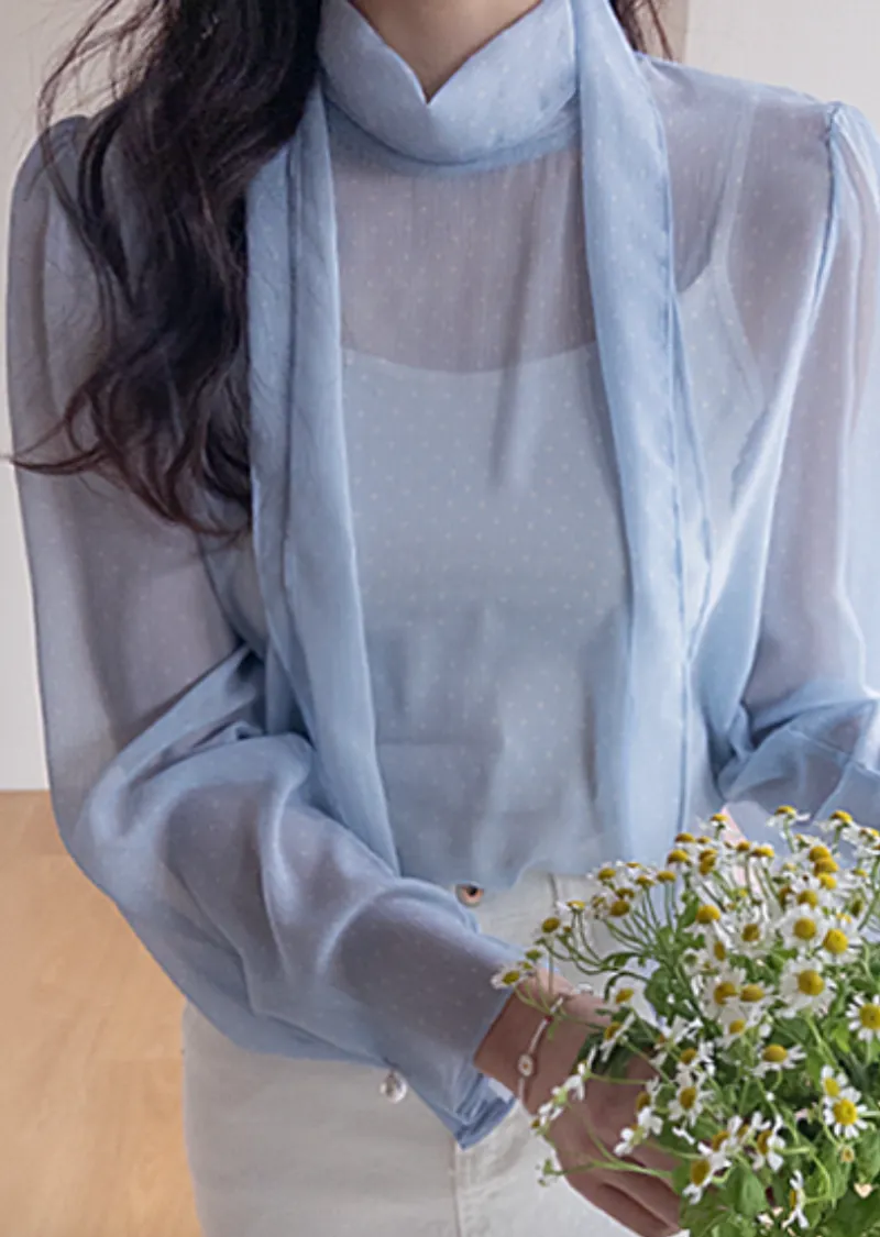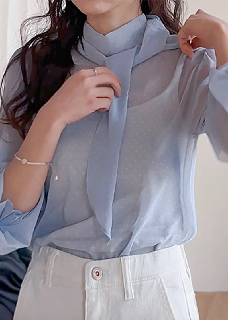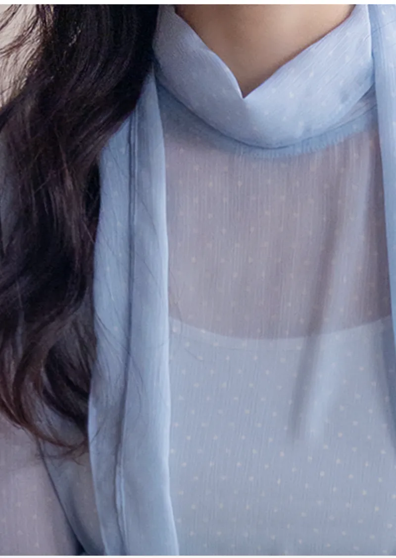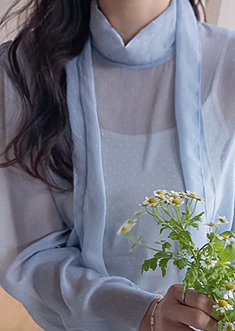 【精緻圓點圖案,營造柔美氛圍】【領巾設計,增添一絲靈動】【袖口飾以緞帶,更添甜美氣息】【單穿或疊穿皆宜】