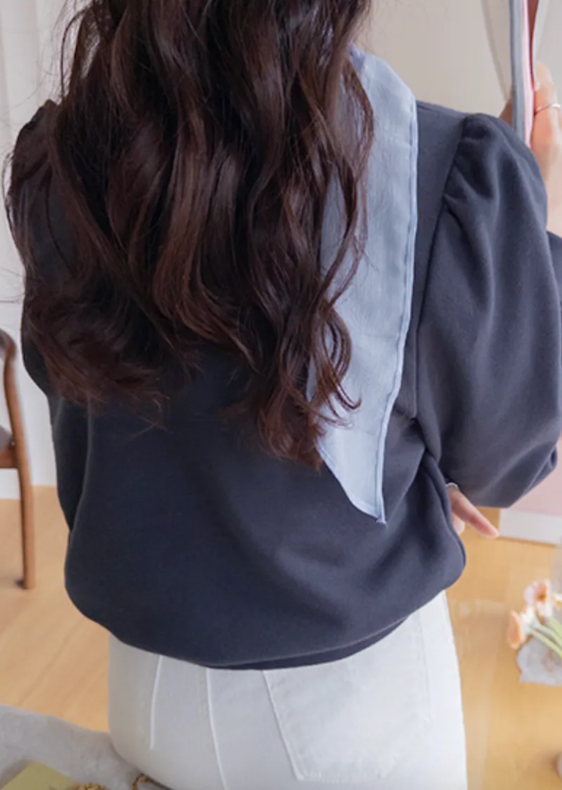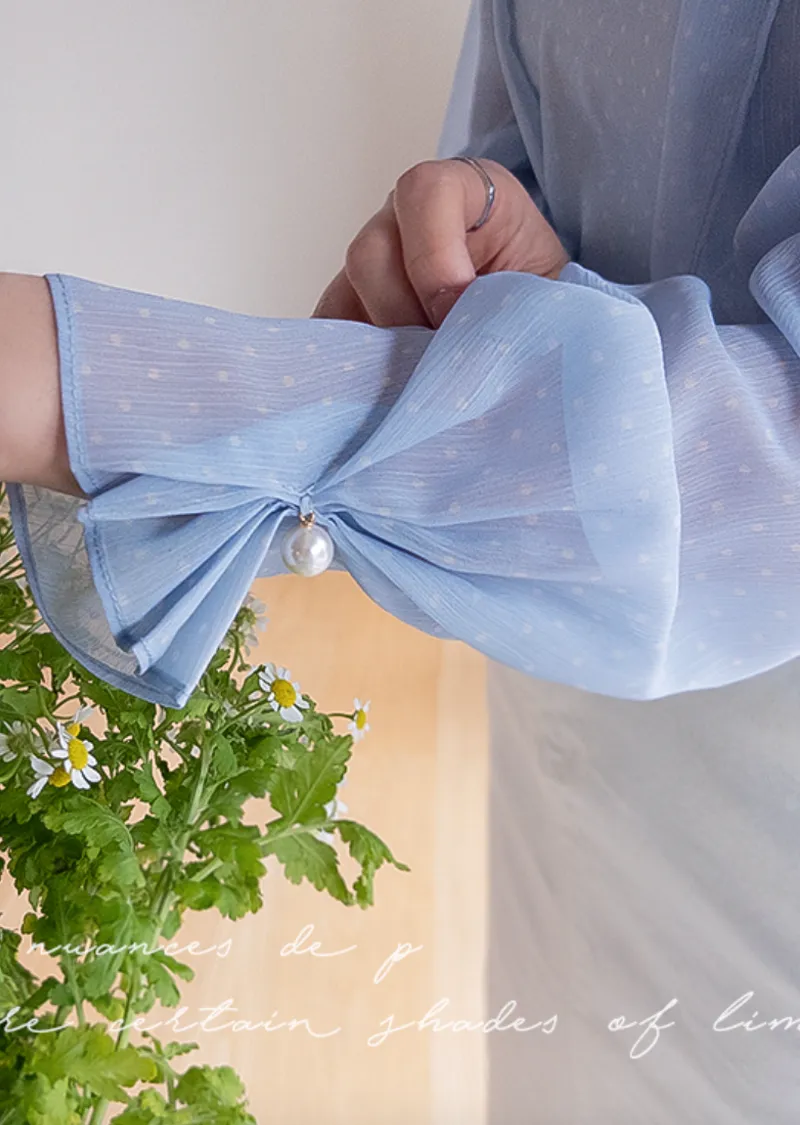 柔和氛圍領綁帶點綴袖末摺帶珍珠圓點點上衣