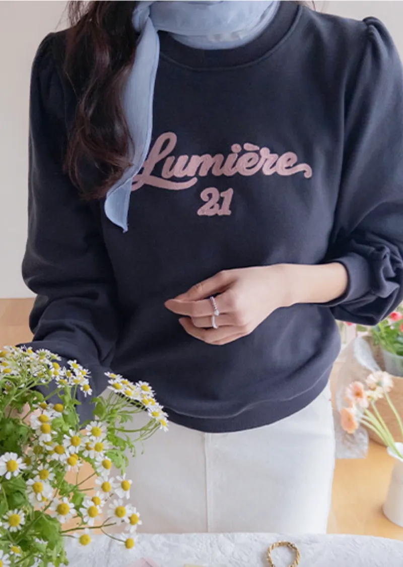 圓領點綴字母刺繡休閒穿搭上衣