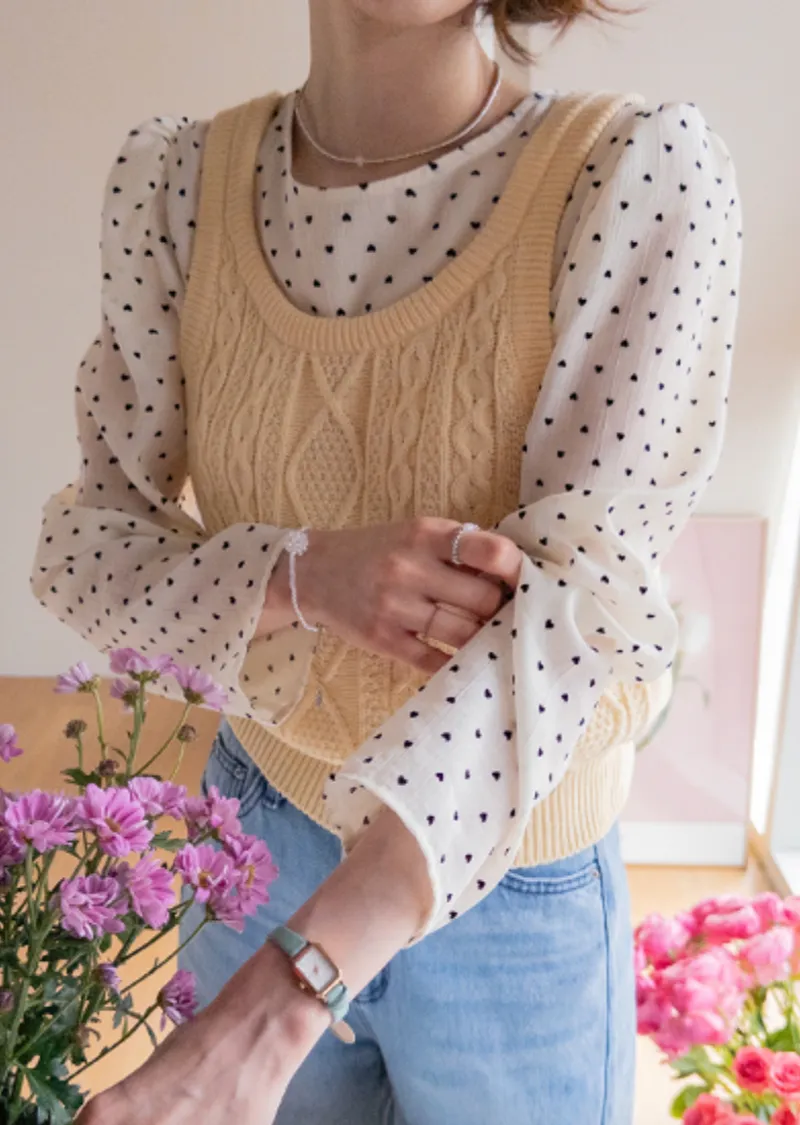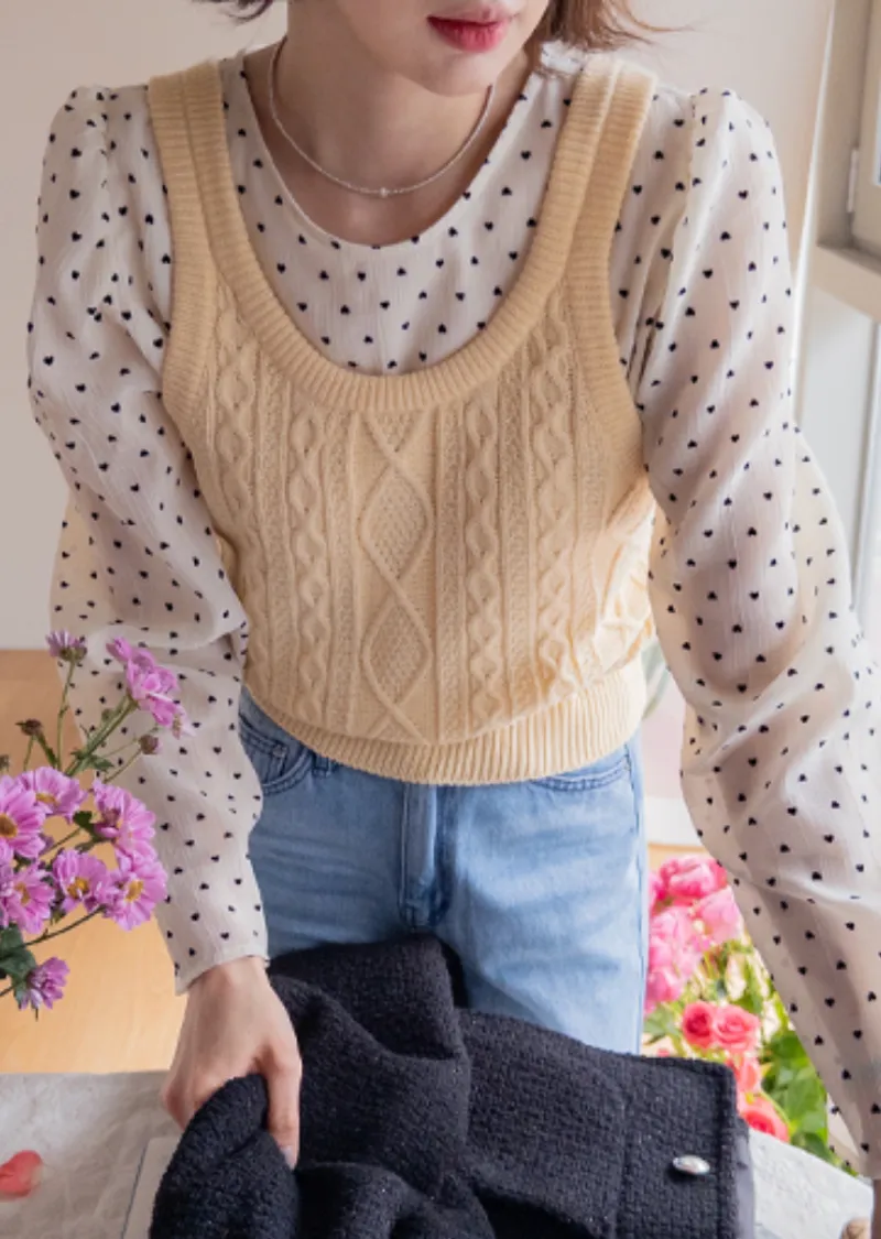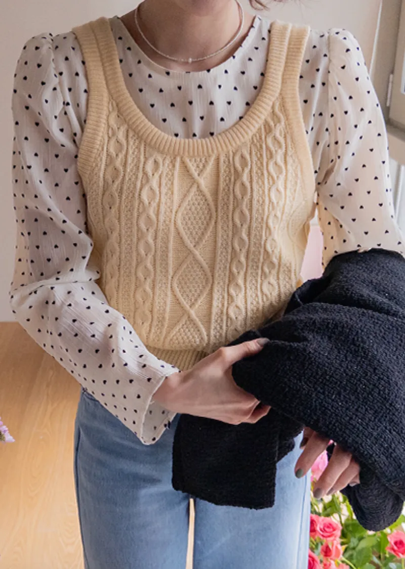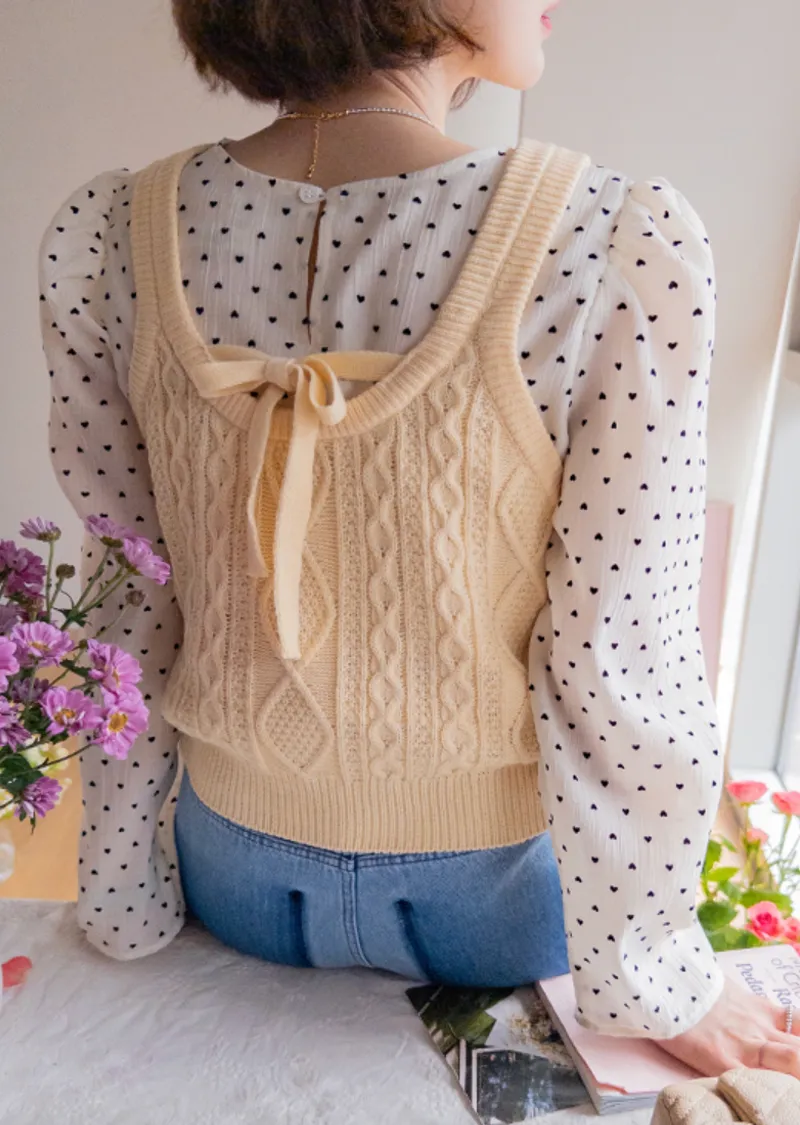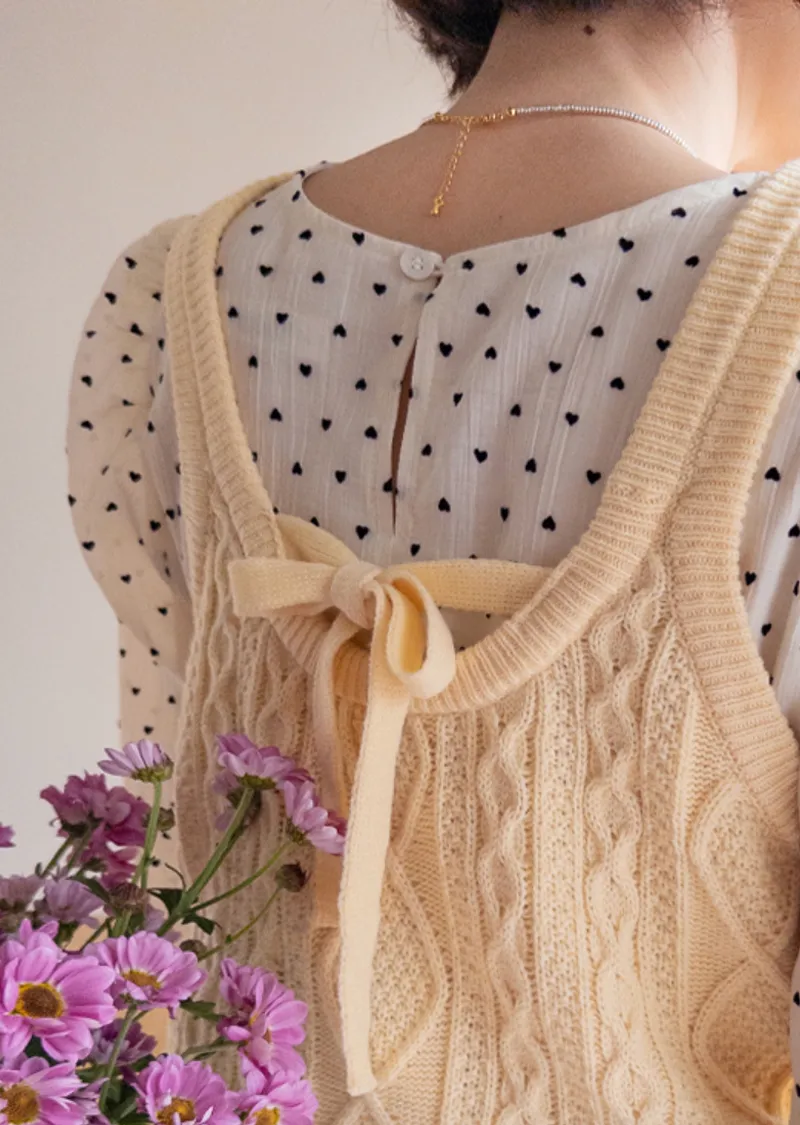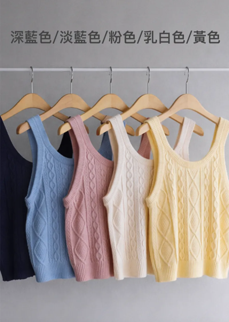 可愛後綁帶設計扭紋編織穿搭針織背心