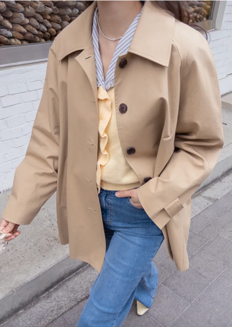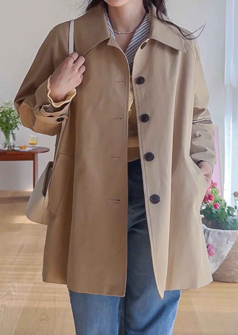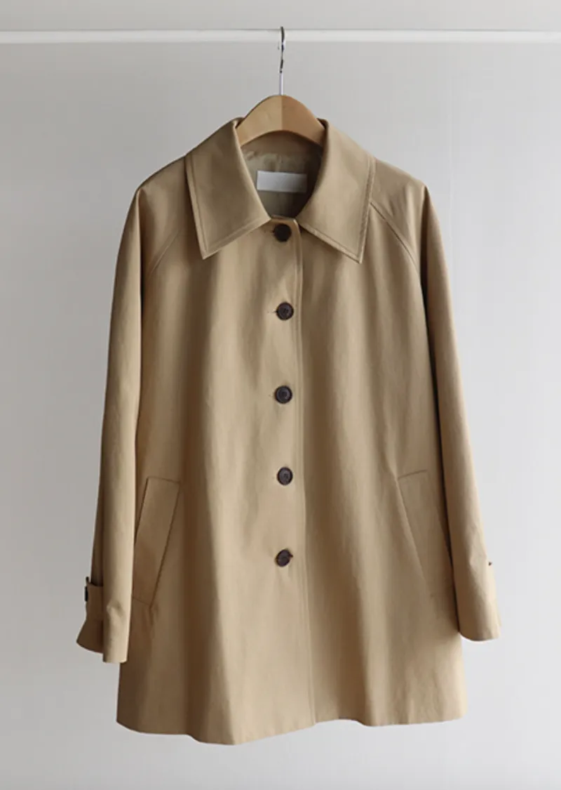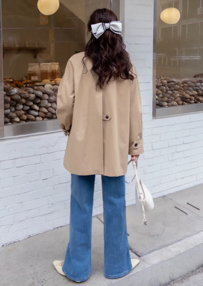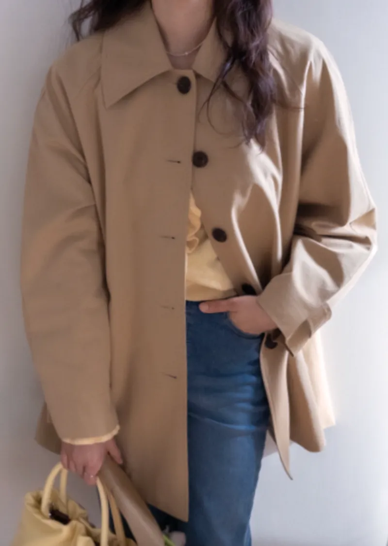 自然風格連肩袖微A字廓形後側褶襉設計風衣外套
