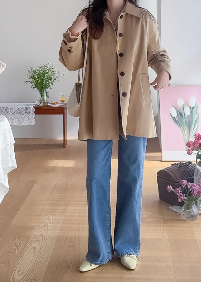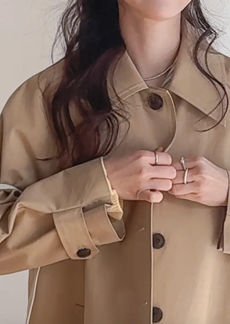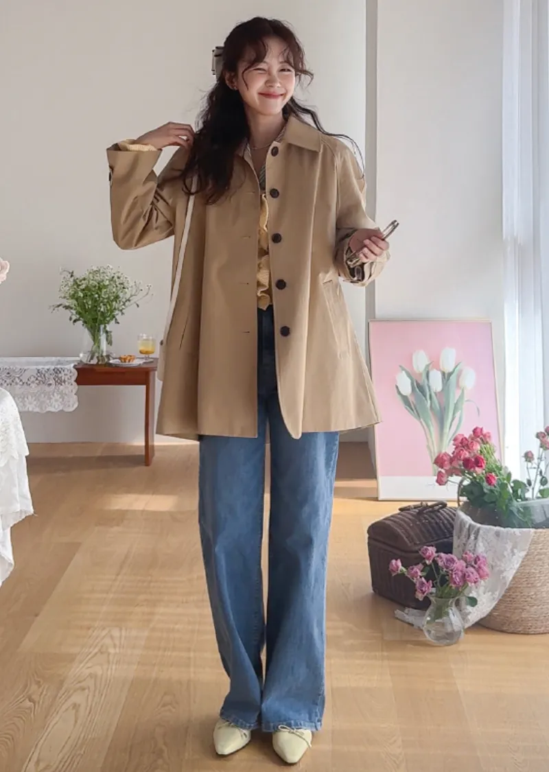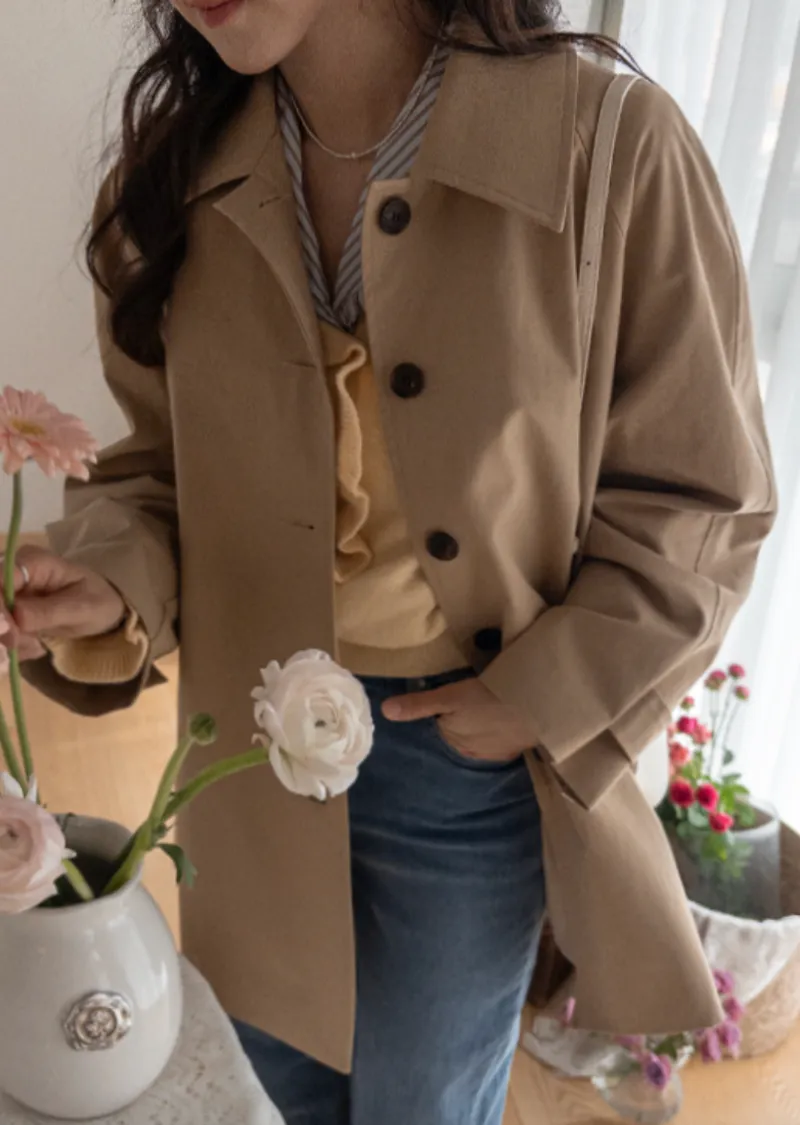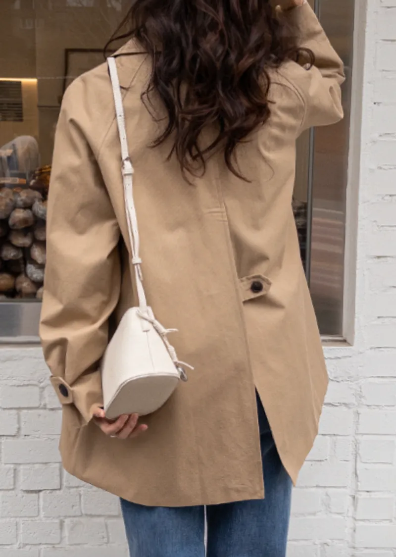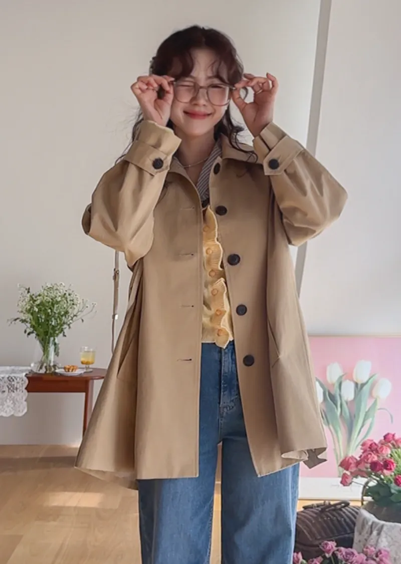 自然風格連肩袖微A字廓形後側褶襉設計風衣外套