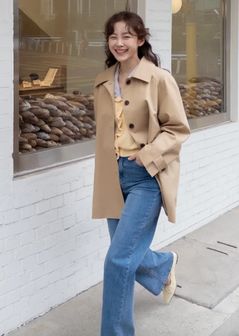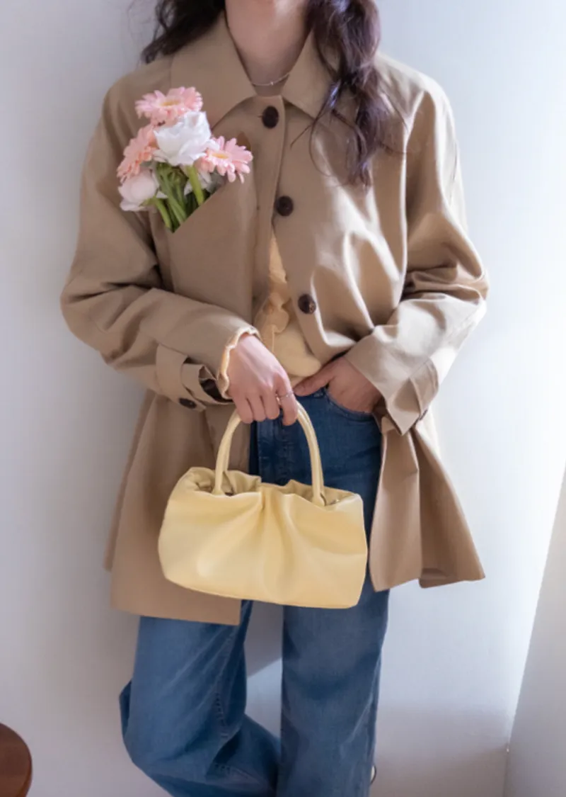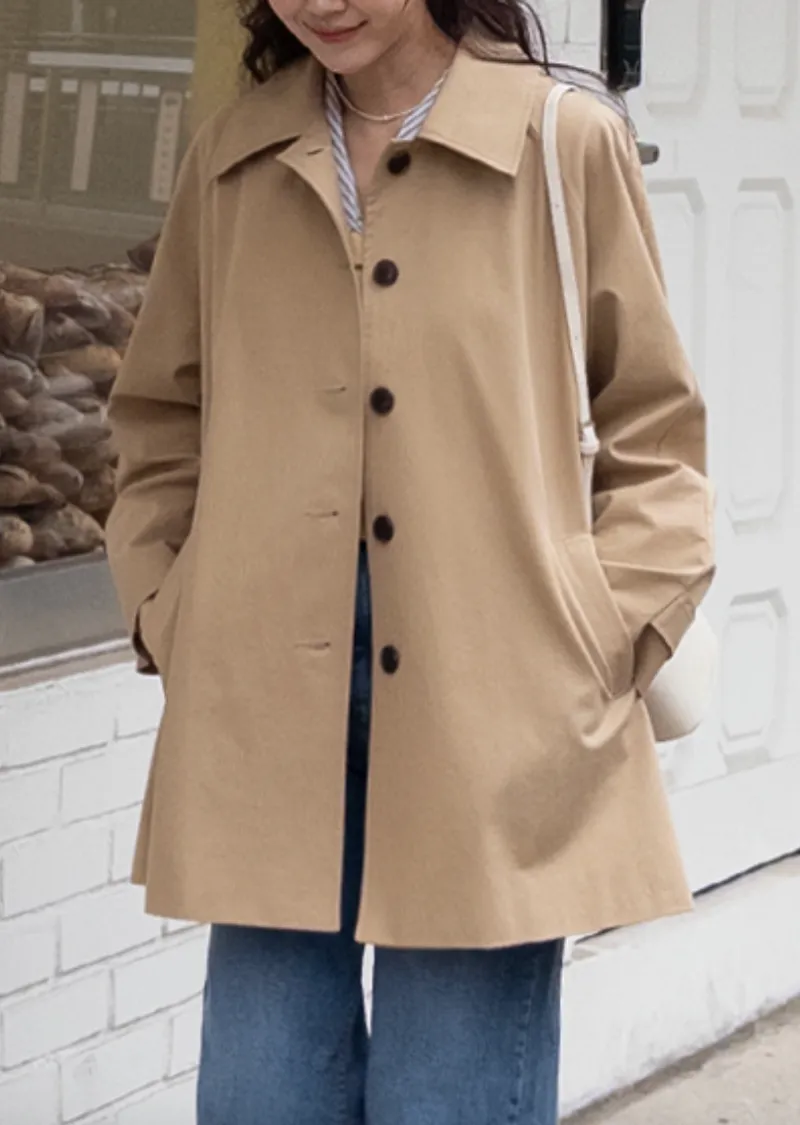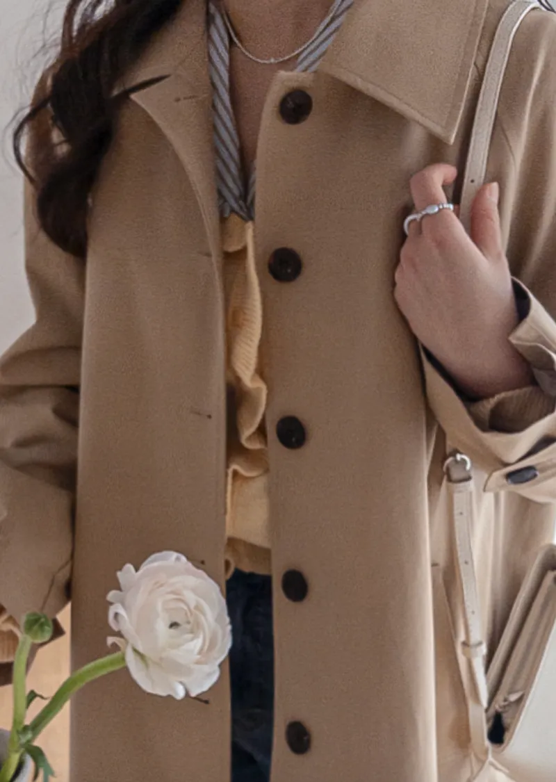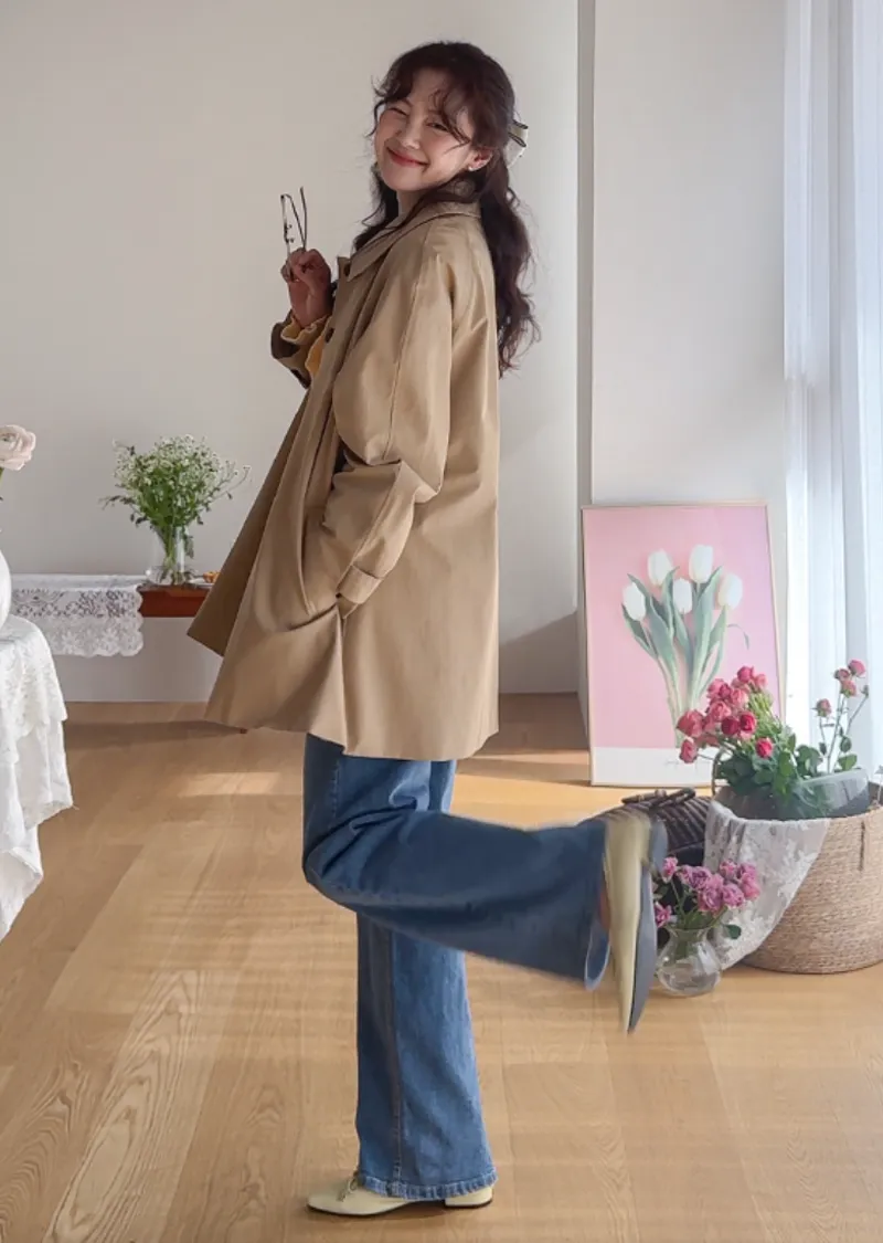 自然風格連肩袖微A字廓形後側褶襉設計風衣外套