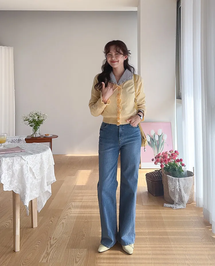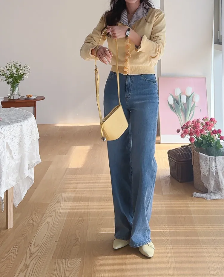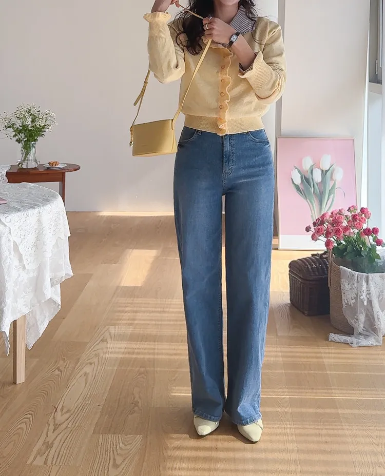 魅力鈕扣荷葉襯邊優雅袖末摺邊開衫