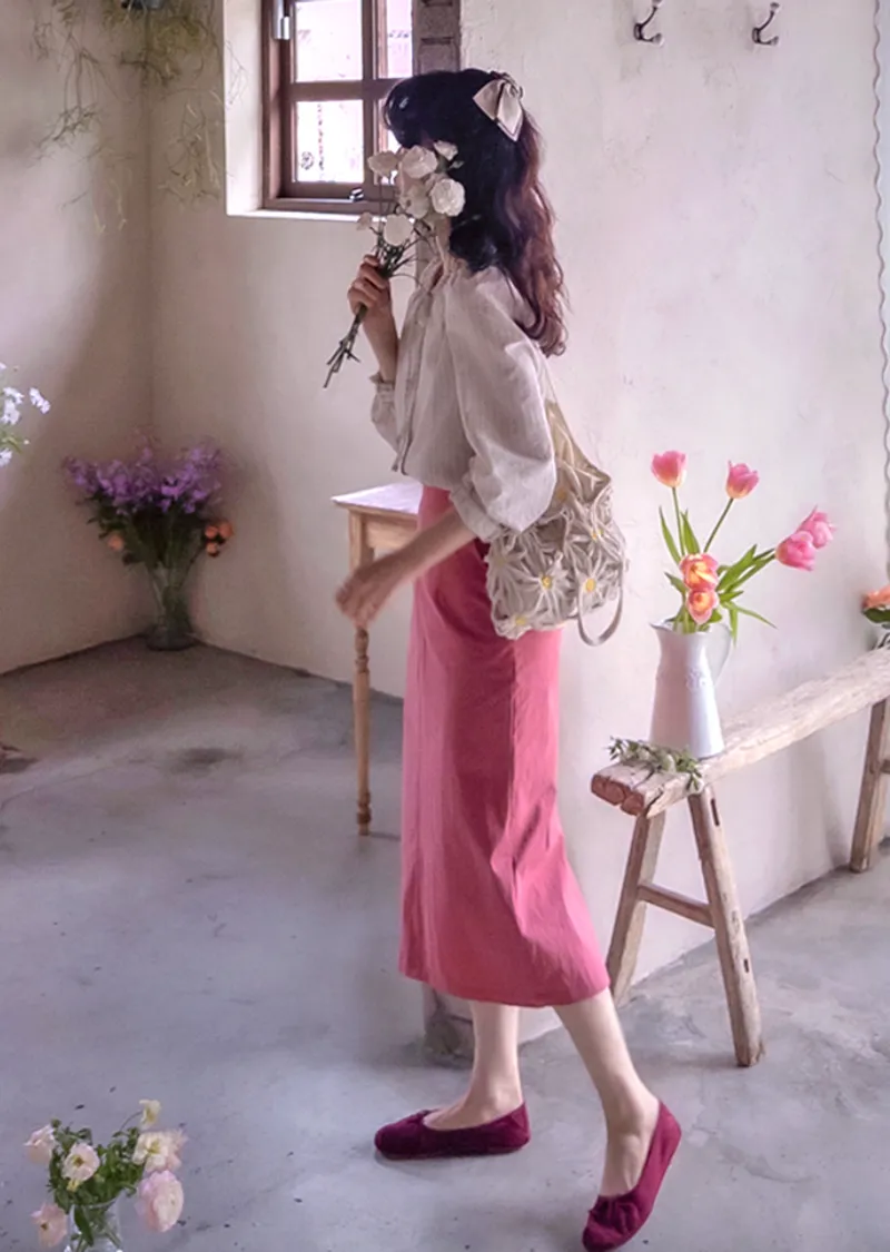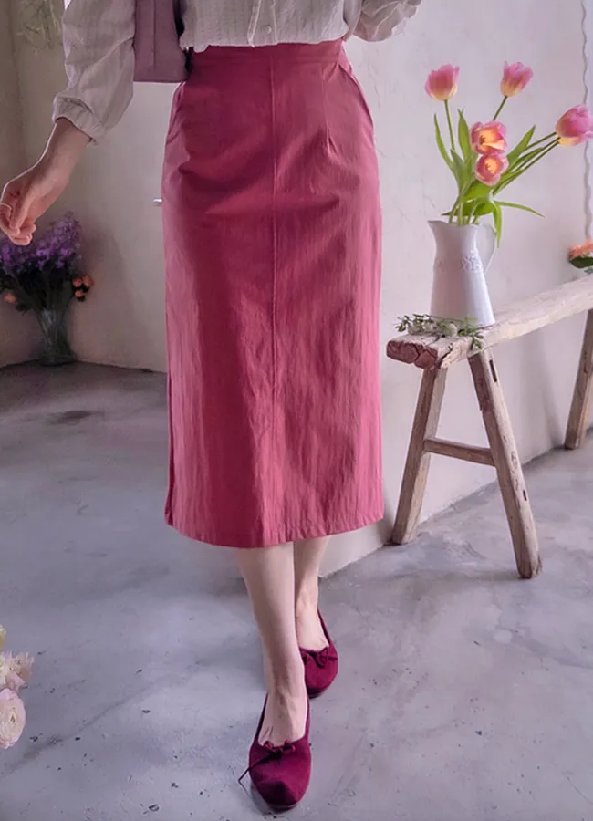 春日氣息精緻色彩H剪裁後開衩中長裙