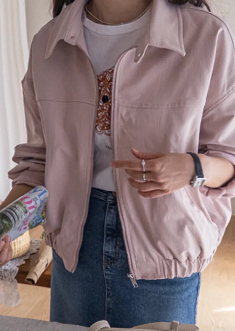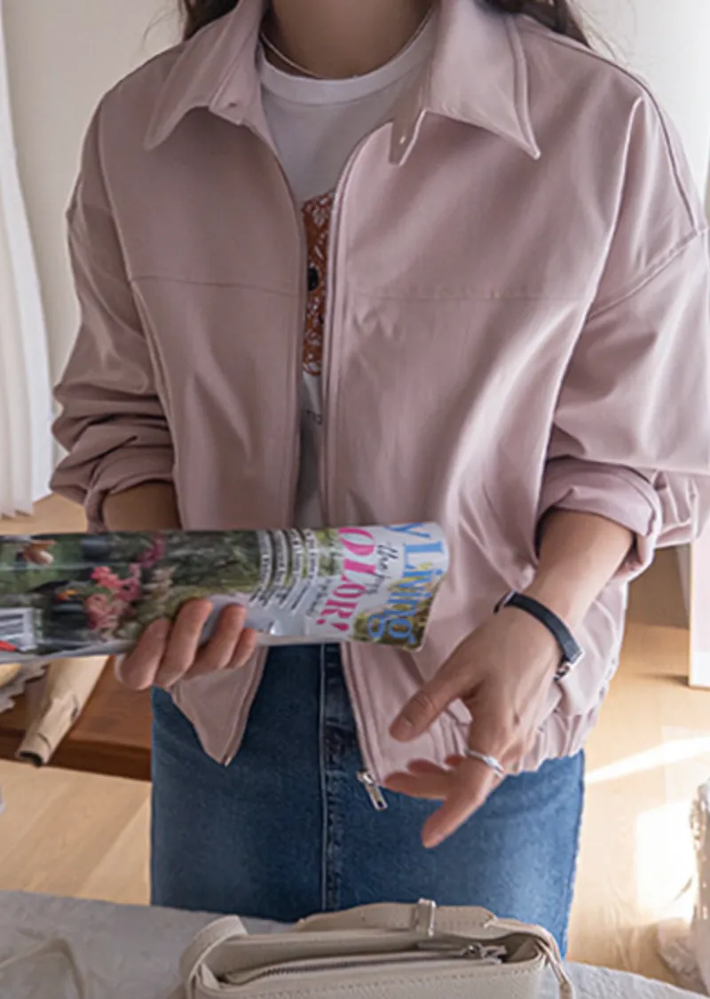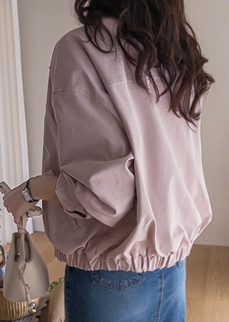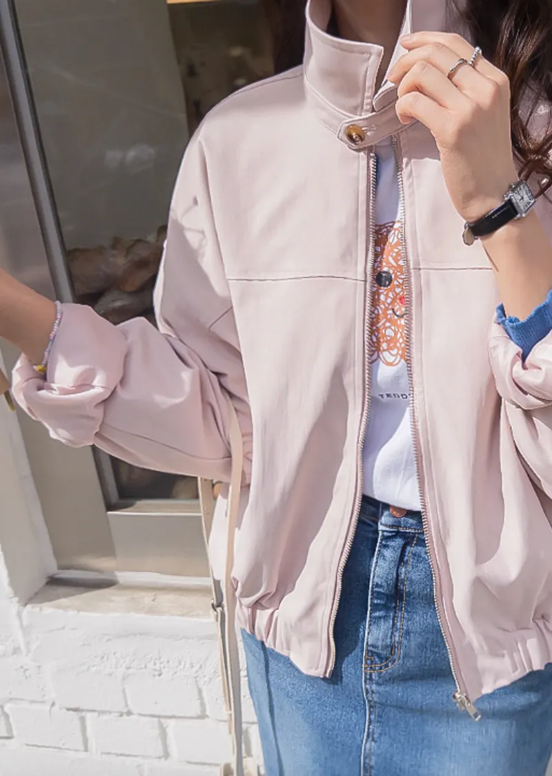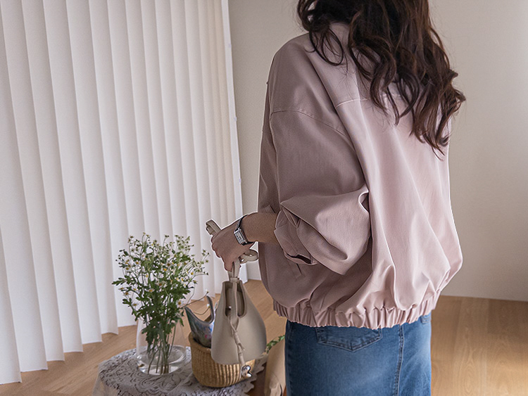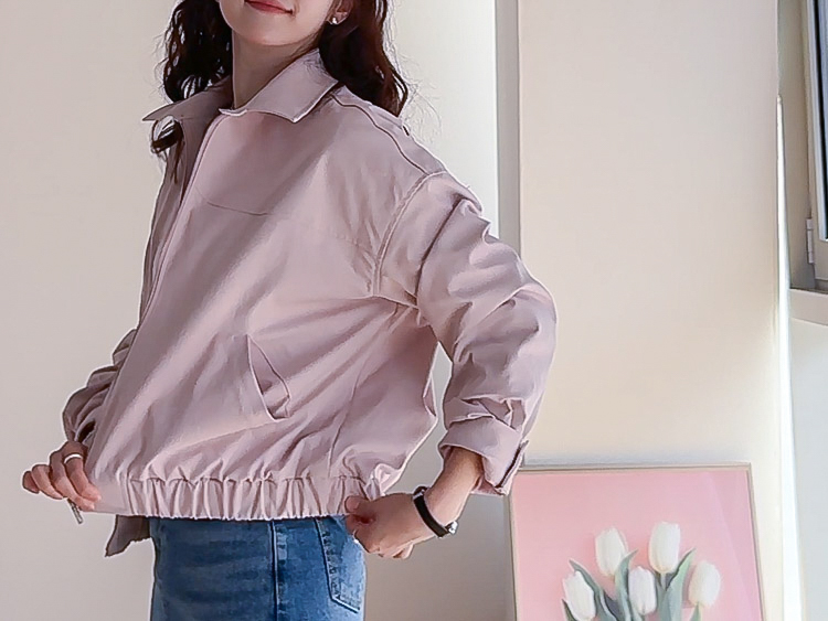 休閒風格領口鈕扣裝飾袖口褶襉夾克外套