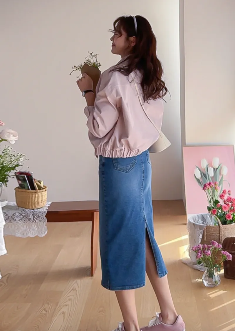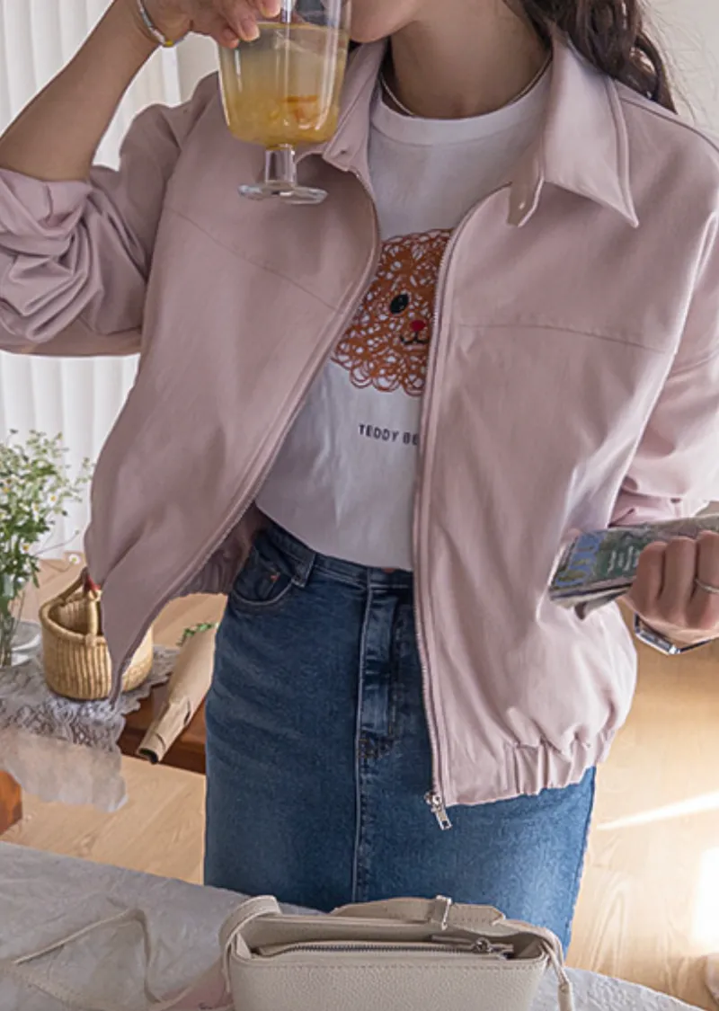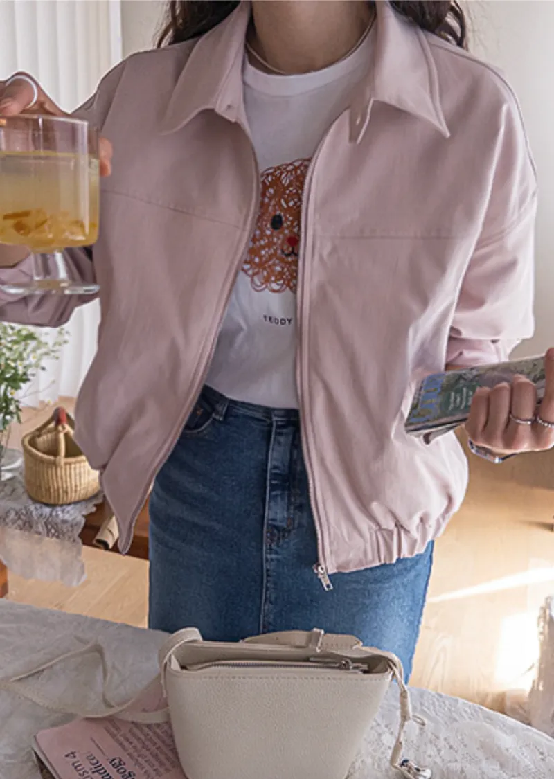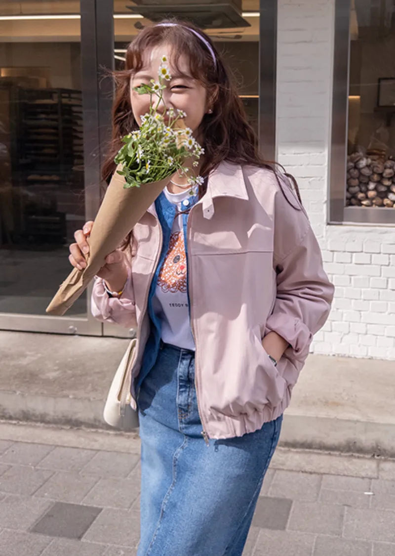 休閒風格領口鈕扣裝飾袖口褶襉夾克外套