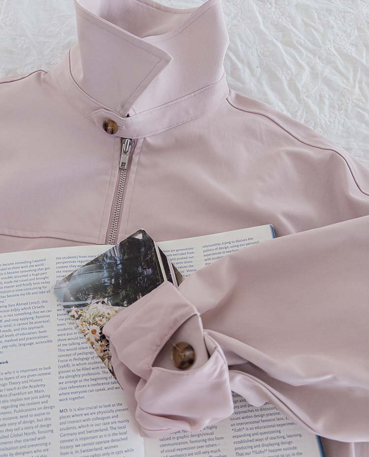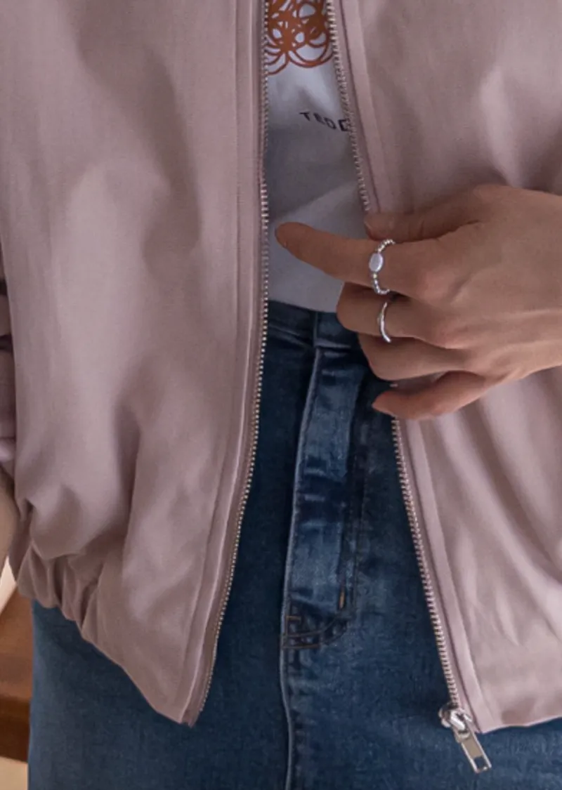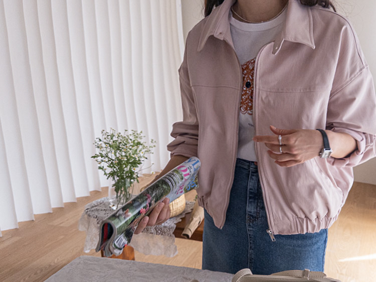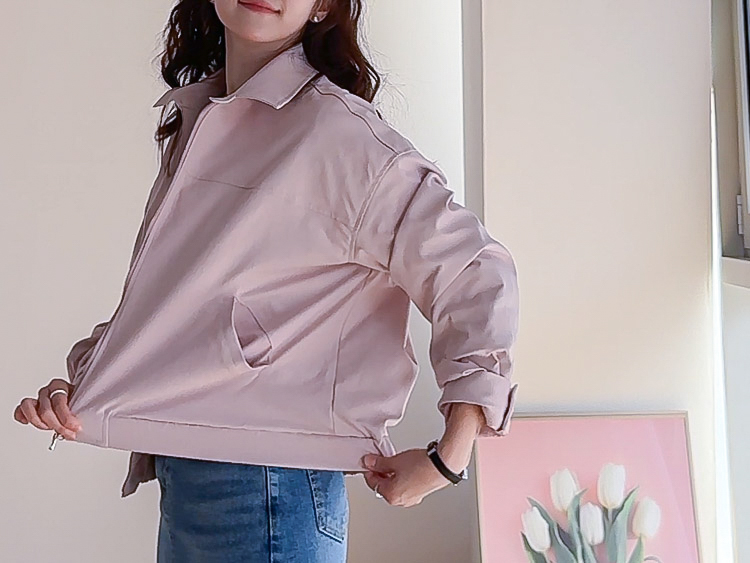 鈕扣】【前拉鍊設計,方便穿脫】【下擺彈性鬆緊帶打造休閒輪廓】【袖口褶襉設計,營造立體感】