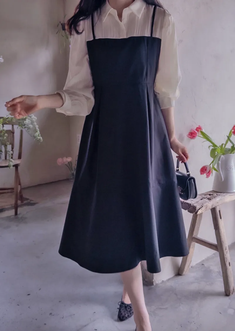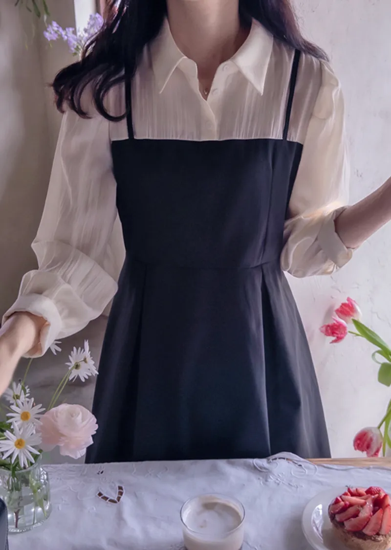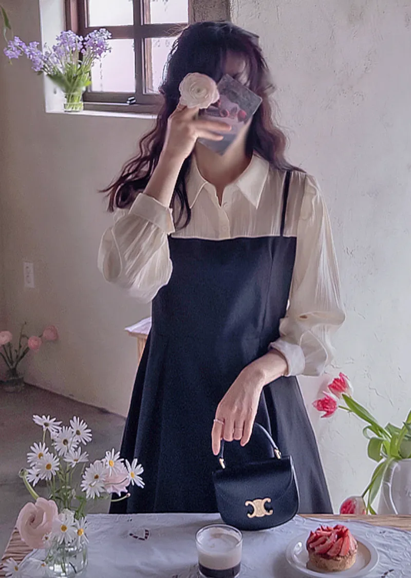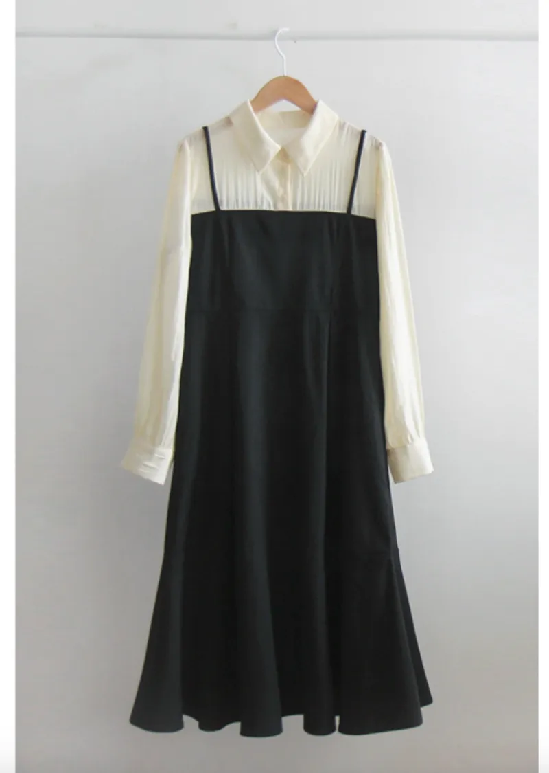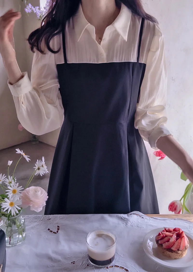 【側邊拉鍊設計】【鈕扣閉合】【時尚修身,配色拼接】【疊層設計,內搭襯衫效果】【推薦這款優雅的季節性連身裙,能提升時尚品味,又能保持精緻的版型剪裁】