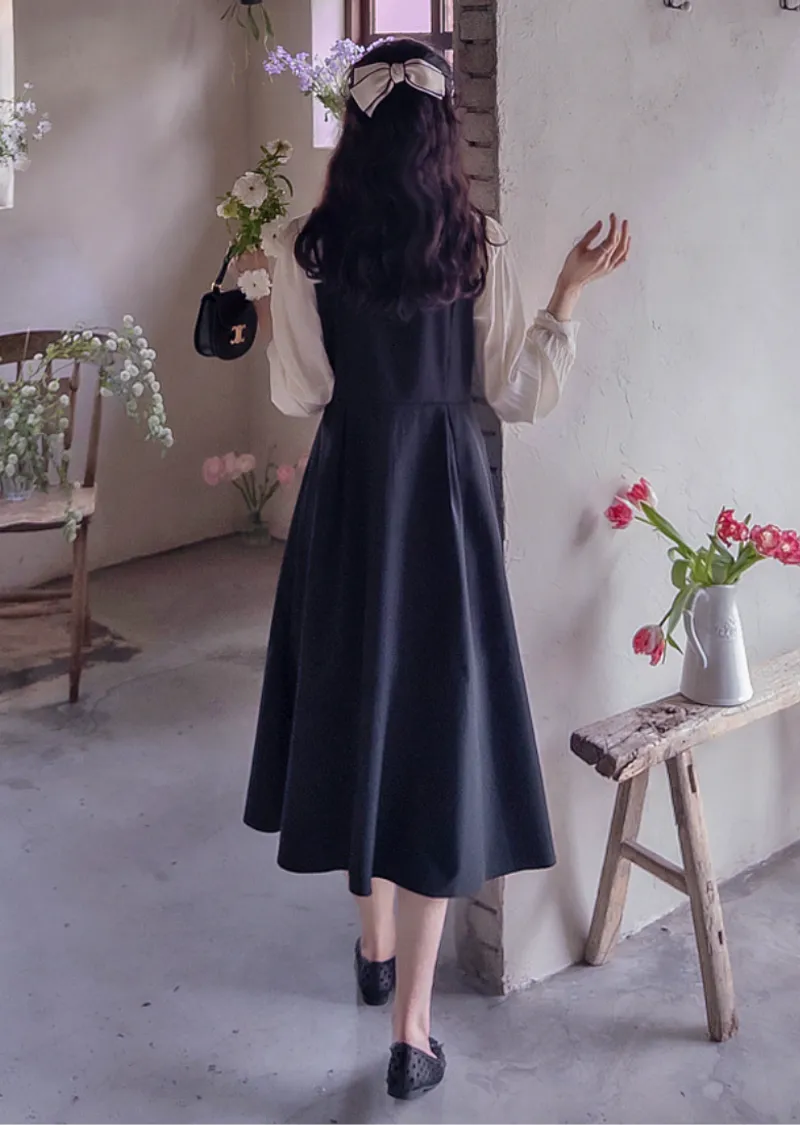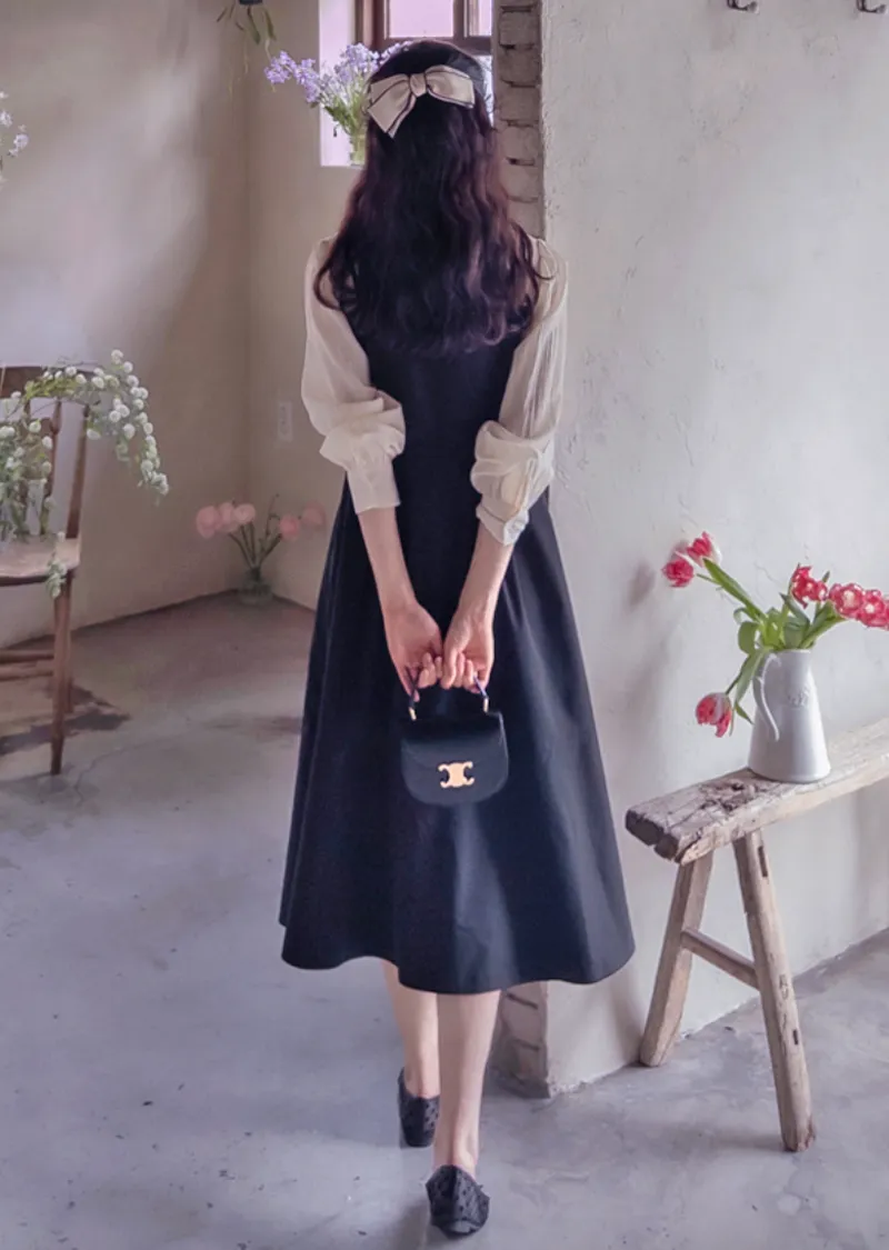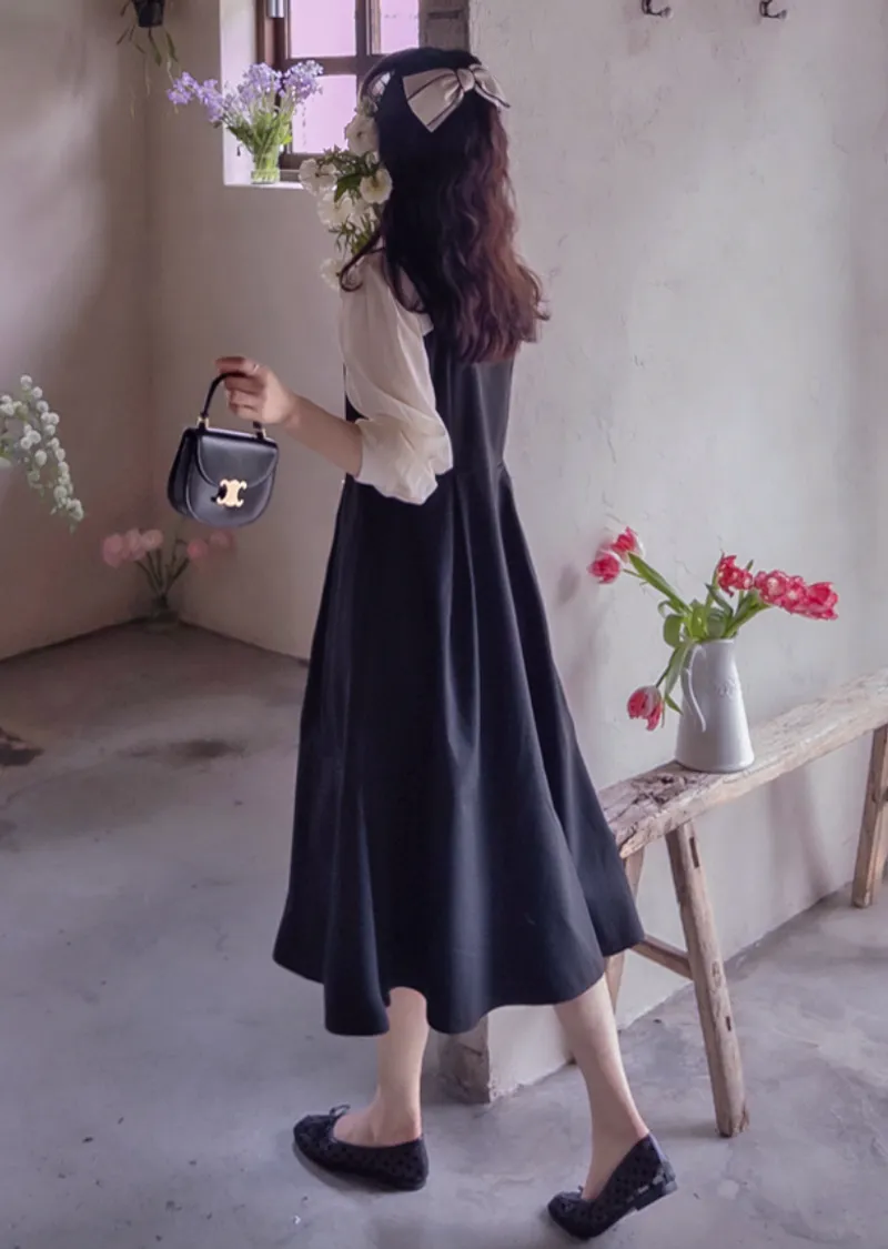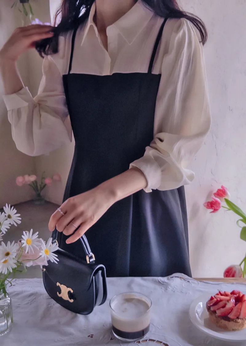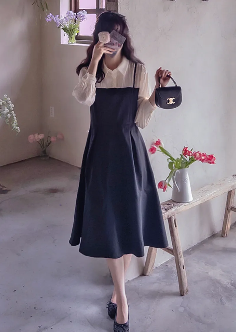 【側邊拉鍊設計】【鈕扣閉合】【時尚修身,配色拼接】【疊層設計,內搭襯衫效果】【推薦這款優雅的季節性連身裙,能提升時尚品味,又能保持精緻的版型剪裁】
