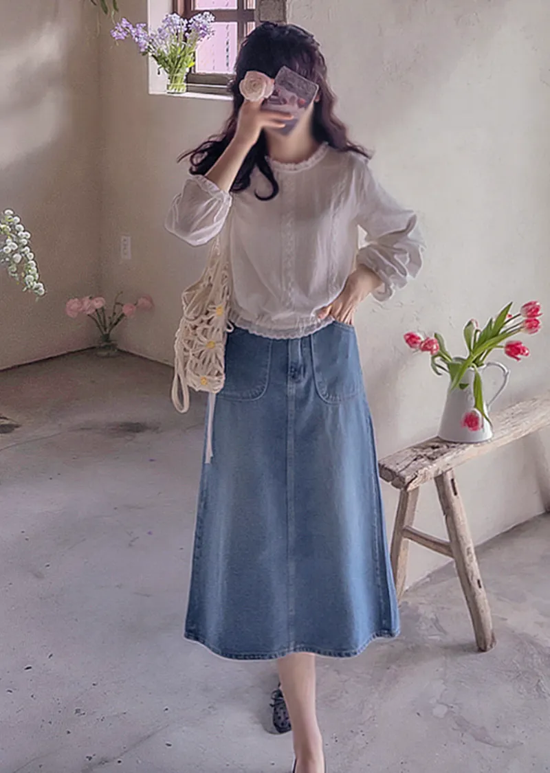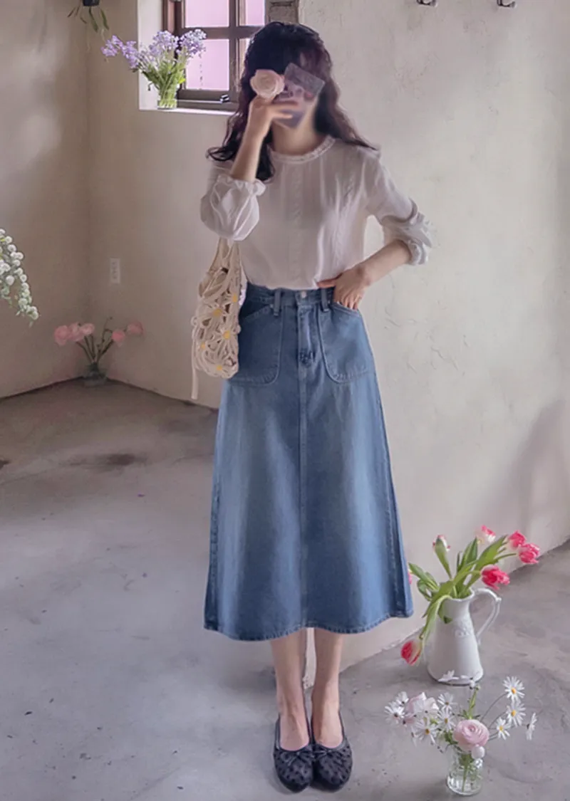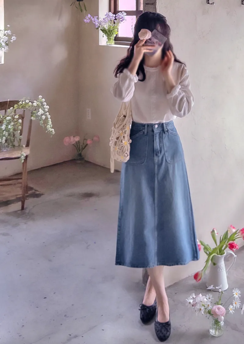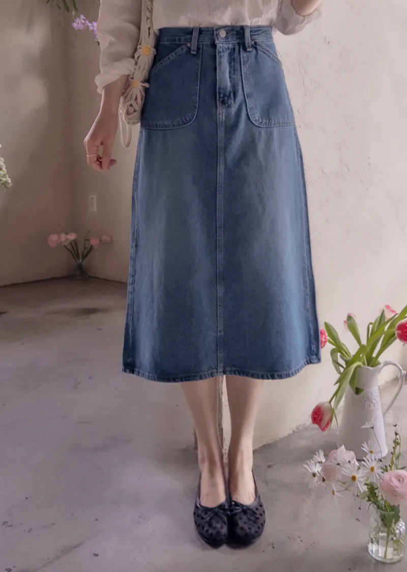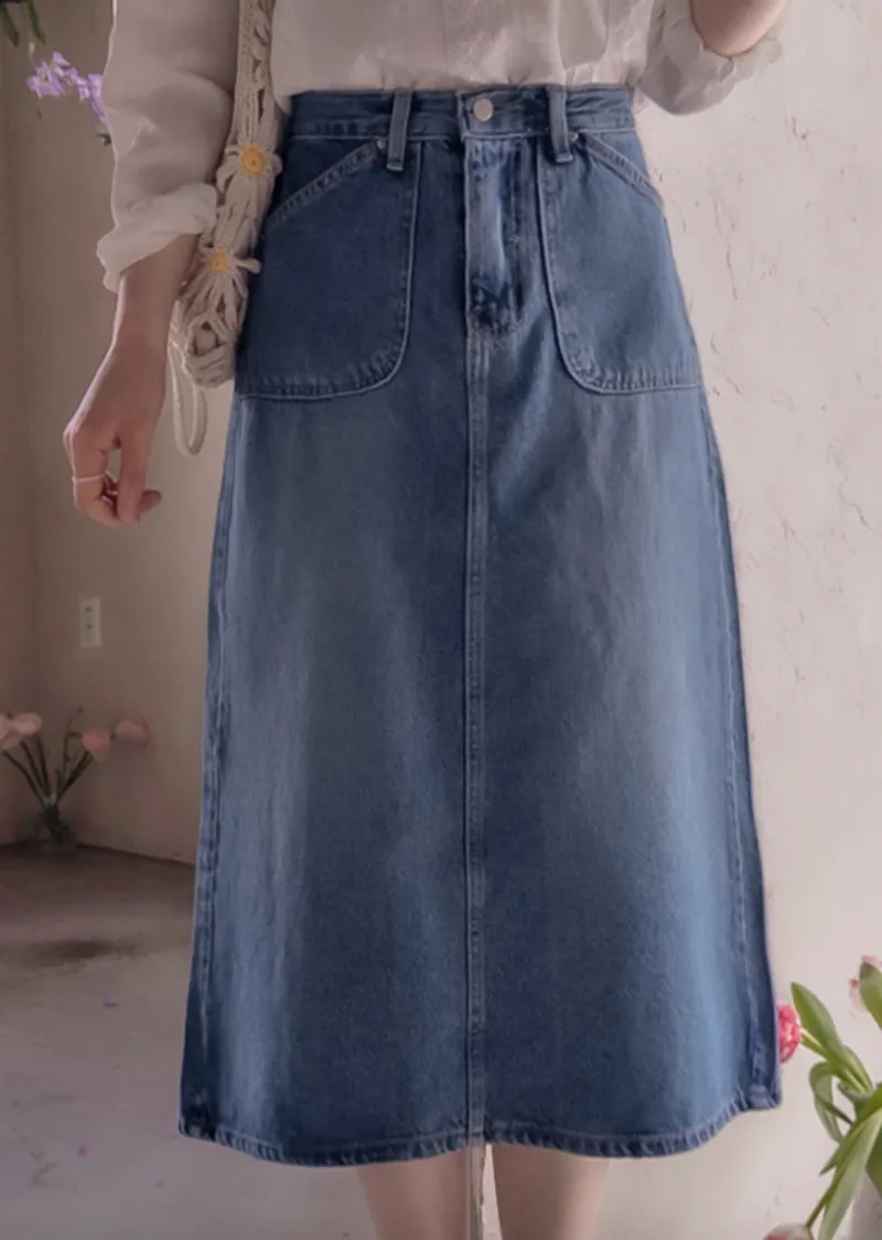 【口袋款】【萊賽爾纖維:環保優質紗線】【口袋款修身剪裁】【穿著舒適,可愛精緻,不會過於緊身】【春季必備基本款H字牛仔裙】【後開衩設計,穿著行走舒適】