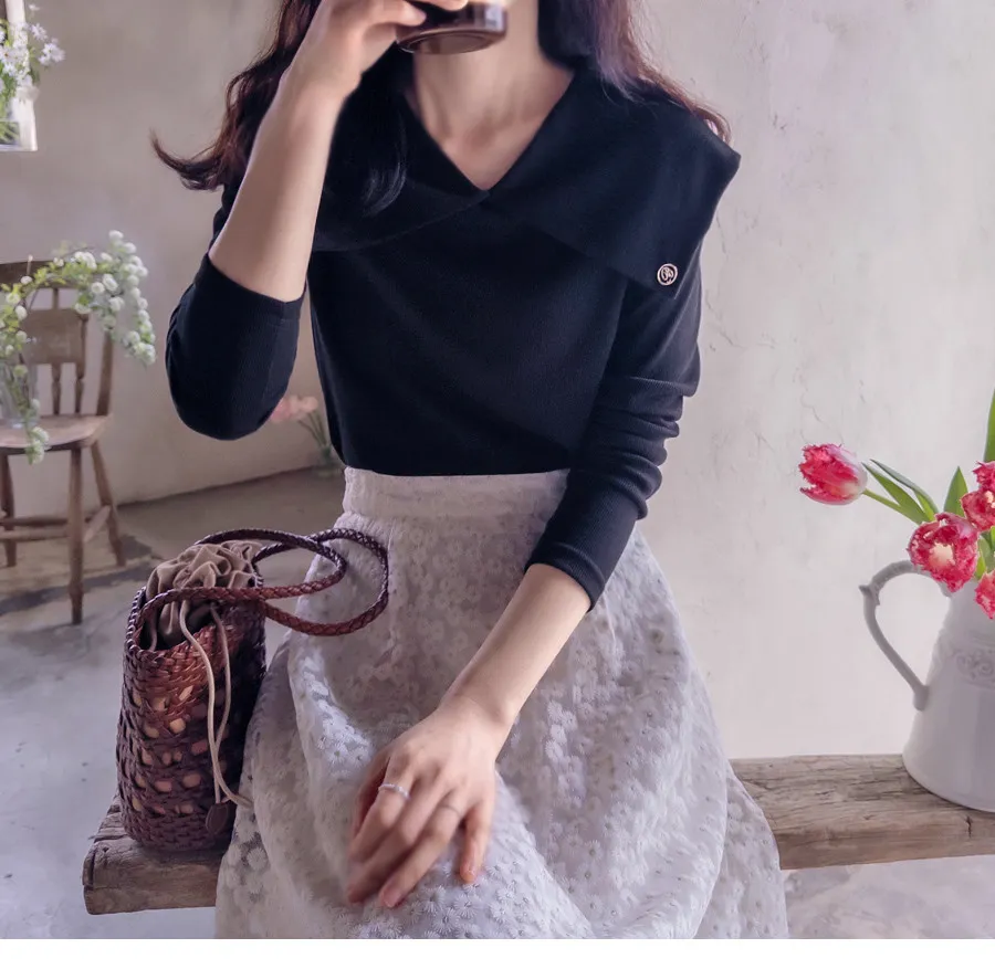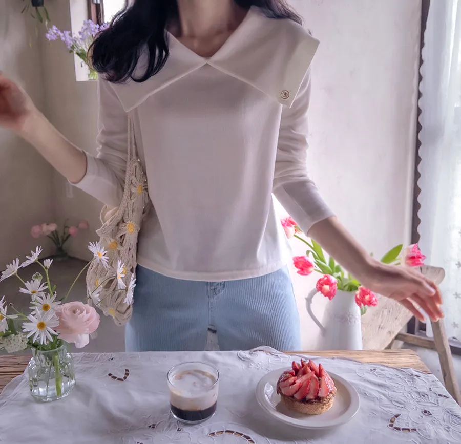 【領口設計營造可愛氛圍】【金色吊墜打造時尚氛圍】【精緻羅紋,時尚優雅,日常穿著佳品】【推薦這款舒適百搭的上衣,是您即將到來的季節的必備單品】