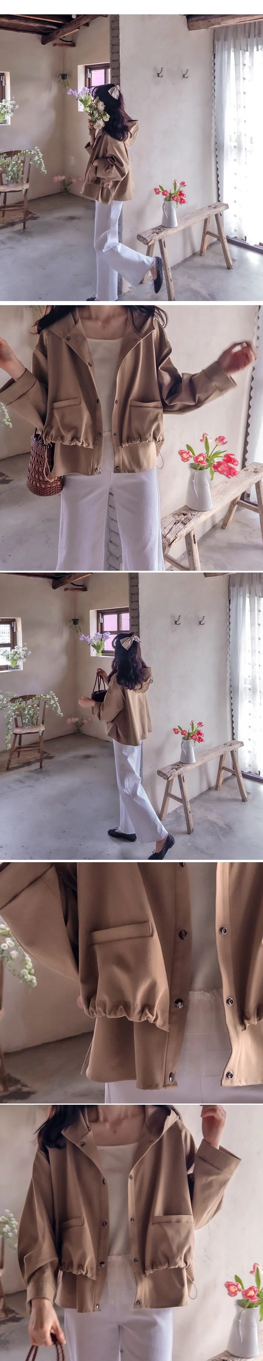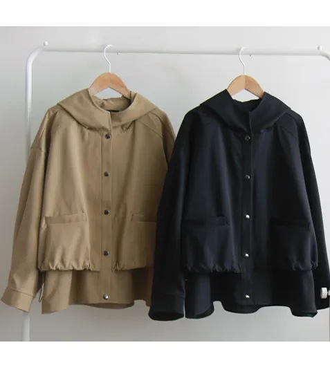 可愛下擺抽繩口袋設計連帽外套