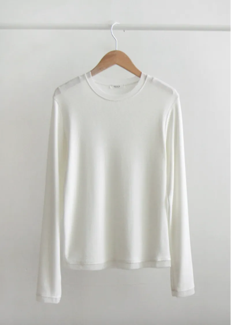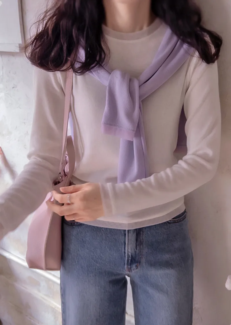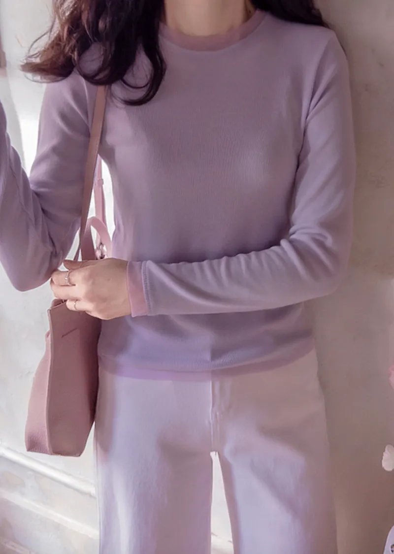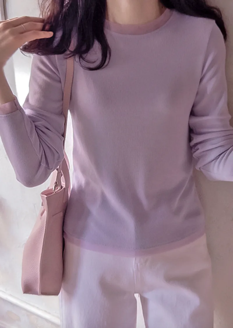 奢華簡約領口袖末配色網眼設計修身柔軟彈性上衣