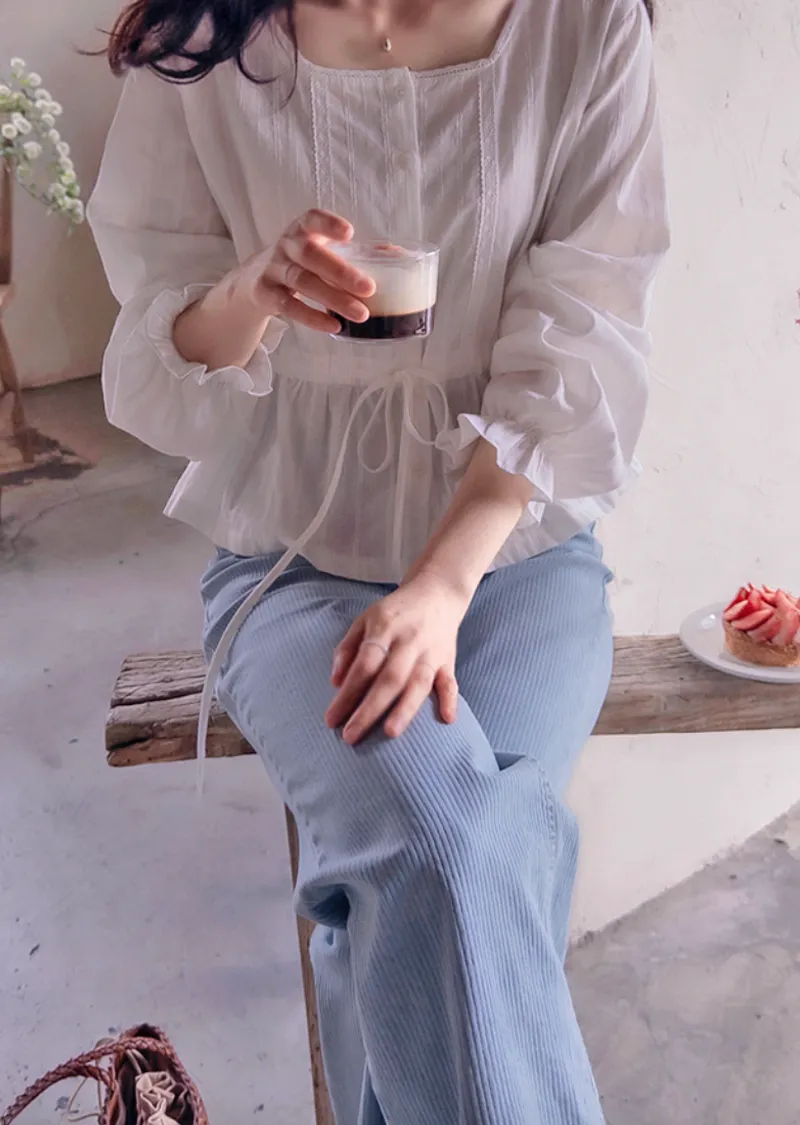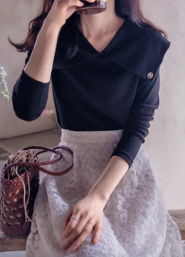 優雅領口設計點綴吊墜羅紋上衣