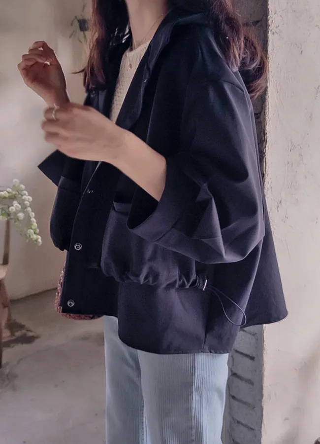 可愛下擺抽繩口袋設計連帽外套